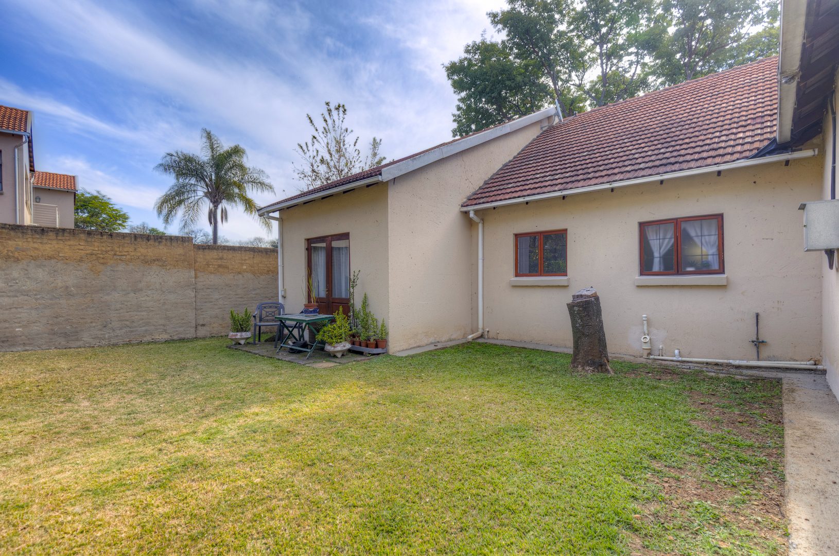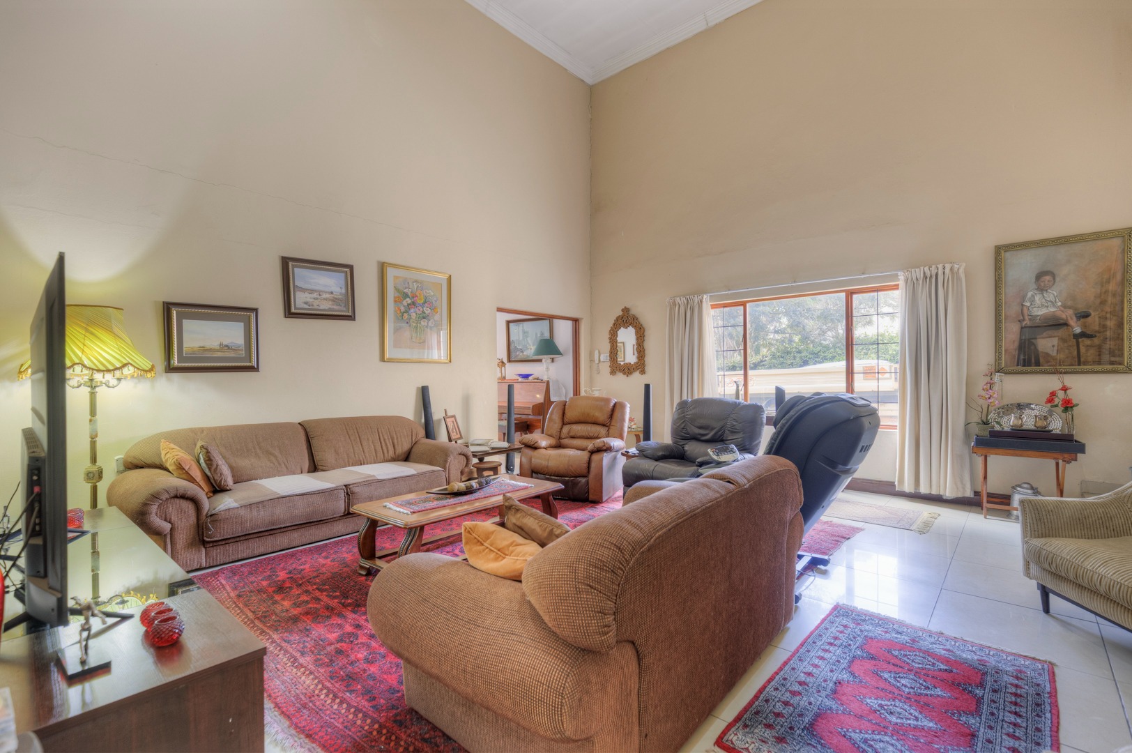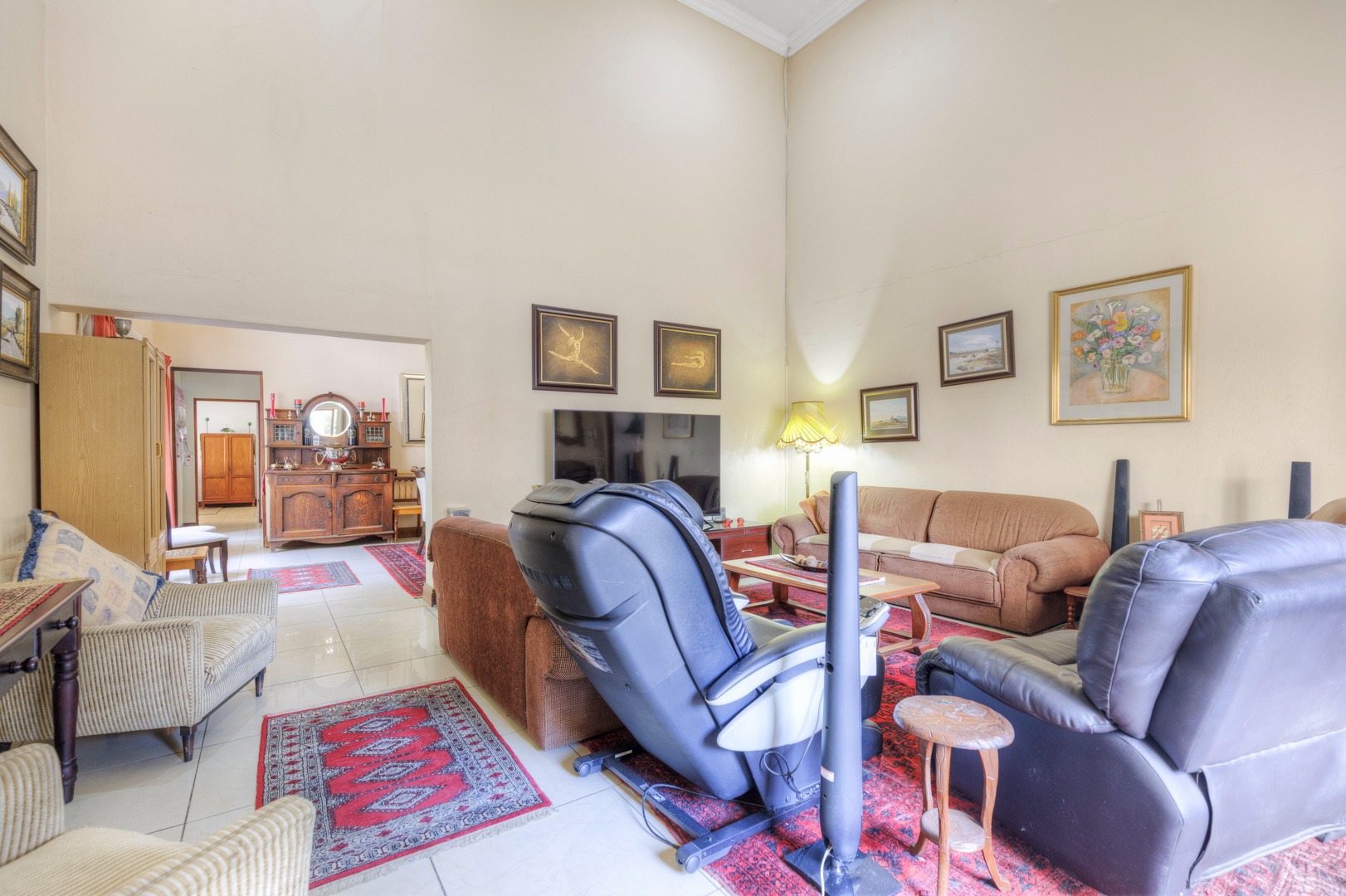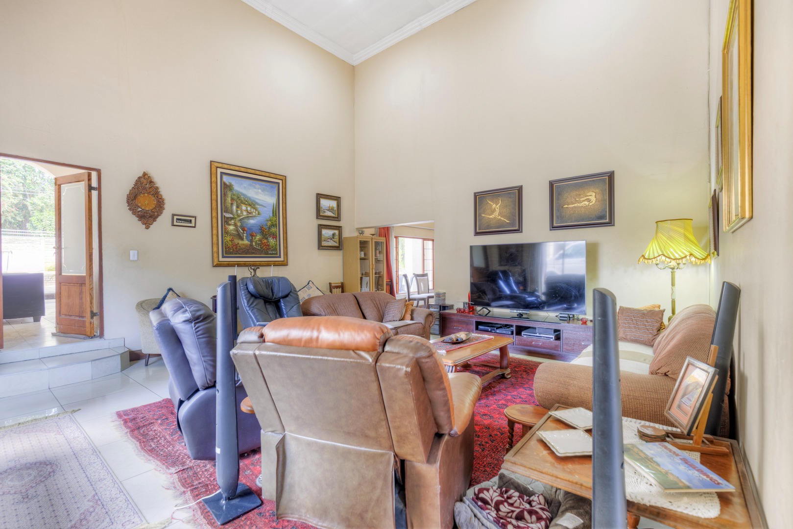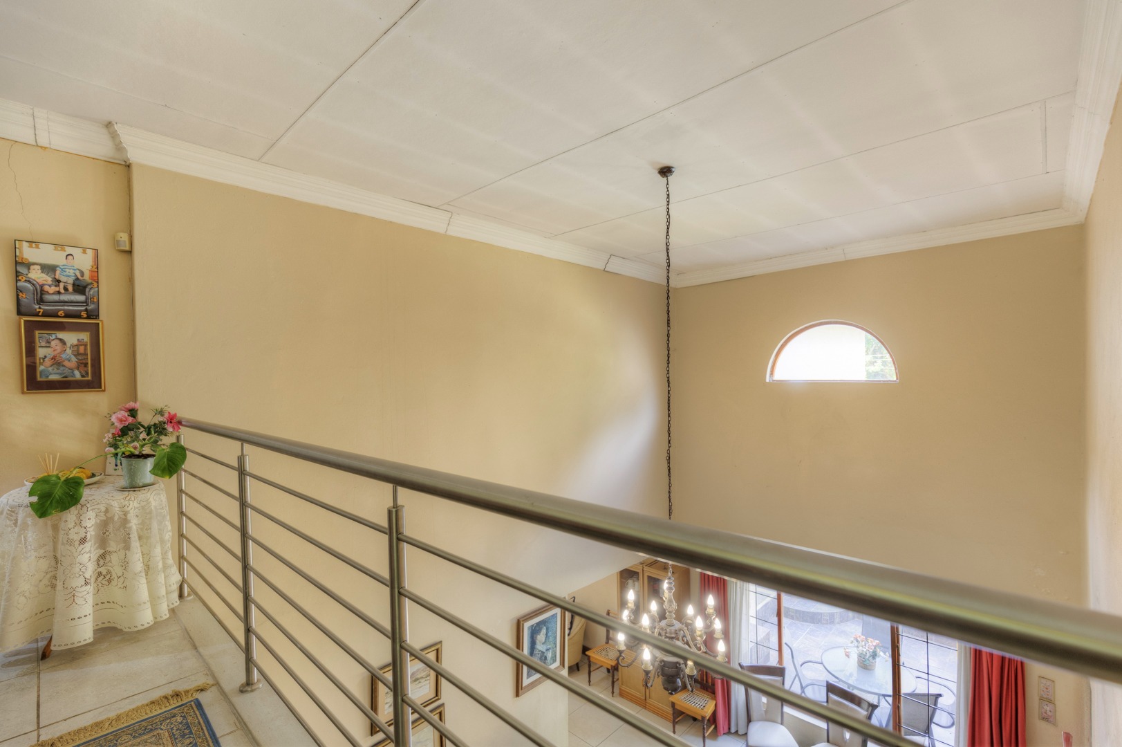 The property is fully fenced and in a secure and quiet location. The property is secured by beams around the house as well as electric fencing on the boundary walls. No traffic noise or noise pollution. The driveway is tarred and make provision for secure parking for 10 or more vehicles without affecting access to the garages.
