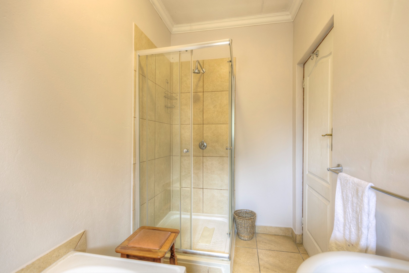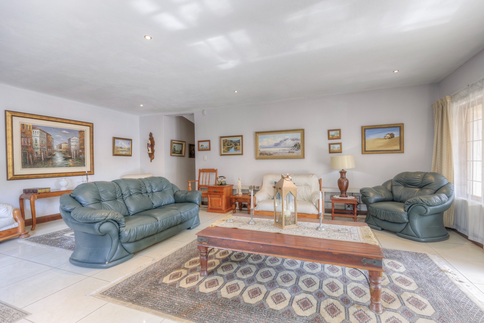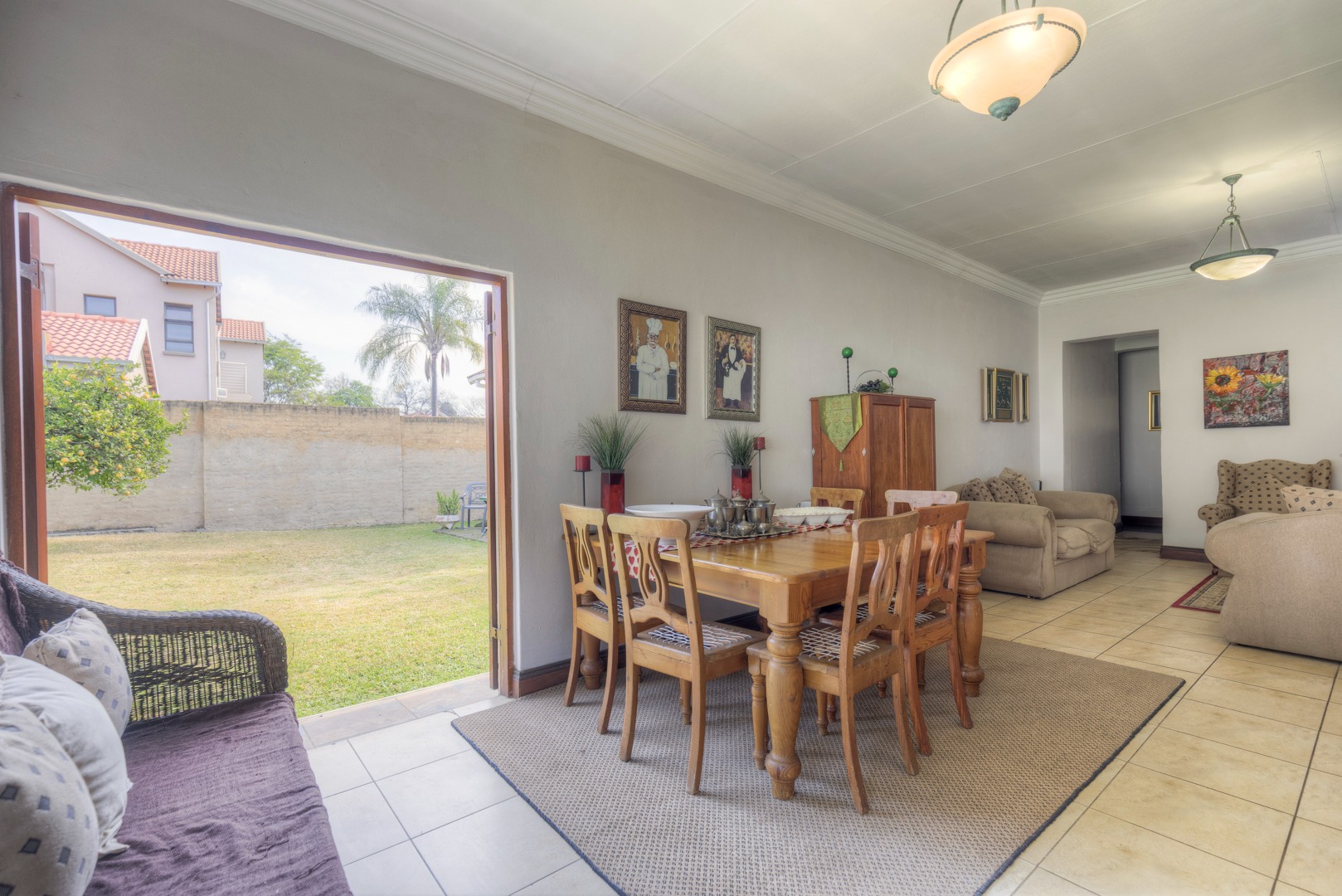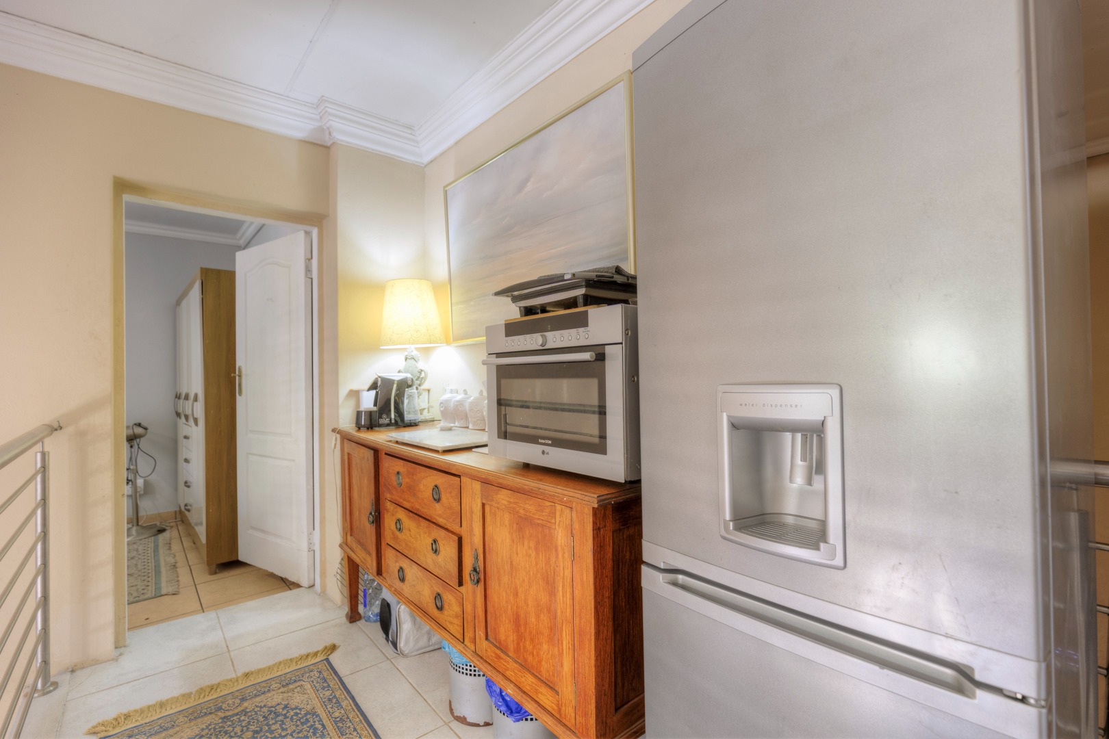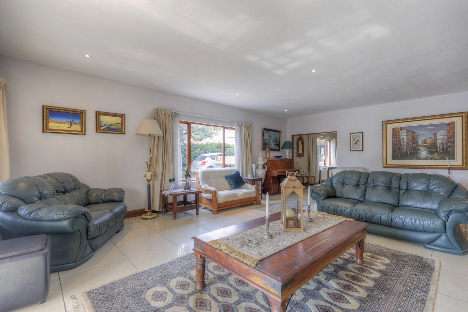 The property is fully fenced and in a secure and quiet location. The property is secured by beams around the house as well as electric fencing on the boundary walls. No traffic noise or noise pollution. The driveway is tarred and make provision for secure parking for 10 or more vehicles without affecting access to the garages.