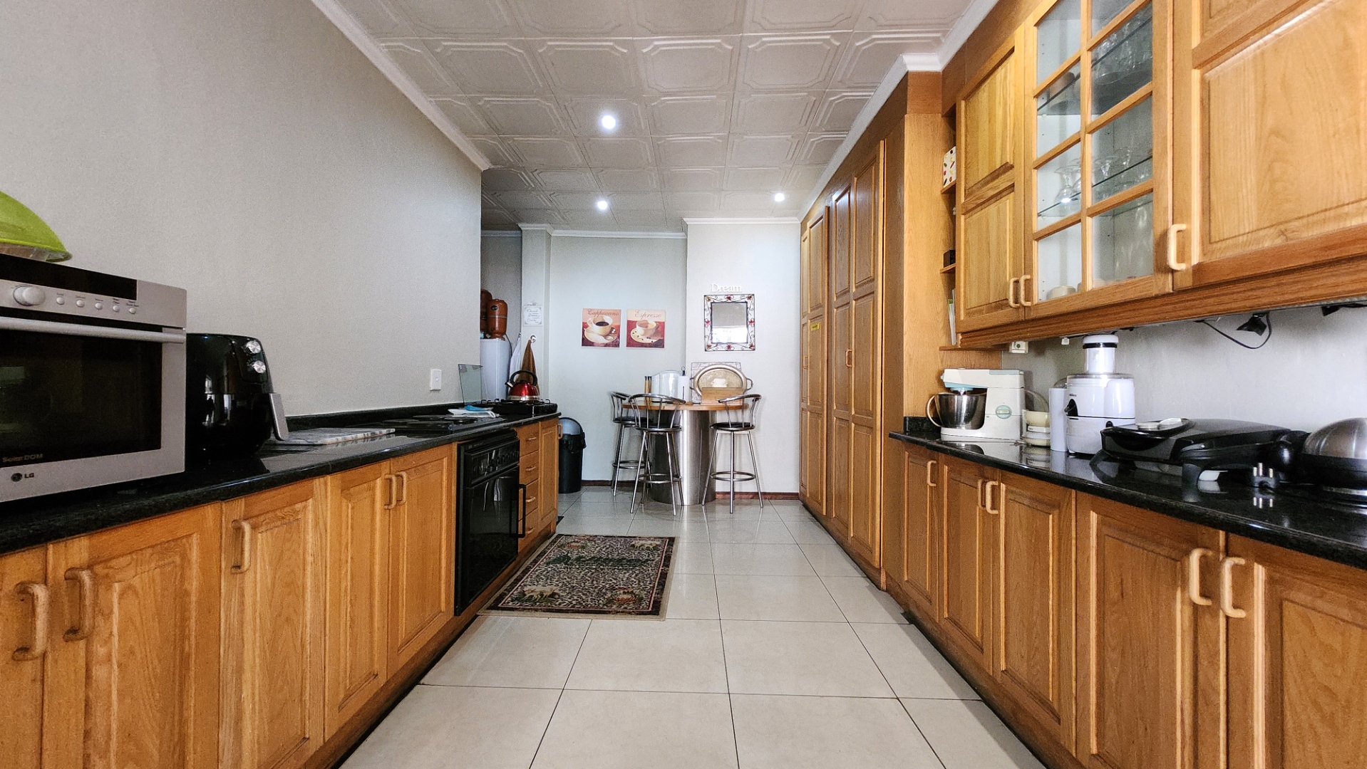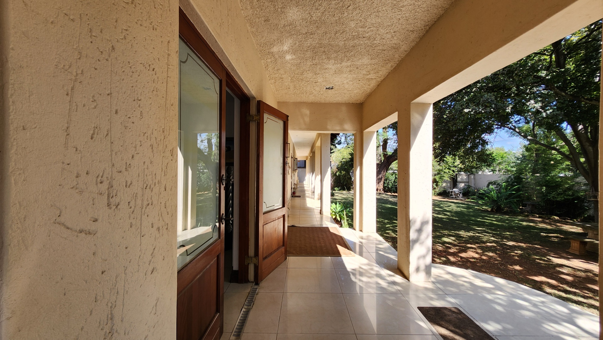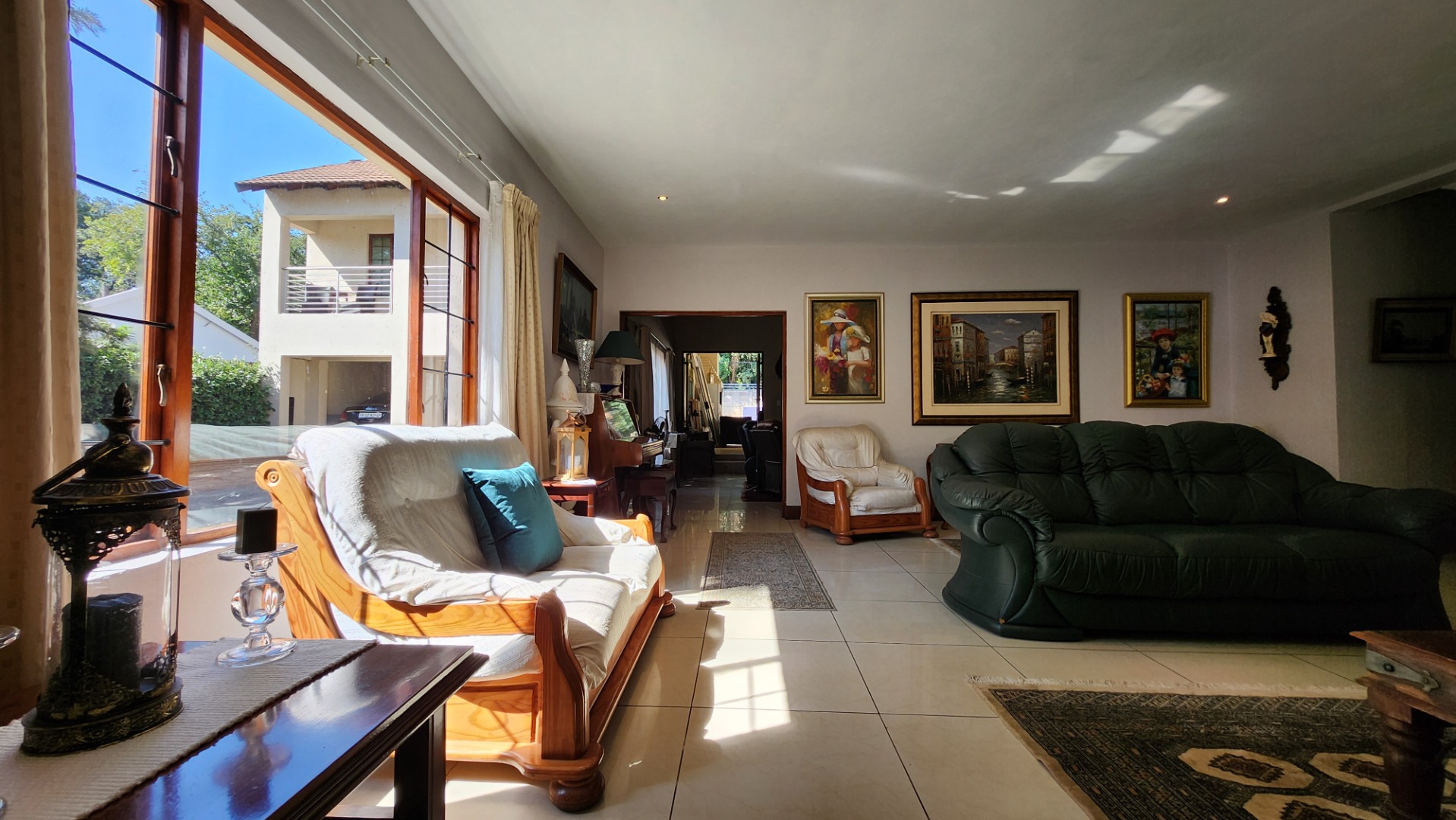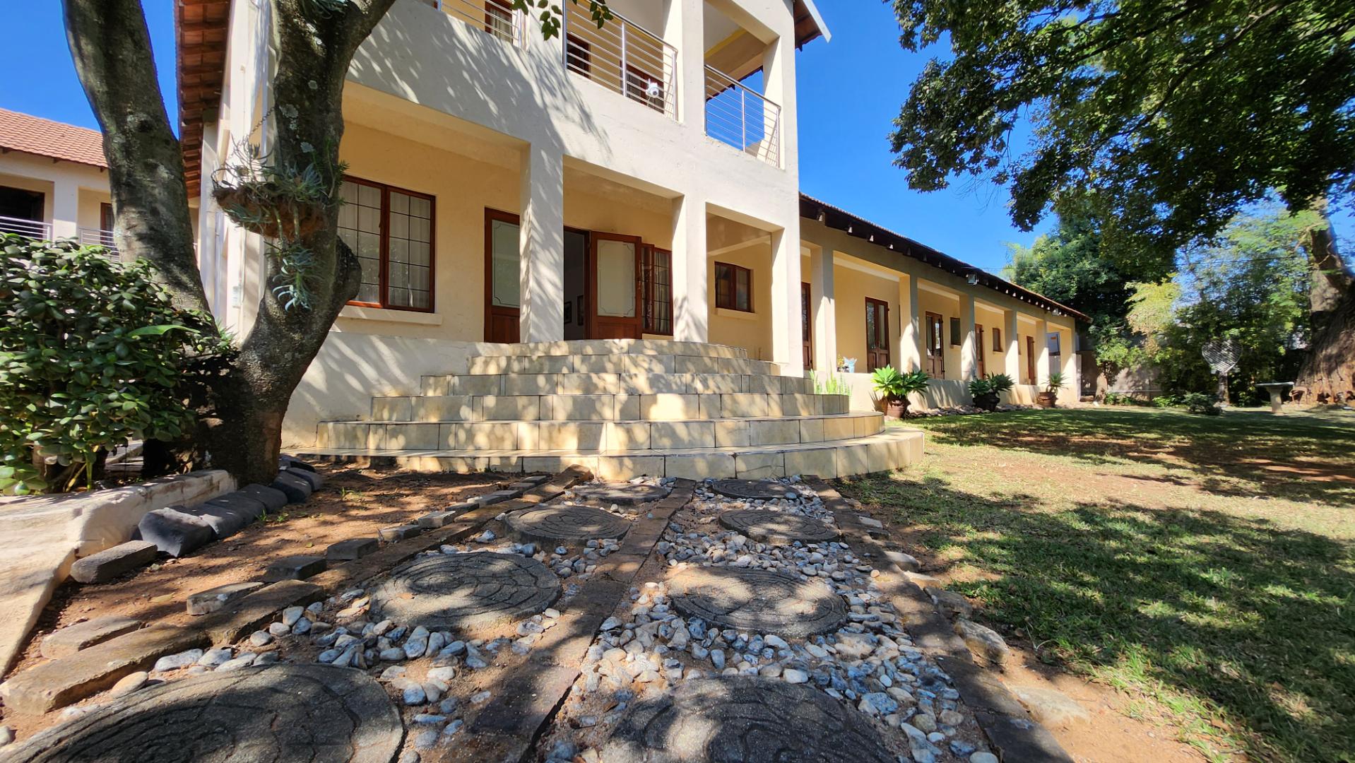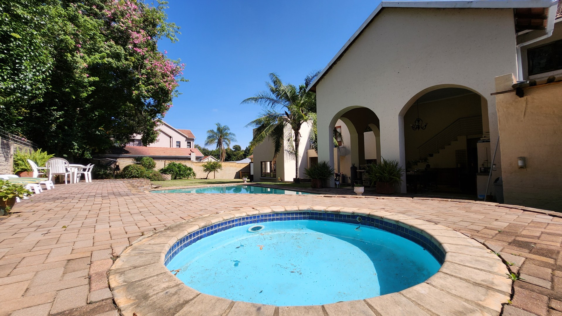 Beyond the interiors, a private oasis awaits. Immerse yourself in the sparkling swimming pool, complemented with a kiddies pool for the little ones. Unwind on the expansive patio, or enjoy the serene ambiance of the meticulously landscaped garden. Multiple balconies offer elevated vistas, perfect for enjoying the South African climate. Practical considerations are met with five spacious garages and six additional parking bays, alongside dedicated laundry and storage facilities.