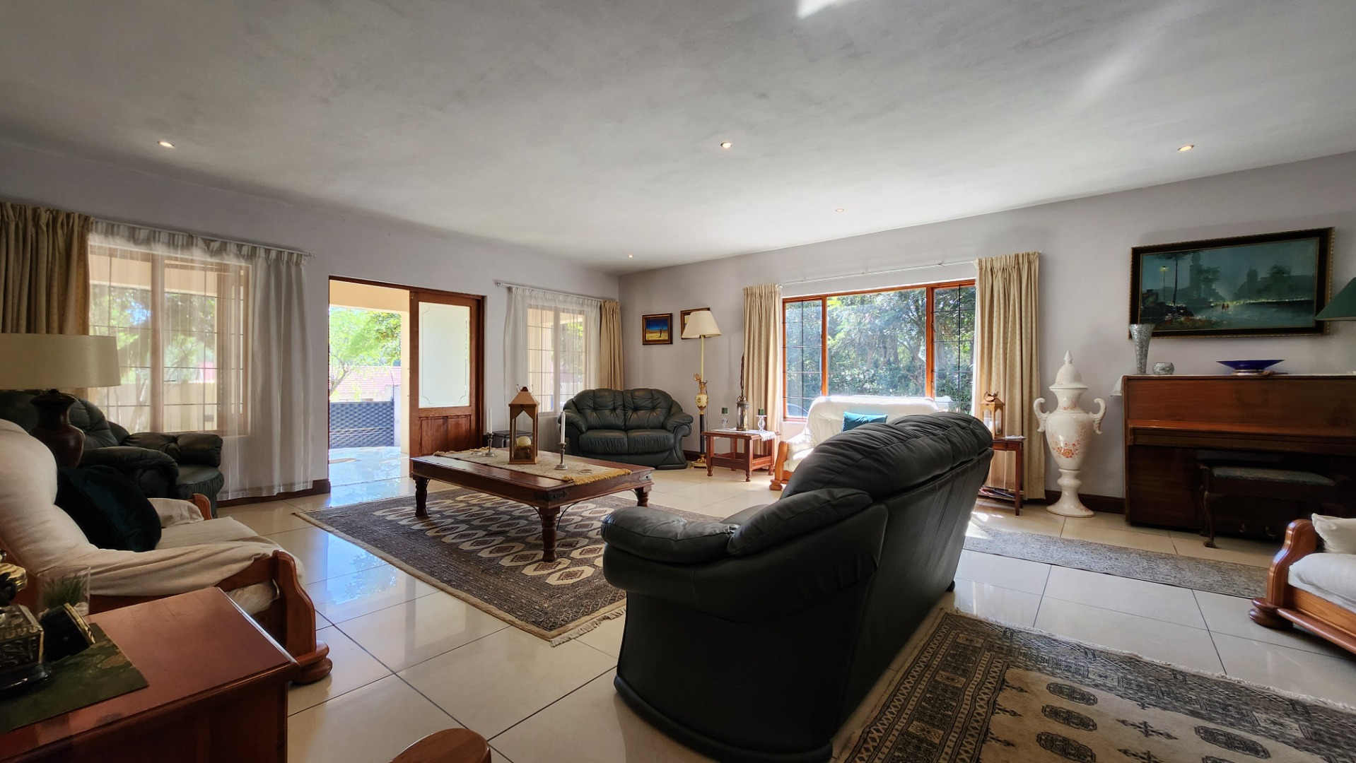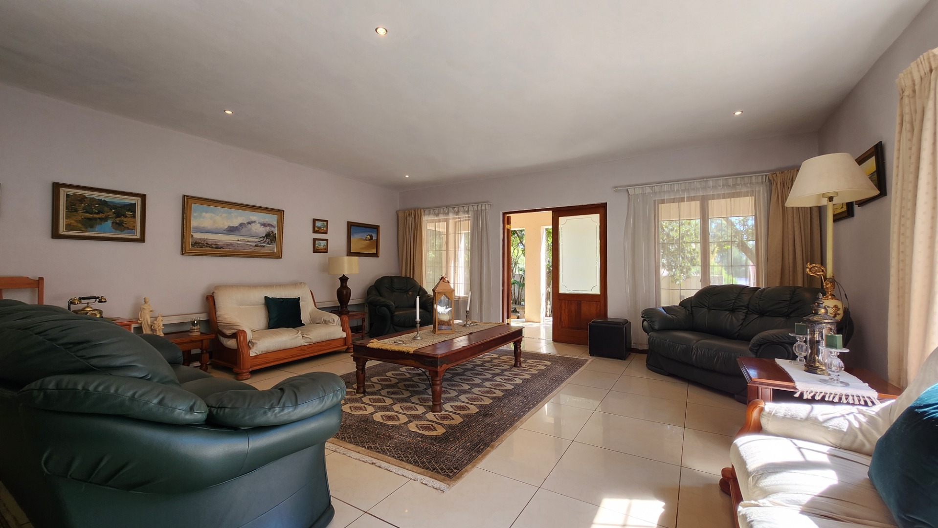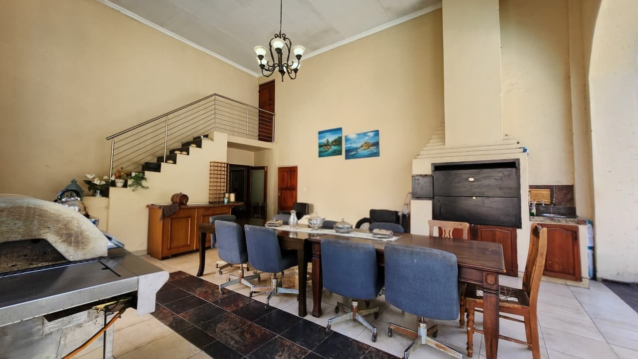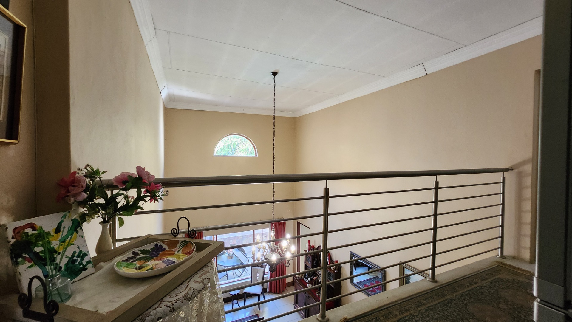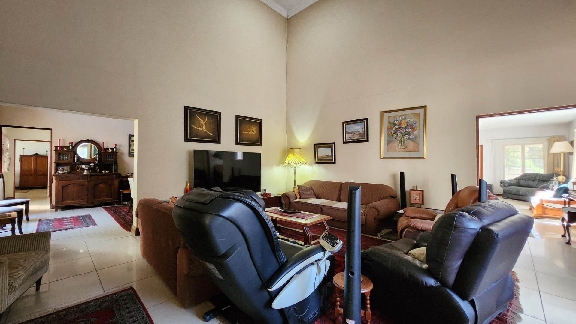 Beyond the interiors, a private oasis awaits. Immerse yourself in the sparkling swimming pool, complemented with a kiddies pool for the little ones. Unwind on the expansive patio, or enjoy the serene ambiance of the meticulously landscaped garden. Multiple balconies offer elevated vistas, perfect for enjoying the South African climate. Practical considerations are met with five spacious garages and six additional parking bays, alongside dedicated laundry and storage facilities.