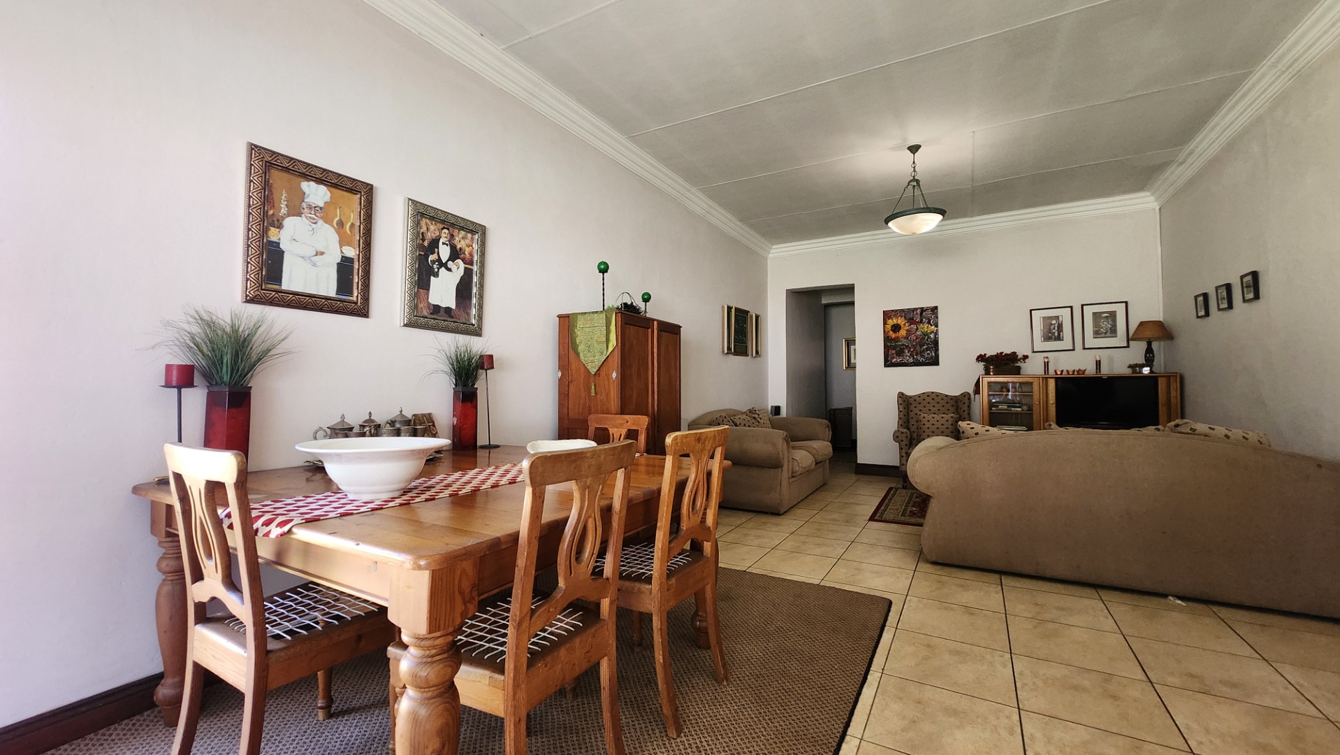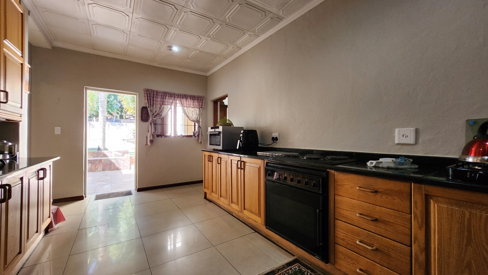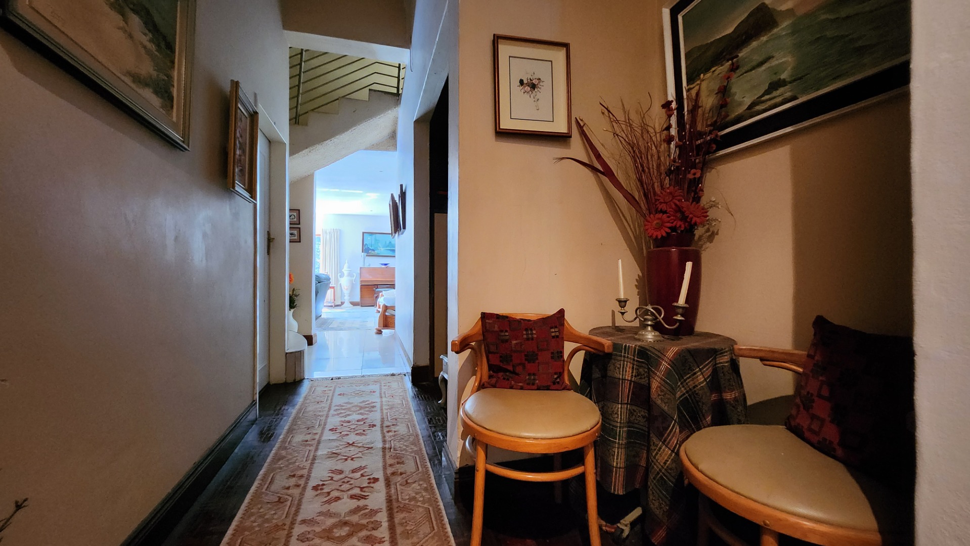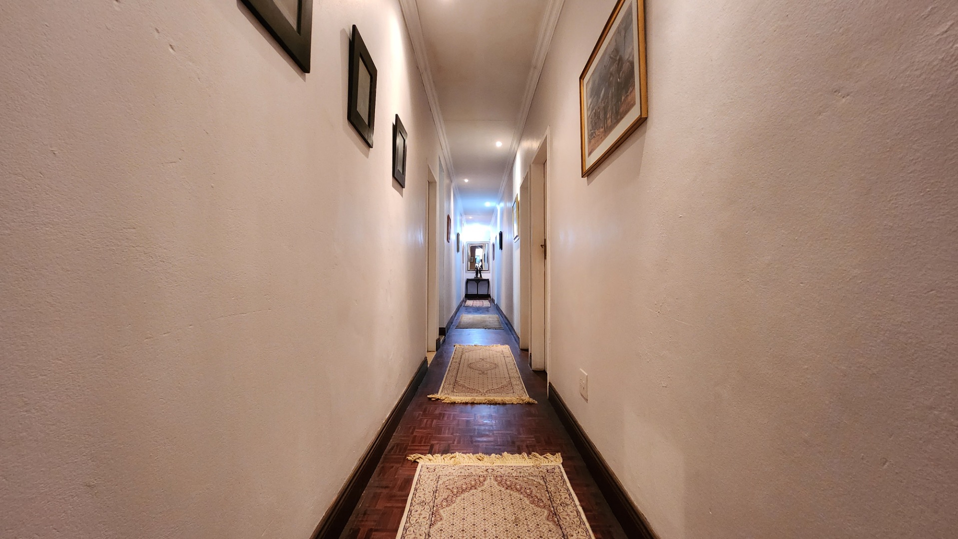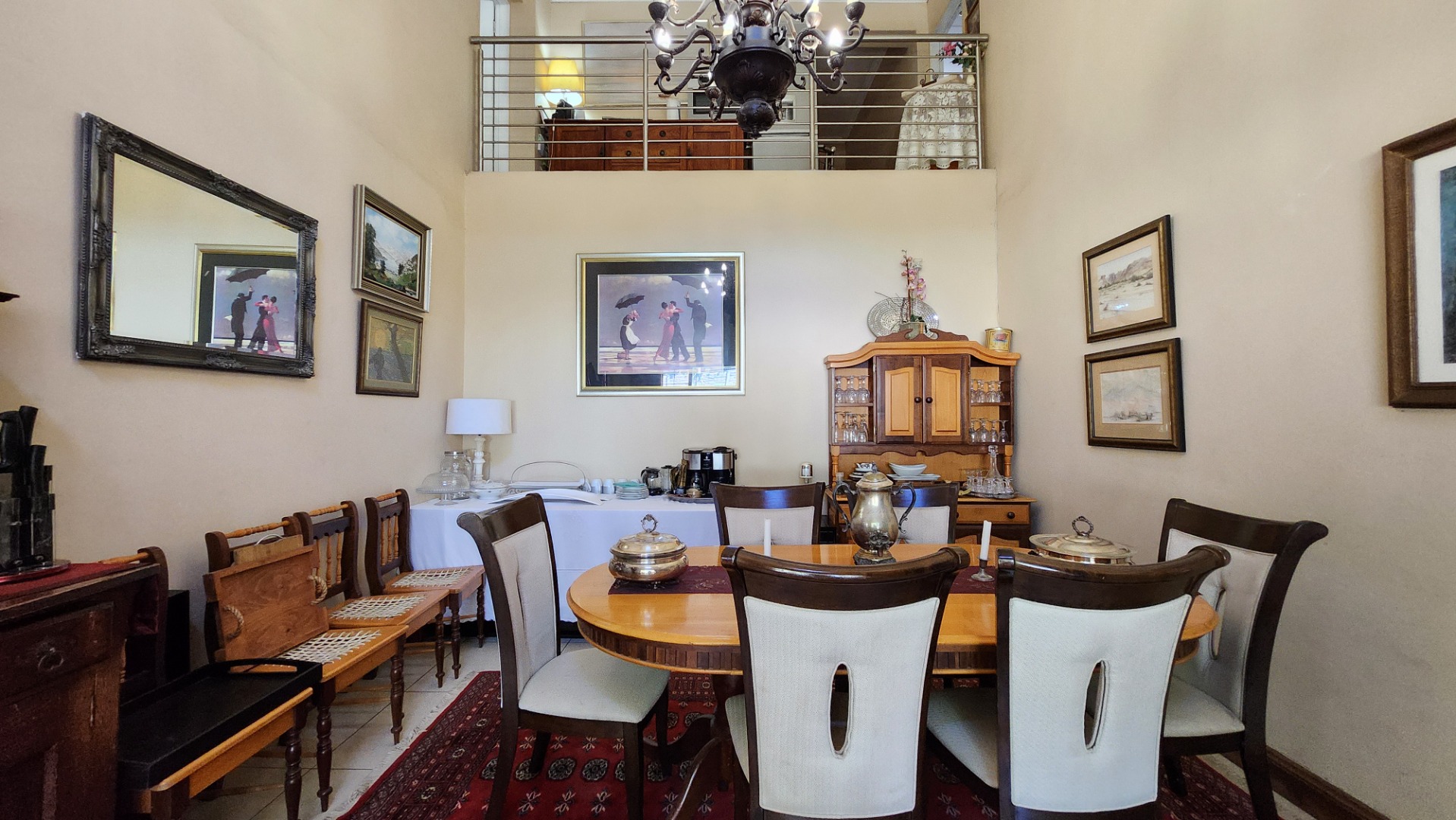 Beyond the interiors, a private oasis awaits. Immerse yourself in the sparkling swimming pool, complemented with a kiddies pool for the little ones. Unwind on the expansive patio, or enjoy the serene ambiance of the meticulously landscaped garden. Multiple balconies offer elevated vistas, perfect for enjoying the South African climate. Practical considerations are met with five spacious garages and six additional parking bays, alongside dedicated laundry and storage facilities.