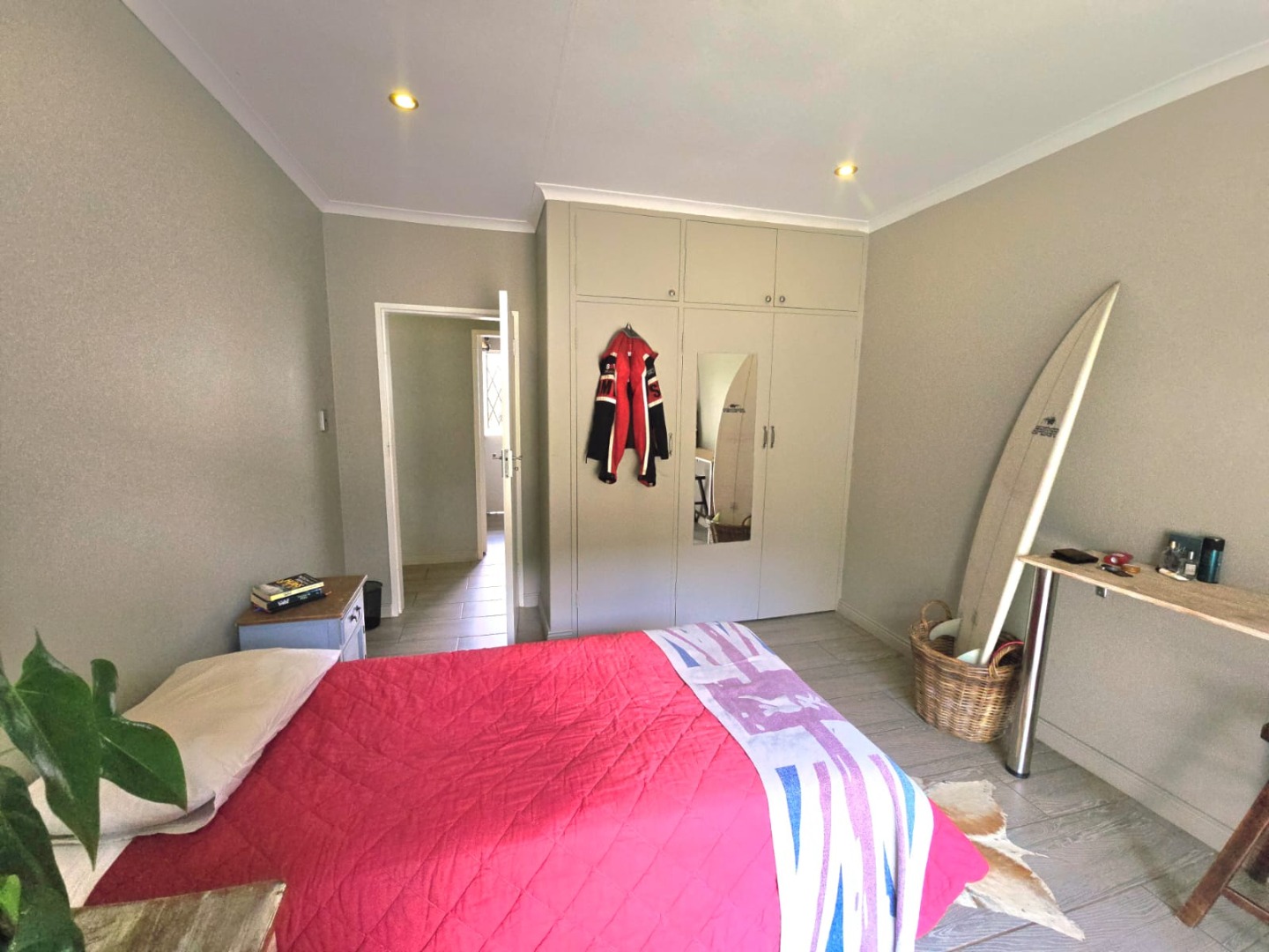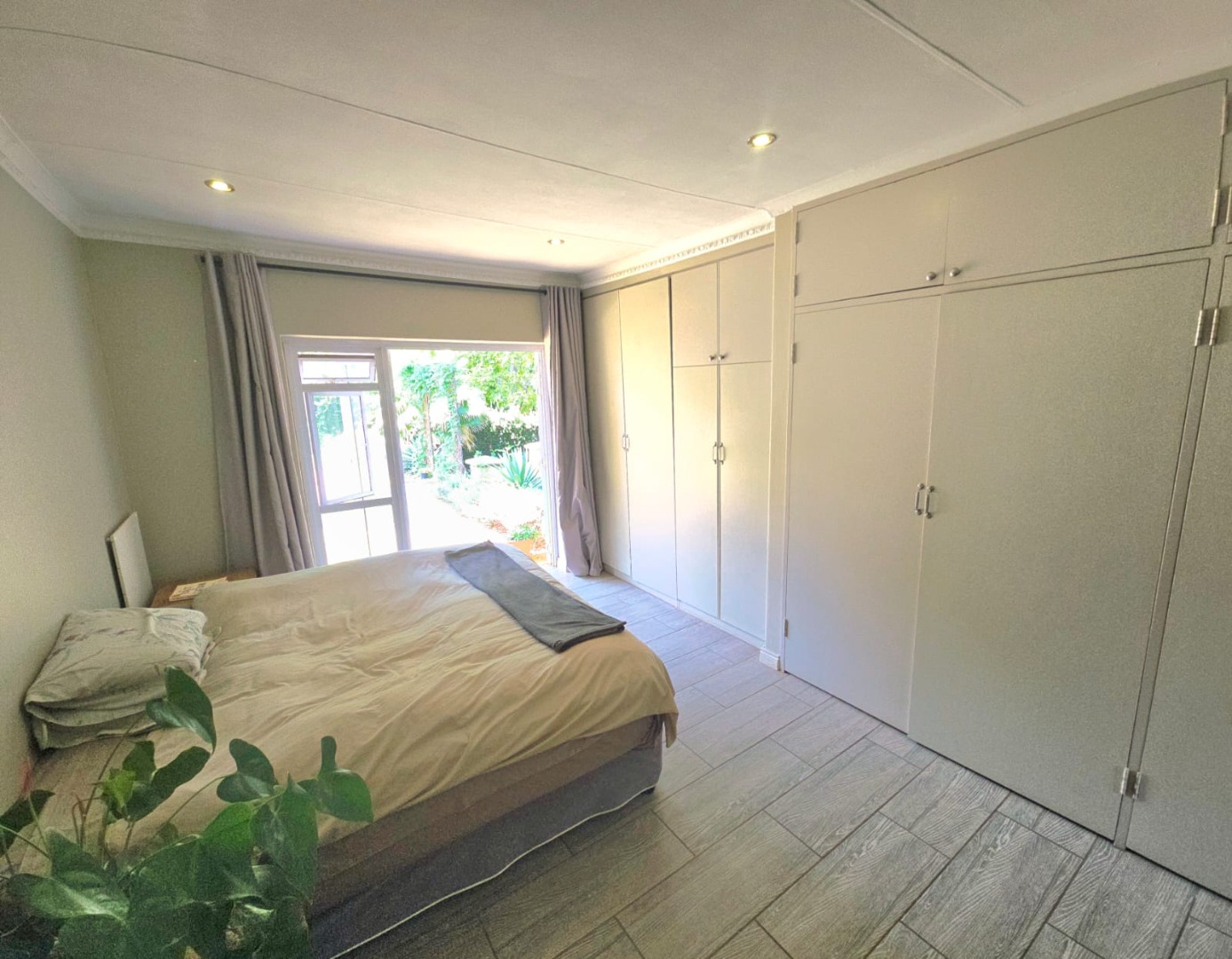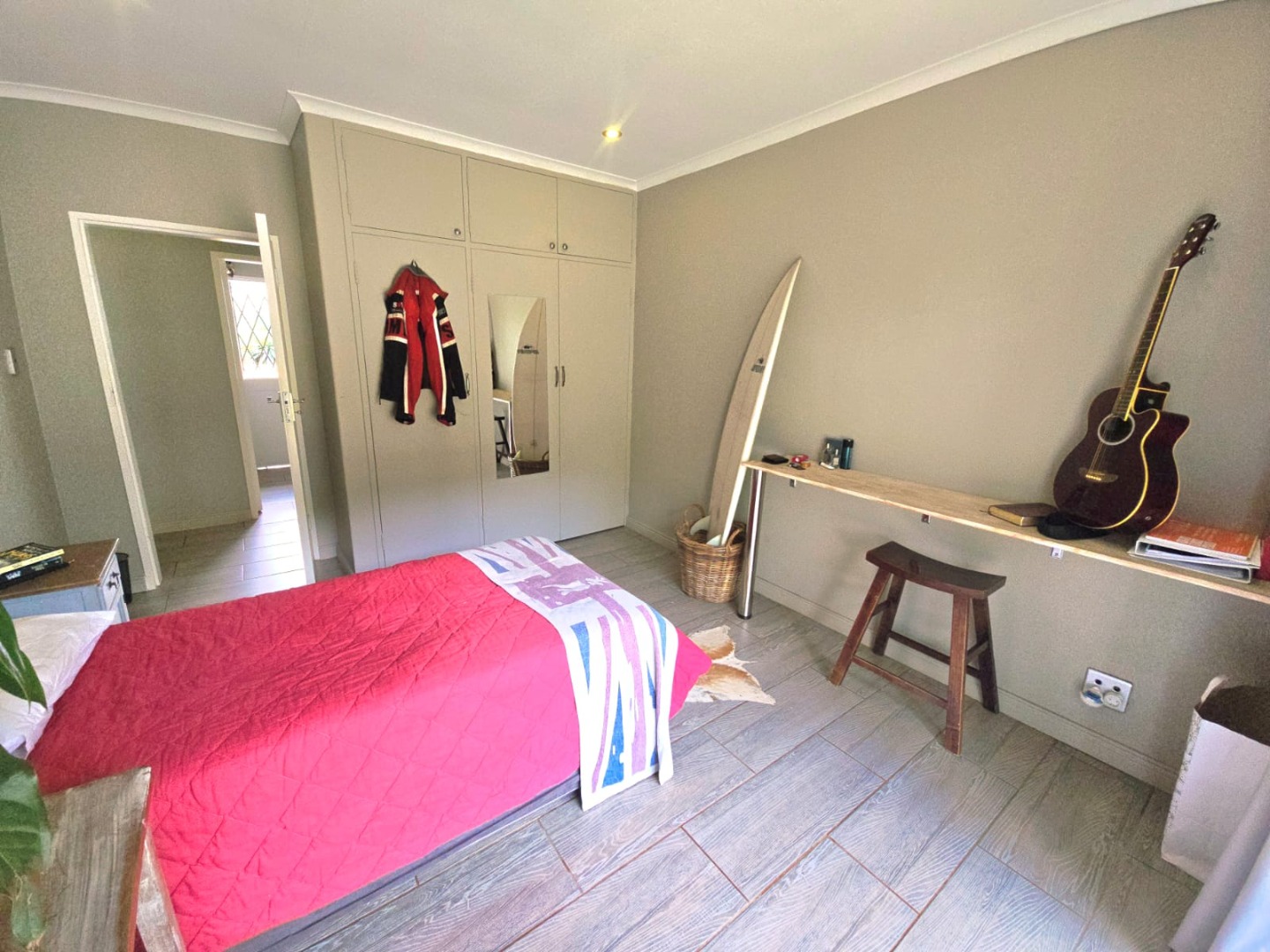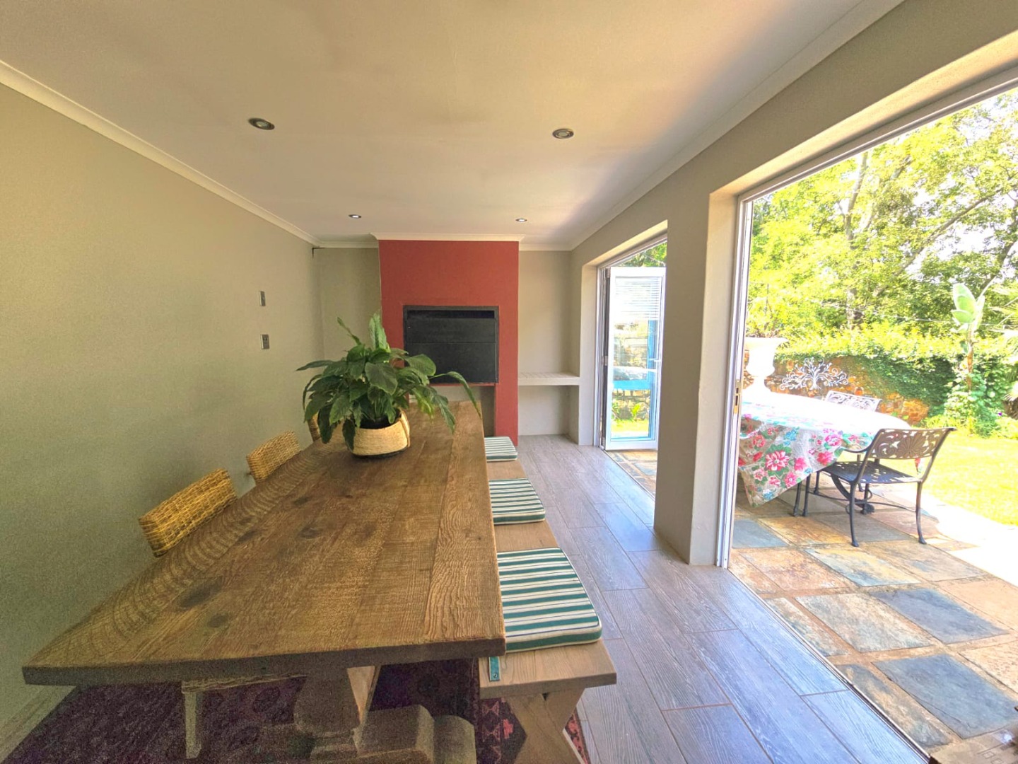 Accommodation in the main house comprises three sun-filled, east-facing bedrooms, each with its own door leading out to the lush garden. The children’s bedrooms share a full bathroom with a separate or guest toilet, while the main bedroom boasts ample cupboard space and a private en-suite bathroom. An additional versatile room can serve as a storeroom, ironing room, or even a compact studio.