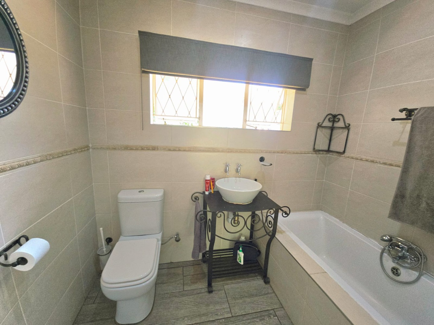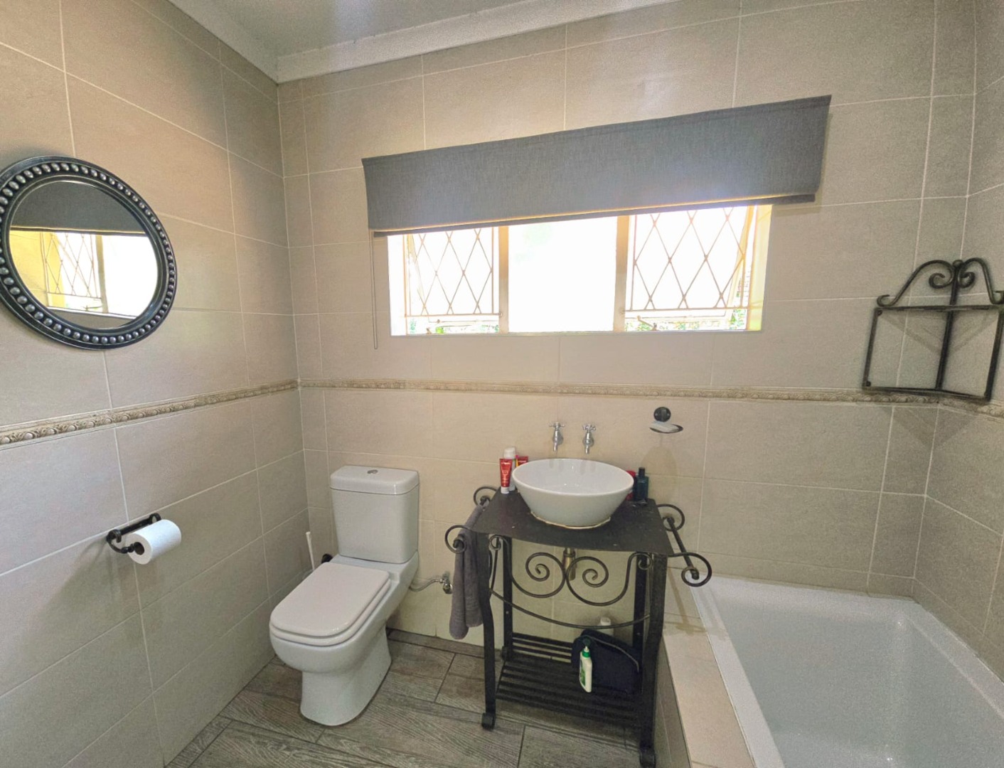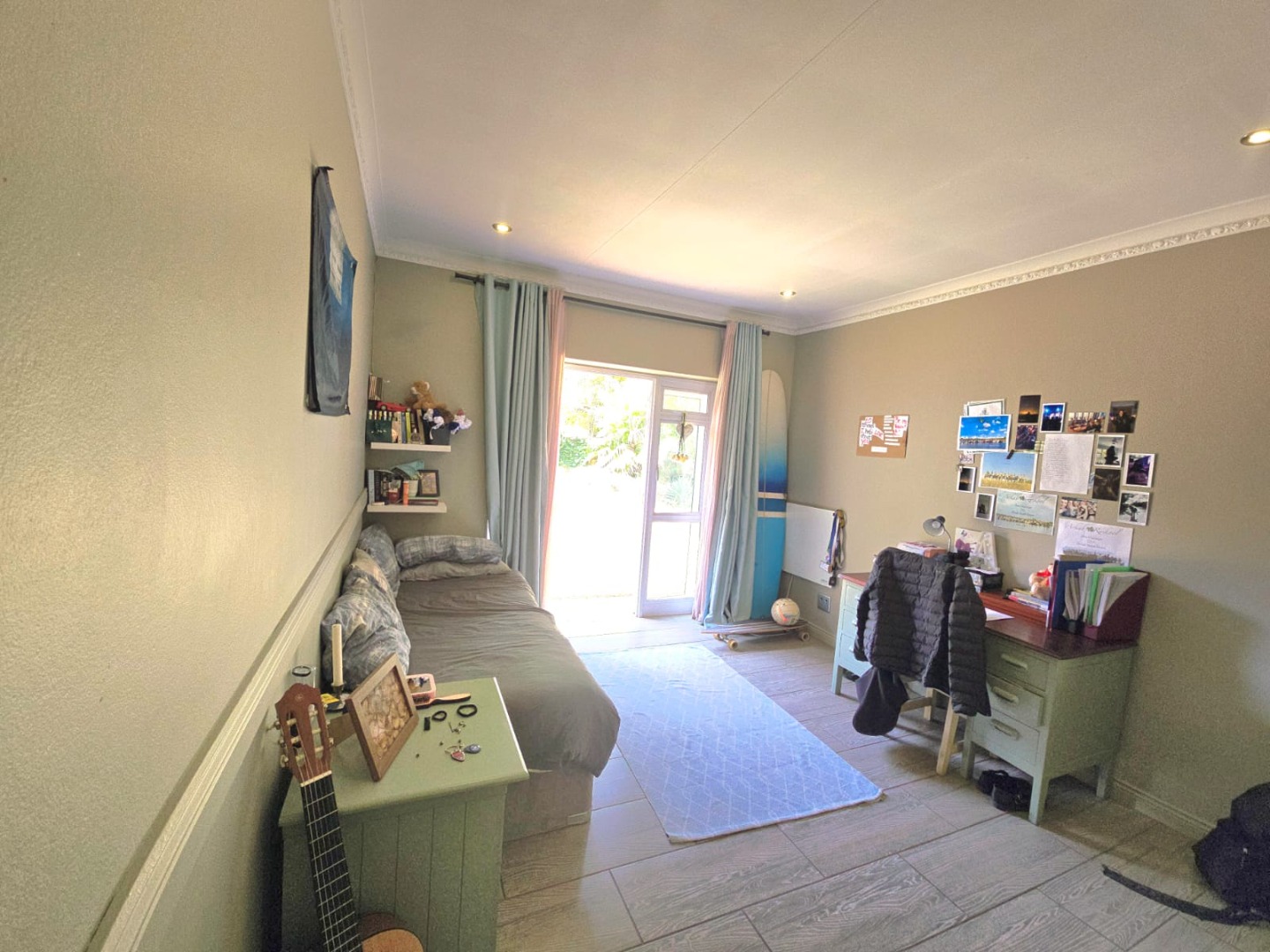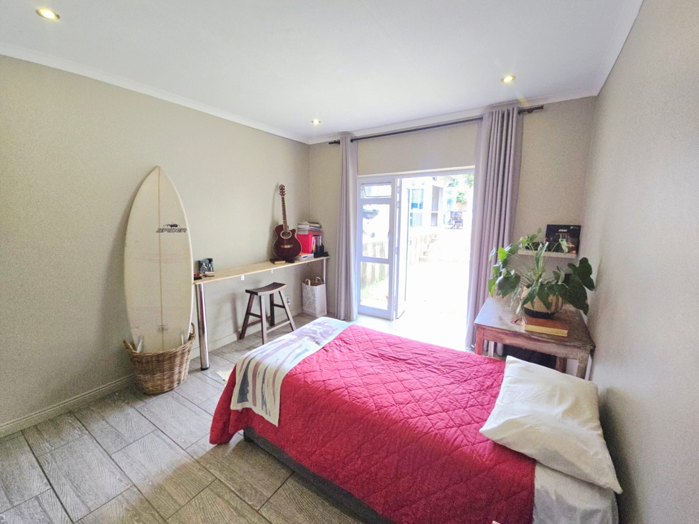 Accommodation in the main house comprises three sun-filled, east-facing bedrooms, each with its own door leading out to the lush garden. The children’s bedrooms share a full bathroom with a separate or guest toilet, while the main bedroom boasts ample cupboard space and a private en-suite bathroom. An additional versatile room can serve as a storeroom, ironing room, or even a compact studio.