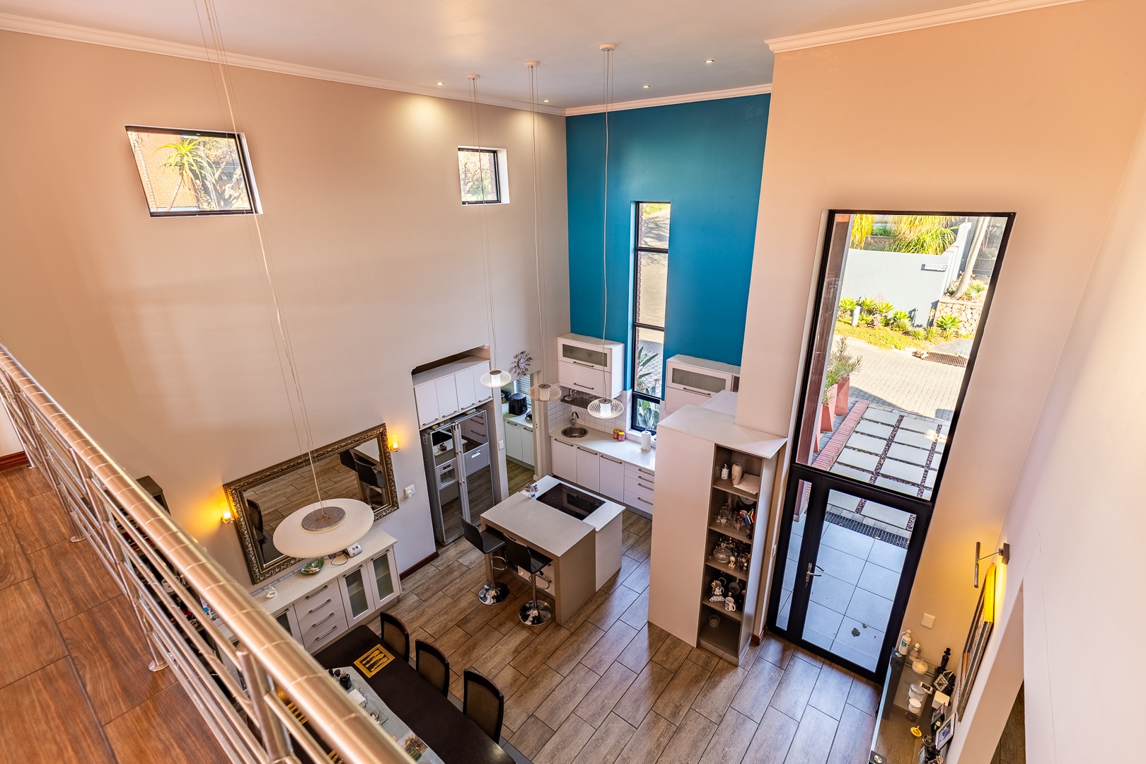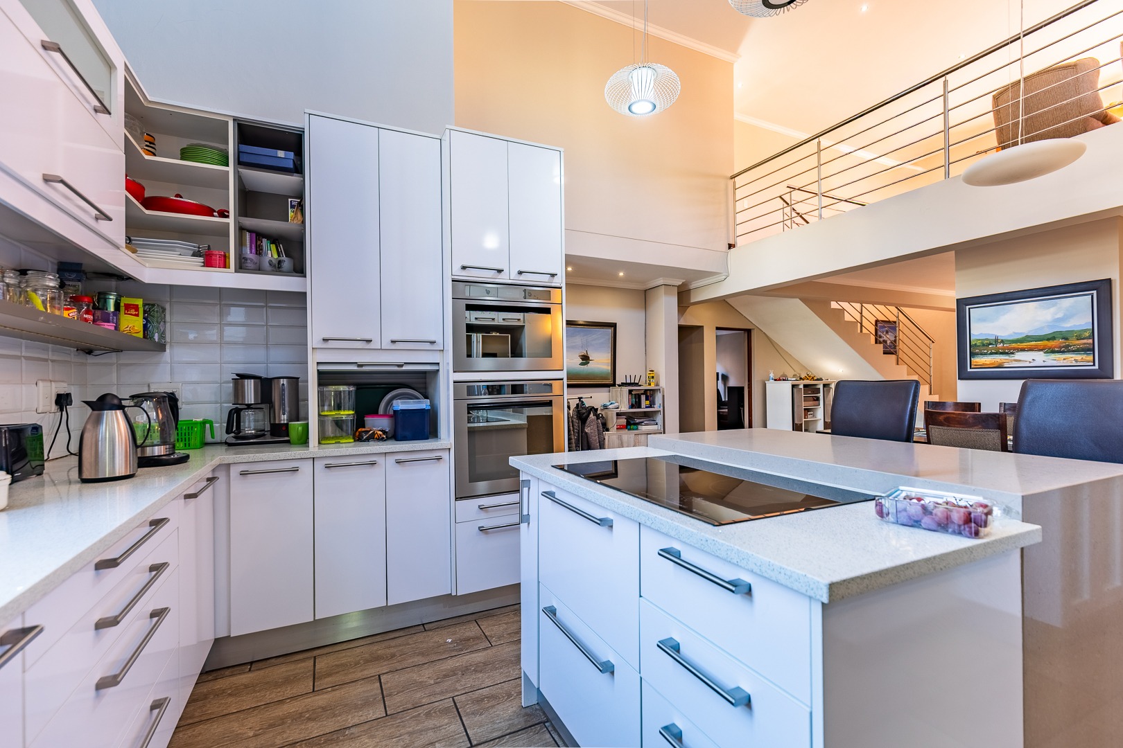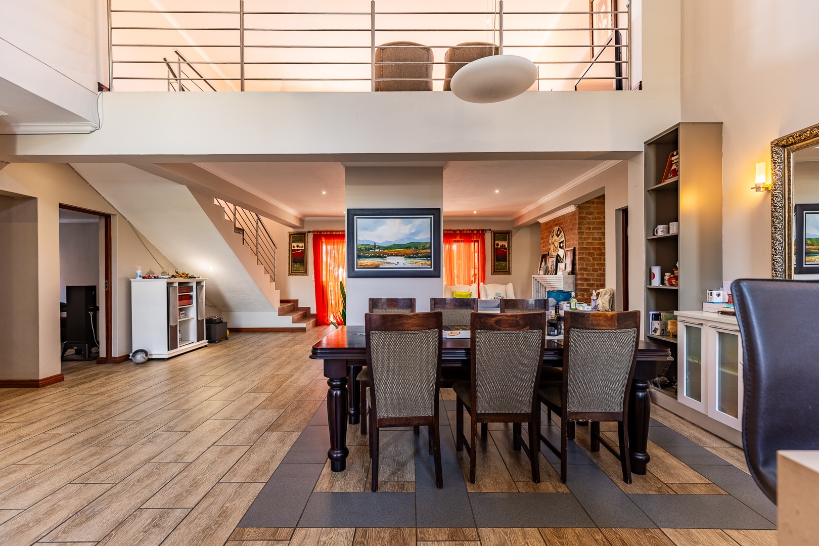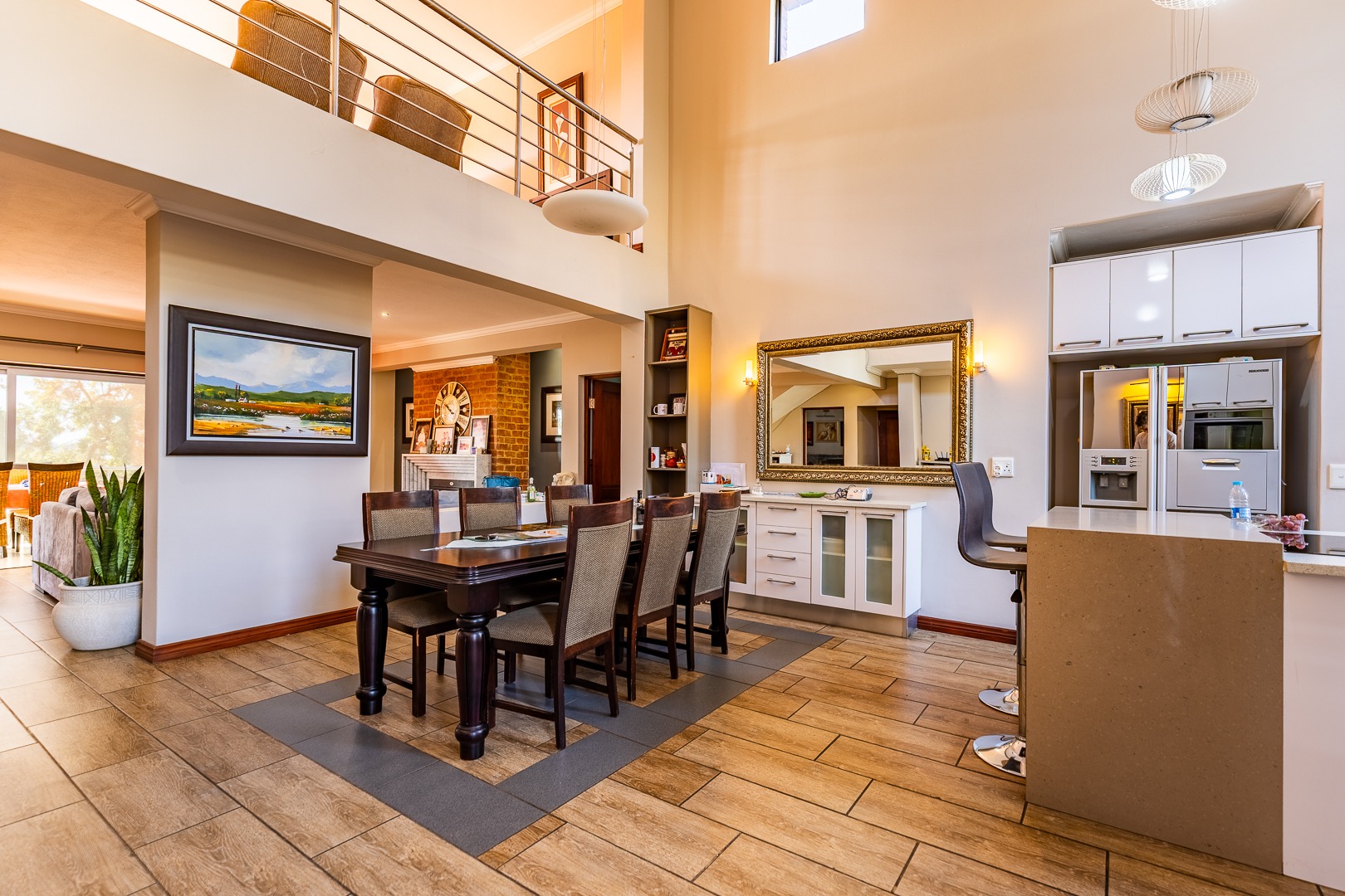 Step inside to an expansive, light-filled sanctuary featuring high ceilings and a functional mezzanine level. The ground floor is designed for both effortless daily living and grand-scale entertaining, featuring: