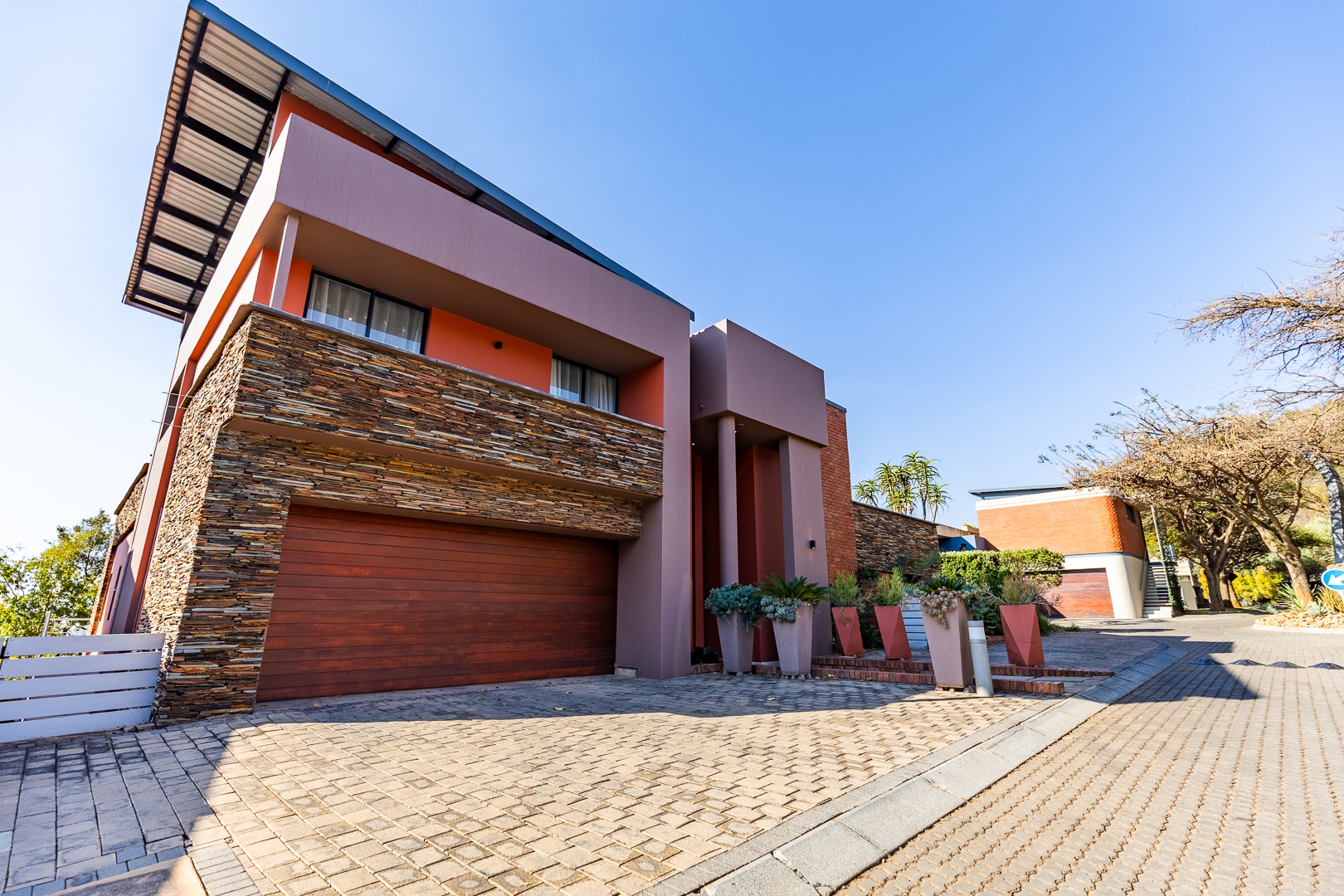 Nestled on the northern border of the Faerie Glen Nature Reserve, this architectural masterpiece offers an unrivalled blend of contemporary design and tranquil natural beauty. Boasting striking curb appeal with its sophisticated blend of red brick, stacked stone cladding, and expansive glass features, this home makes a bold statement from the moment you arrive via the beautifully landscaped driveway.
