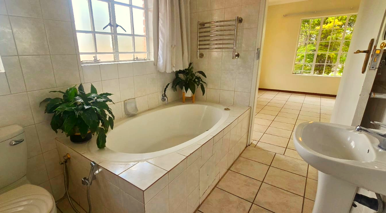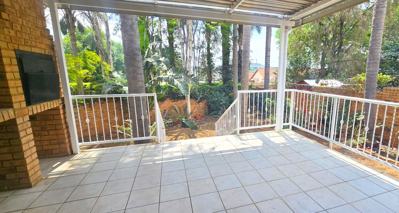 Enjoy seamless indoor-outdoor living with a covered patio and balcony, perfect for entertaining. The built-in braai room is a highlight for social gatherings, overlooking the lush garden. For year-round comfort, the home is equipped with air conditioning.