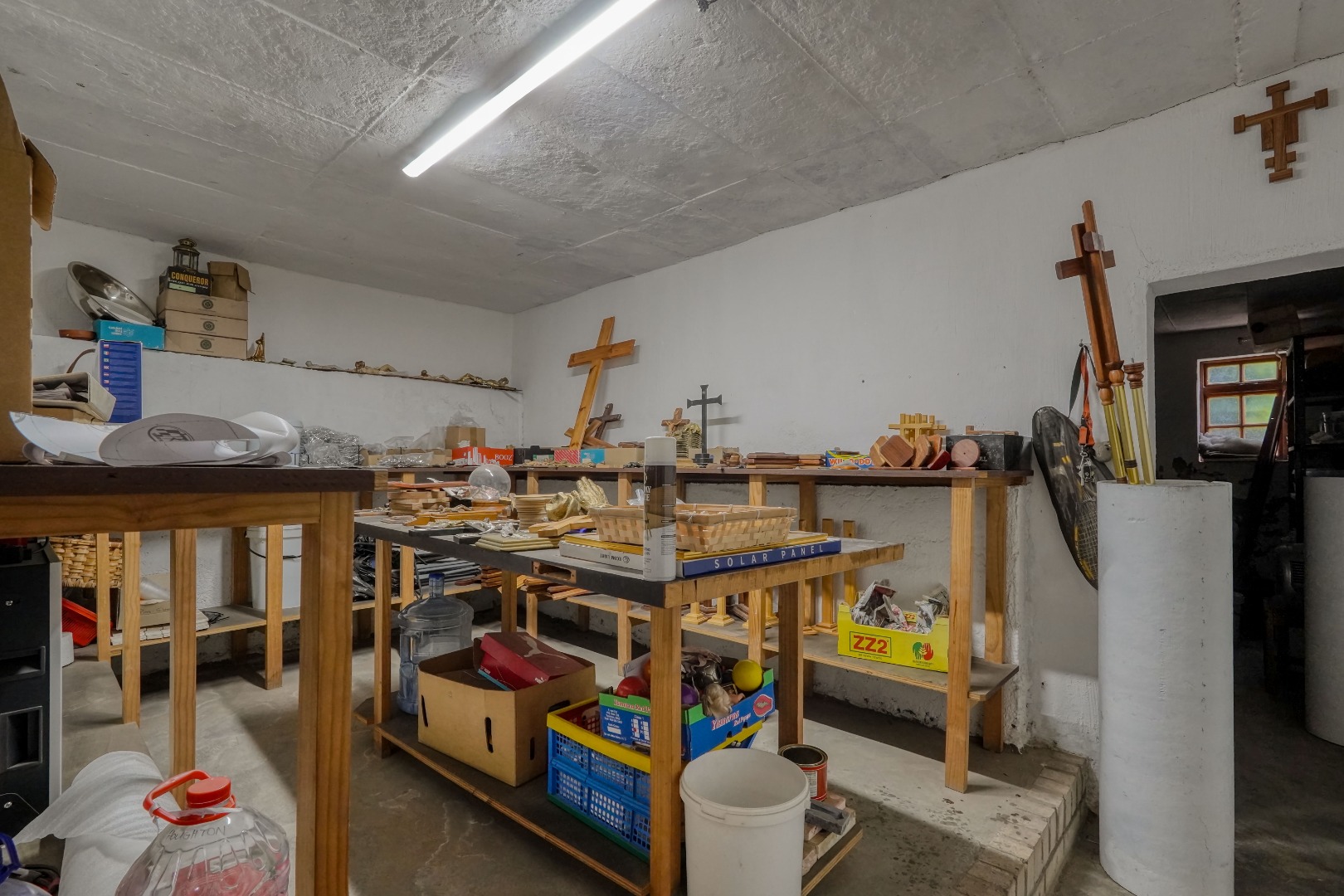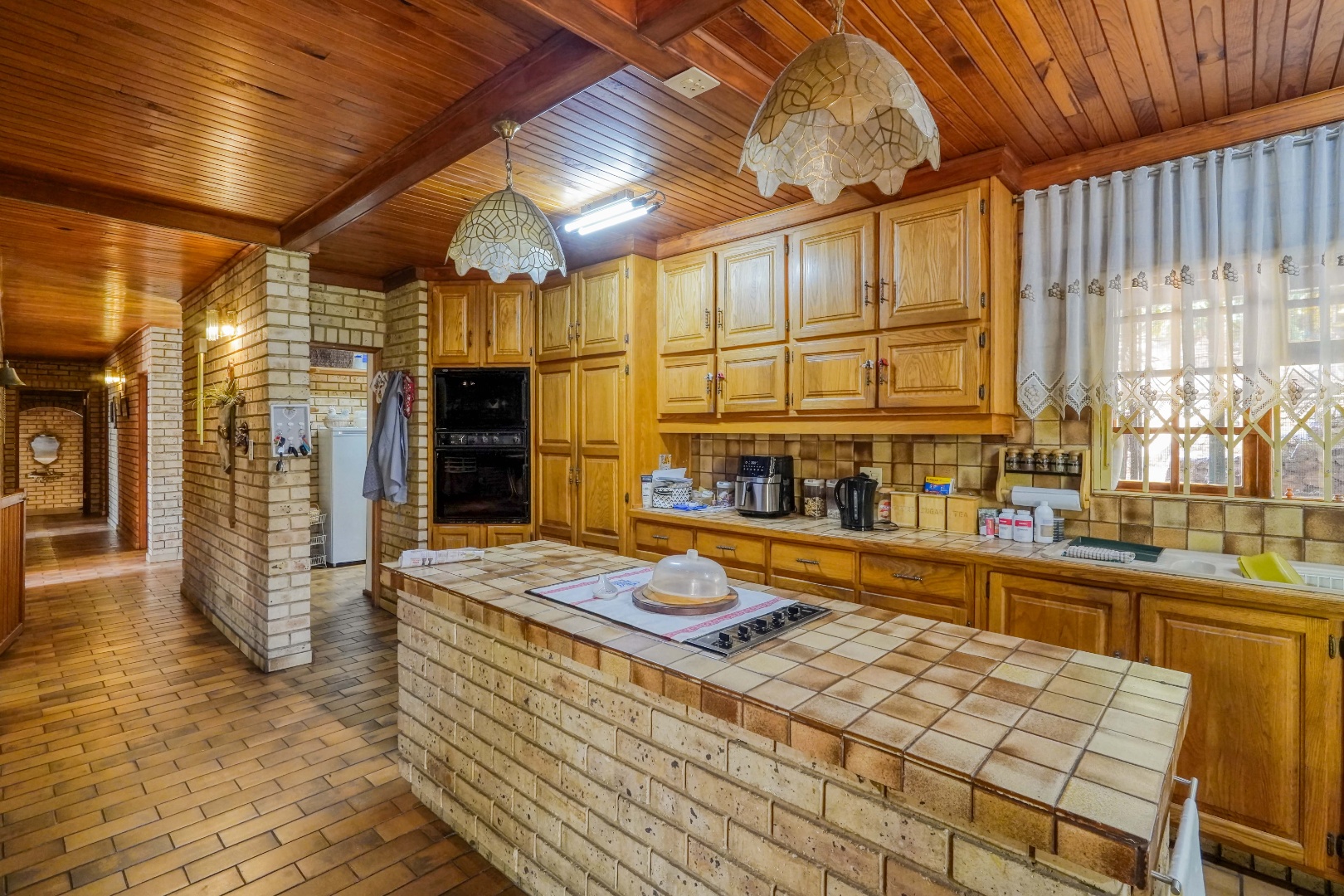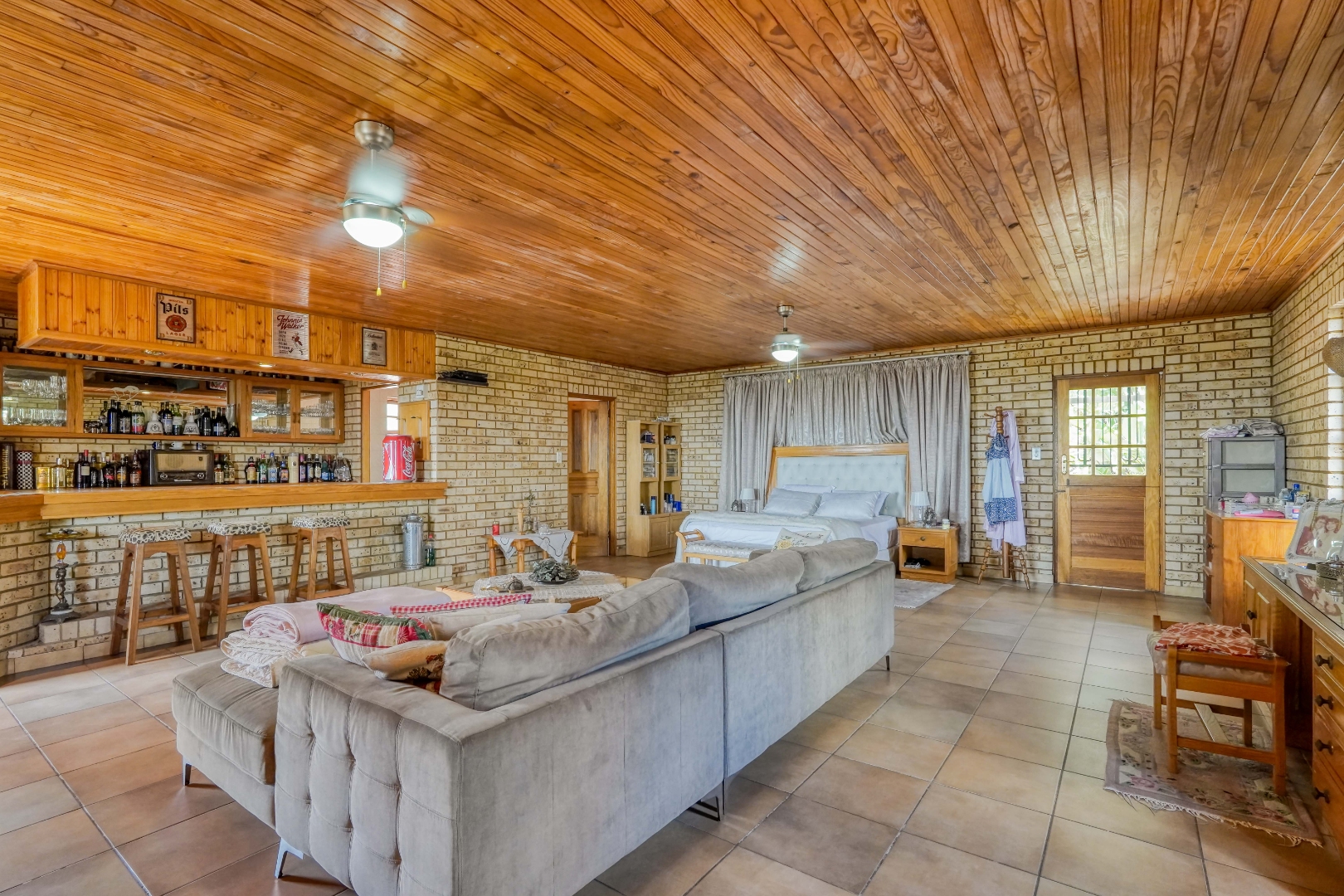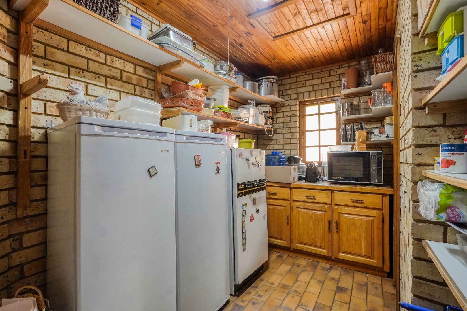 Moving up to the second level, the home shifts into its main living space. The kitchen is open plan and connects to the dining room and lounge, creating a central area for everyday living. A separate scullery and laundry area are positioned alongside for added practicality. From the living spaces, you step out onto a patio designed for entertaining, complete with a braai area.