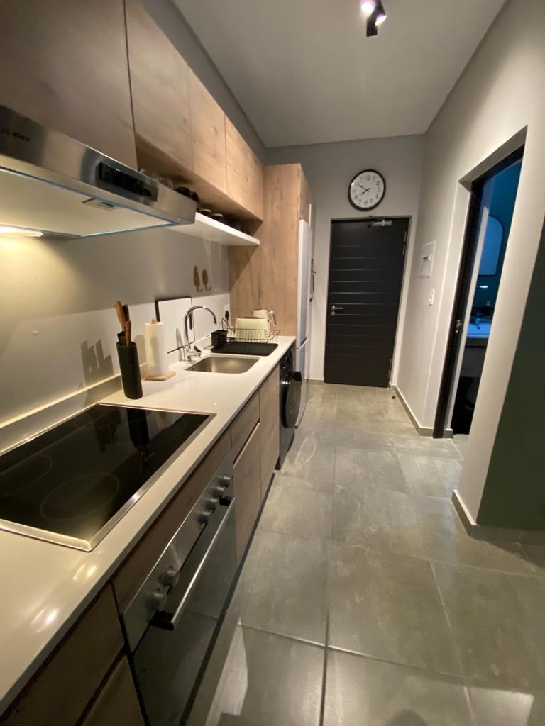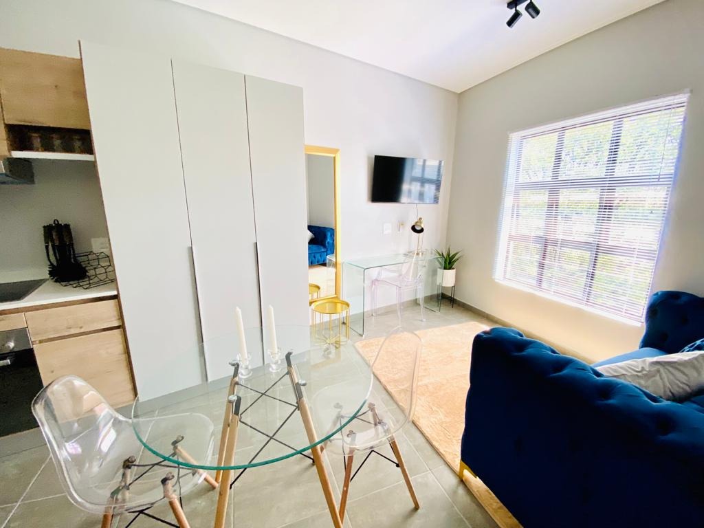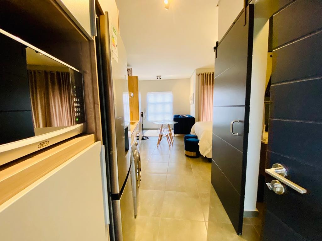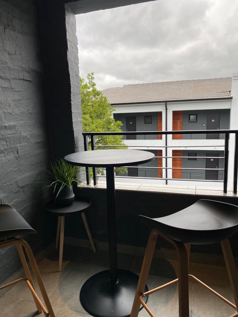 Discover modern living in this stylish 1-bedroom, 1-bathroom apartment located within a secure complex in Menlo Park, Pretoria. This contemporary residence offers an open-plan layout, maximizing space and natural light, ideal for a discerning individual or couple. The interior boasts a sleek, fully equipped kitchen featuring integrated appliances, including a fridge, oven, hob, and even a washing machine, ensuring convenience and a seamless aesthetic. The living area flows effortlessly, providing a versatile space for relaxation and dining, complemented by modern furnishings and a dedicated workspace with a wall-mounted TV. The apartment includes a comfortable bedroom and a well-appointed bathroom, designed with a clean, modern aesthetic. Step outside to enjoy the exceptional communal amenities. The property features a covered outdoor entertainment area with a built-in braai and sink, perfect for social gatherings. Ample seating is provided by two large wooden picnic tables, all set on durable tiled flooring. Residents can also benefit from outdoor exercise equipment and a well-maintained lawn with mature trees, offering a tranquil escape. Security is paramount in this complex, which benefits from 24-hour security, an access gate, and a security gate, providing peace of mind. The modern architectural design, with its white and dark grey exterior, offers excellent kerb appeal. Connectivity is ensured with fibre internet availability. Situated in the sought-after suburb of Menlo Park, this property offers convenient access to local amenities and transport routes in Pretoria. It presents an excellent opportunity for those seeking a contemporary lifestyle within a secure and well-managed environment. Key Features: * Modern 1-bedroom, 1-bathroom apartment * Open-plan living with integrated kitchen appliances * Covered outdoor entertainment area with built-in braai * Communal outdoor exercise equipment and lawn * Secure complex with 24-hour security and access gate * Fibre internet ready * One dedicated parking bay * Balcony access
