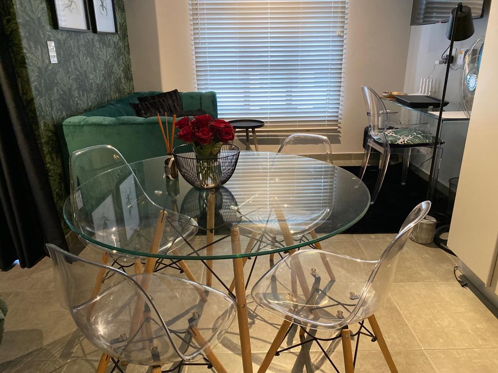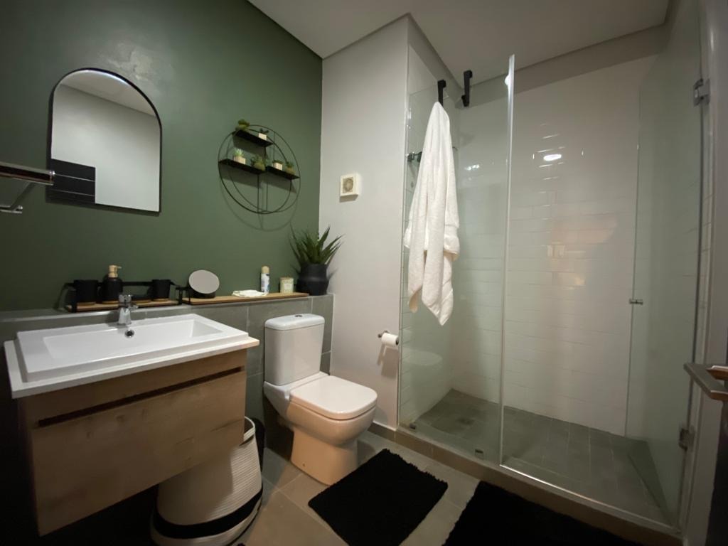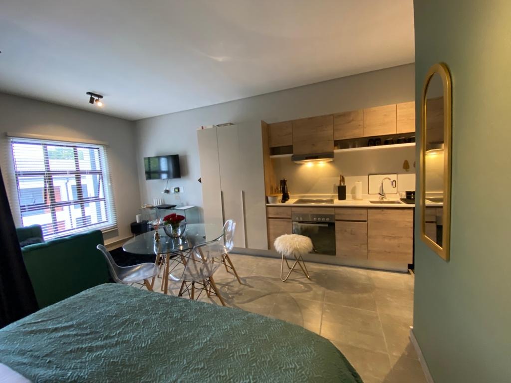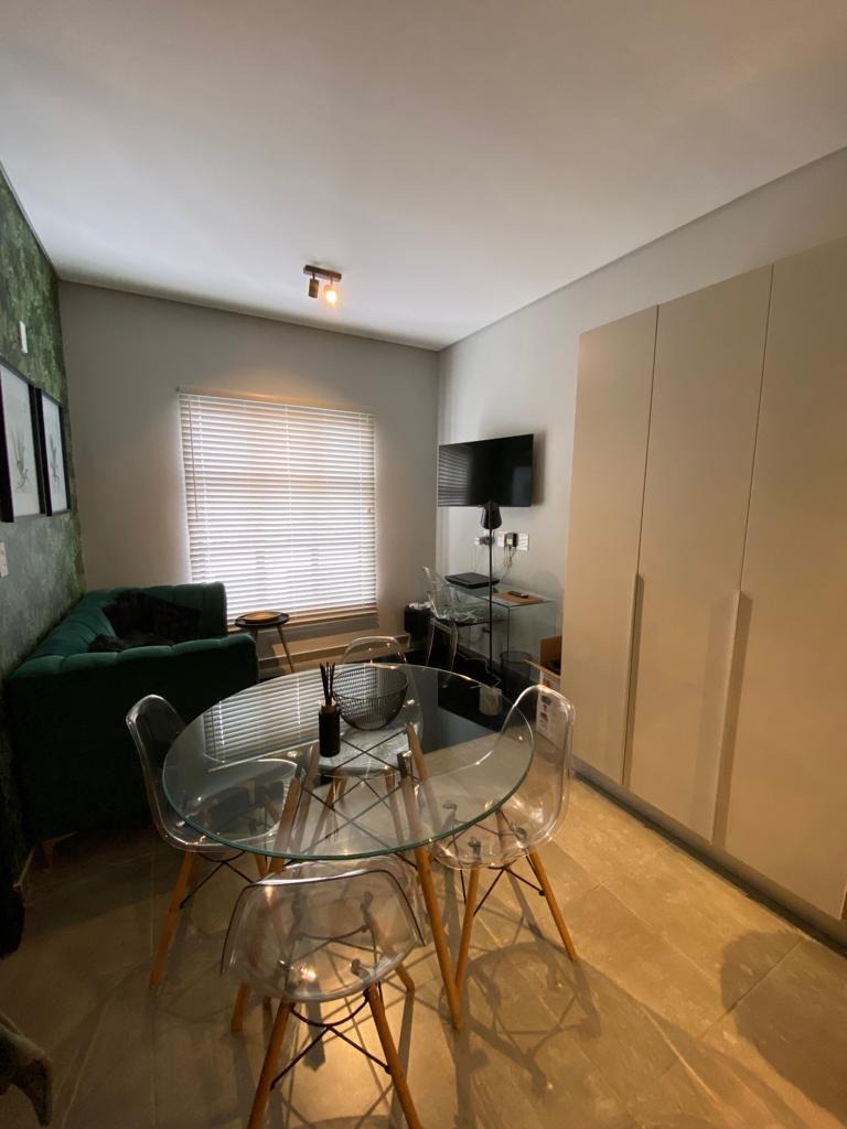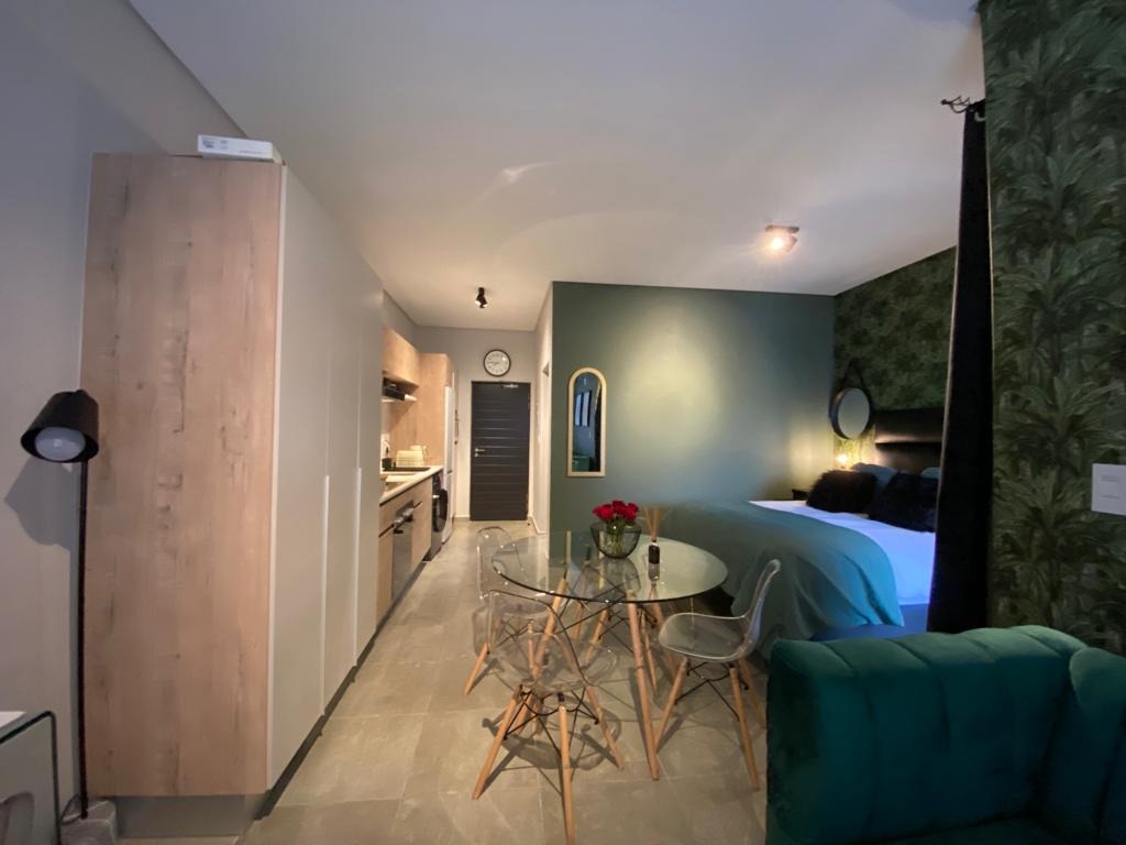 Discover modern living in this stylish 1-bedroom, 1-bathroom apartment located within a secure complex in Menlo Park, Pretoria. This contemporary residence offers an open-plan layout, maximizing space and natural light, ideal for a discerning individual or couple. The interior boasts a sleek, fully equipped kitchen featuring integrated appliances, including a fridge, oven, hob, and even a washing machine, ensuring convenience and a seamless aesthetic. The living area flows effortlessly, providing a versatile space for relaxation and dining, complemented by modern furnishings and a dedicated workspace with a wall-mounted TV. The apartment includes a comfortable bedroom and a well-appointed bathroom, designed with a clean, modern aesthetic. Step outside to enjoy the exceptional communal amenities. The property features a covered outdoor entertainment area with a built-in braai and sink, perfect for social gatherings. Ample seating is provided by two large wooden picnic tables, all set on durable tiled flooring. Residents can also benefit from outdoor exercise equipment and a well-maintained lawn with mature trees, offering a tranquil escape. Security is paramount in this complex, which benefits from 24-hour security, an access gate, and a security gate, providing peace of mind. The modern architectural design, with its white and dark grey exterior, offers excellent kerb appeal. Connectivity is ensured with fibre internet availability. Situated in the sought-after suburb of Menlo Park, this property offers convenient access to local amenities and transport routes in Pretoria. It presents an excellent opportunity for those seeking a contemporary lifestyle within a secure and well-managed environment. Key Features: * Modern 1-bedroom, 1-bathroom apartment * Open-plan living with integrated kitchen appliances * Covered outdoor entertainment area with built-in braai * Communal outdoor exercise equipment and lawn * Secure complex with 24-hour security and access gate * Fibre internet ready * One dedicated parking bay * Balcony access