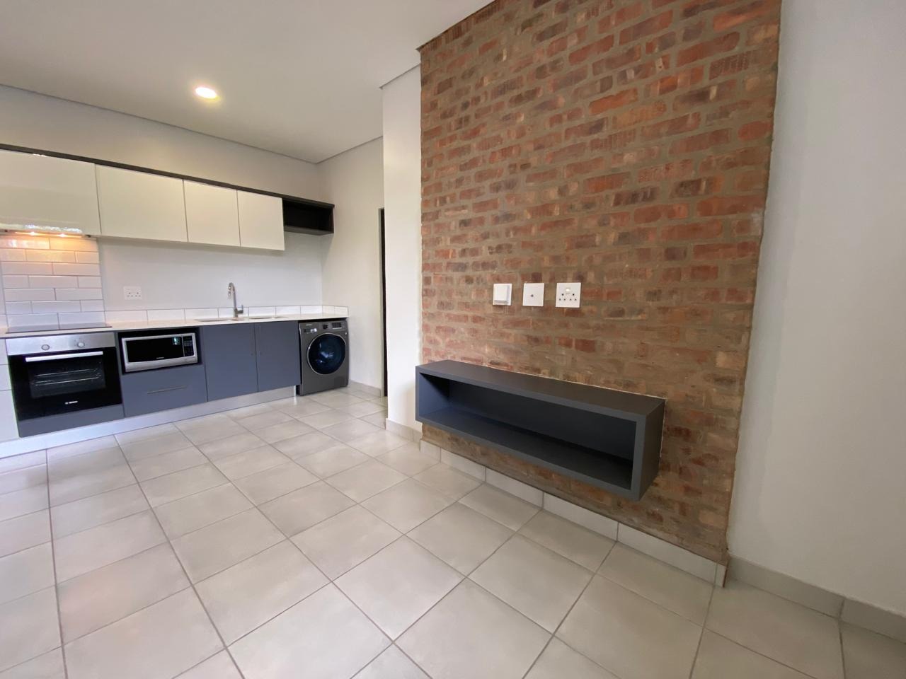 Discover modern living in this stylish 1-bedroom, 1-bathroom apartment, ideally situated within a secure complex in Menlo Park, Pretoria. Its open-plan layout ensures a seamless flow, perfect for contemporary lifestyles. The sleek, modern kitchen is a highlight, featuring two-tone cabinetry, integrated oven, microwave, and a washing machine for convenience. A chic subway tile backsplash complements the design. The adjacent lounge area boasts an exposed brick accent wall and a floating media console, all set on durable tiled flooring with recessed lighting. The comfortable bedroom offers ample natural light through a large window and includes a modern built-in wardrobe for practical storage. The contemporary bathroom is fully tiled, featuring a wall-mounted vanity, integrated sink, and a glass-enclosed shower. Enjoy fresh air from your private balcony. The property includes one dedicated parking bay within the secure complex, offering peace of mind with 24-hour security and access gate control. Fibre connectivity is available. Menlo Park is a sought-after Pretoria suburb, known for its vibrant atmosphere, excellent amenities, and convenient access to major routes, shopping, and educational institutions. Key Features: * 1 Bedroom, 1 Bathroom * Modern Open-Plan Living * Sleek Kitchen with Integrated Appliances * Exposed Brick Accent Wall * Private Balcony * Dedicated Parking Bay * Secure Complex with 24-Hour Security * Fibre Ready * Tiled Flooring Throughout