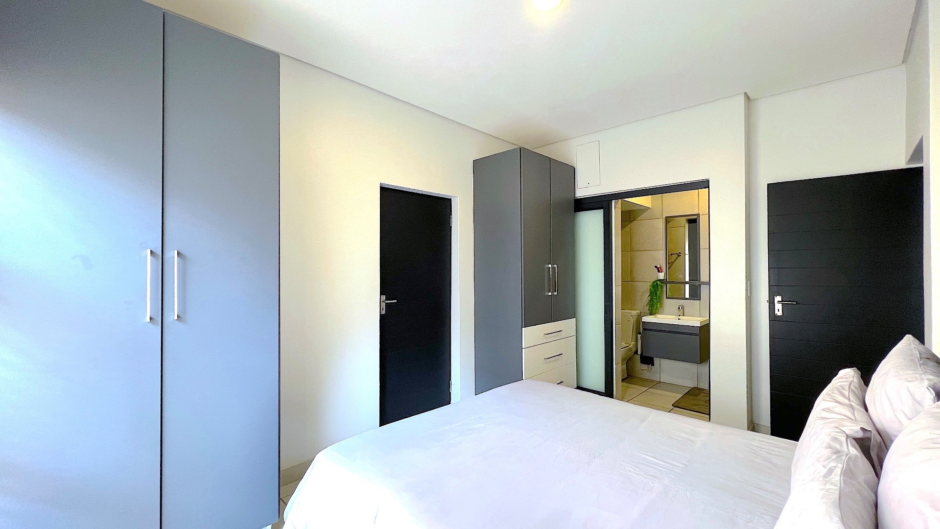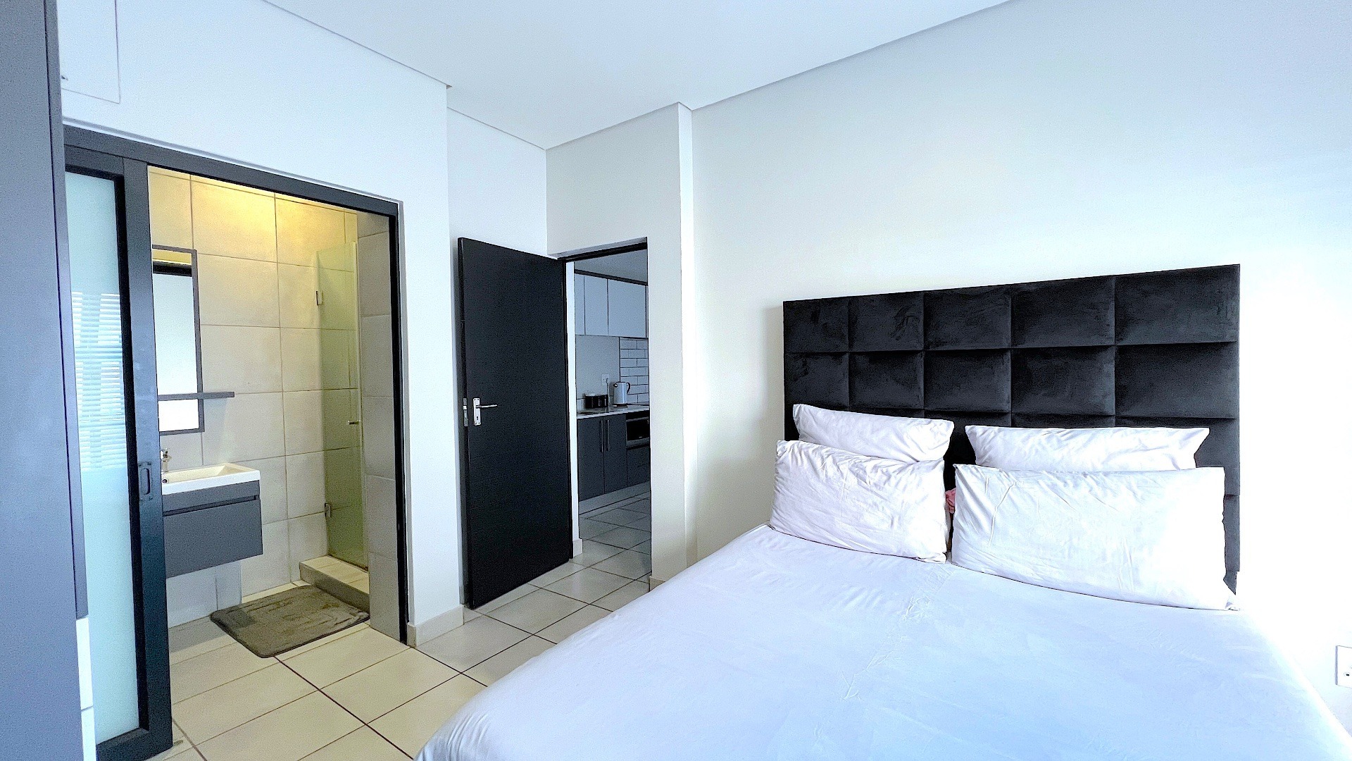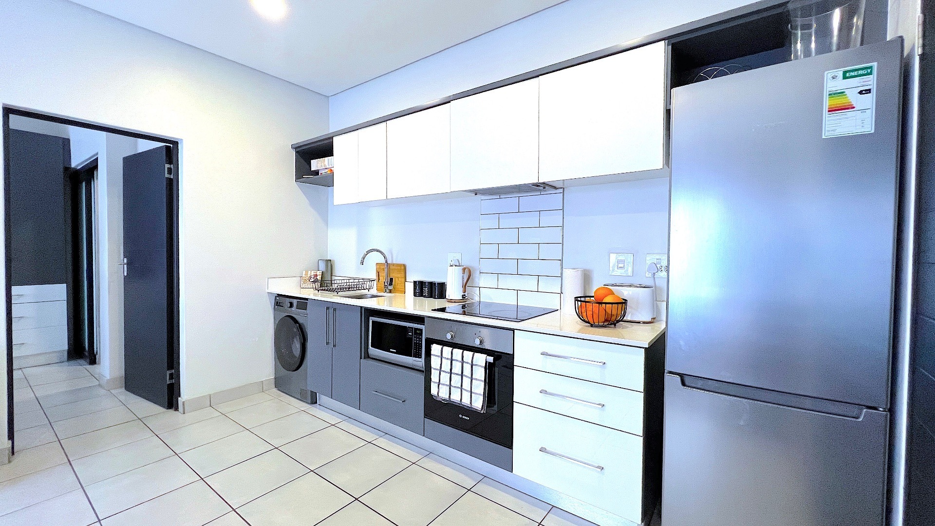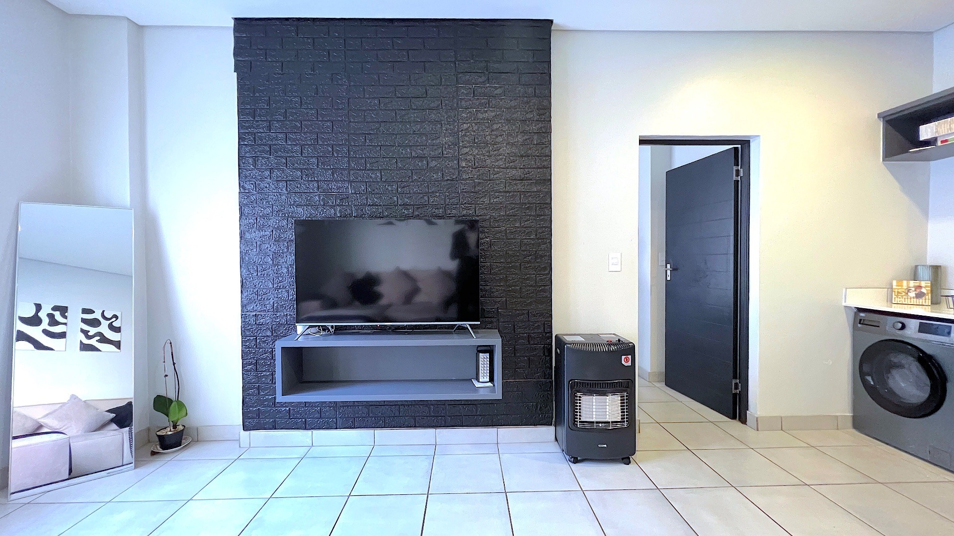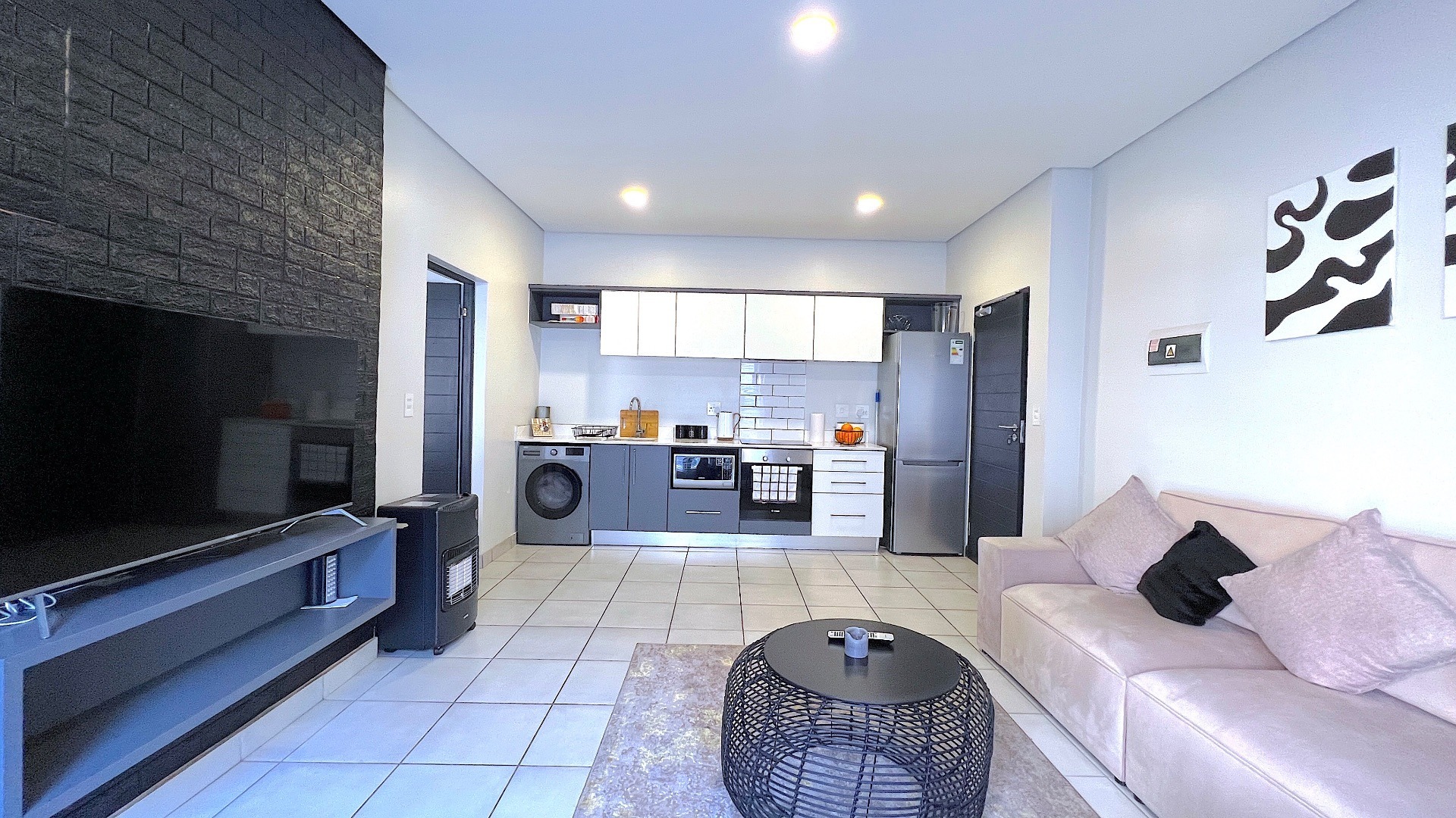 Discover modern living in this stylish 1-bedroom apartment located within a secure complex in Menlo Park, Pretoria. This contemporary 49 sqm residence offers a functional floor plan, ideal for individuals or students seeking convenience and comfort in a vibrant metropolitan and suburban setting. The interior features an open-plan layout, seamlessly connecting the lounge and kitchen. The modern kitchen boasts sleek two-tone cabinetry, a subway tile backsplash, and integrated appliances including a washing machine, oven, hob, microwave, and a full-size fridge/freezer. Tiled flooring throughout ensures easy maintenance, while recessed lighting creates a bright atmosphere. The living space is enhanced by a decorative black brick-style accent wall, adding a contemporary touch. The apartment includes one comfortable bedroom and a well-appointed bathroom. The modern bathroom features a floating vanity with an integrated sink, a sleek mirror, and a glass-enclosed shower, complemented by neutral grey tiling. A tall cabinet provides ample storage. Residents benefit from excellent security, including a gated entry with an ADT system, electric fencing, a security post, and an access gate. Fibre internet connectivity is available. Perfectly positioned within a university/college community, this property is an attractive option for student accommodation or those desiring a metropolitan lifestyle with suburban tranquility. Key Features: * 1 Bedroom, 1 Bathroom * 49 sqm Floor Size * Modern Open-Plan Living * Integrated Kitchen Appliances * Secure Complex with ADT System * Fibre Ready * 1 Parking Bay * Ideal for Students/Professionals * Located in Menlo Park, Pretoria
