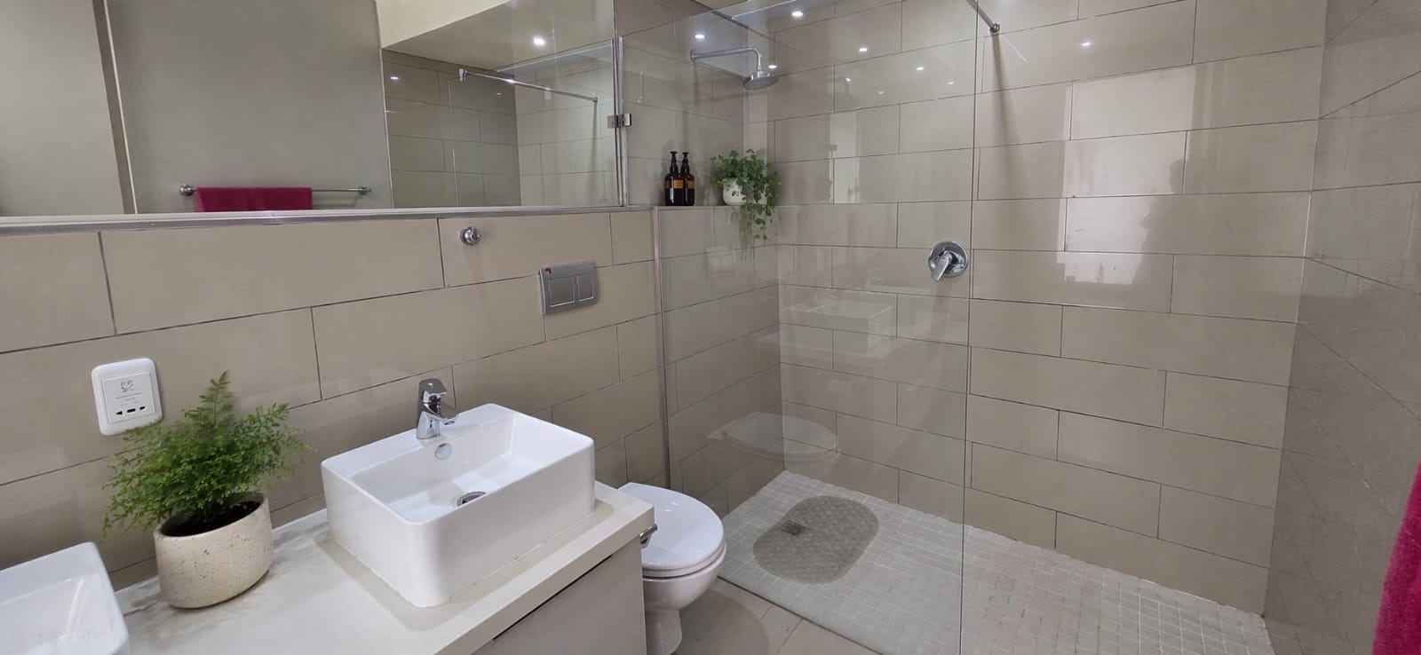 Spanning 102 square metres, the home features an inviting open-plan layout that seamlessly connects the lounge, dining area, and a well-appointed kitchen with scullery. Enjoy the convenience of sliding doors leading to a private balcony, enhancing the sense of space and natural light. Special doors and lighting fixtures contribute to the property's sophisticated aesthetic.