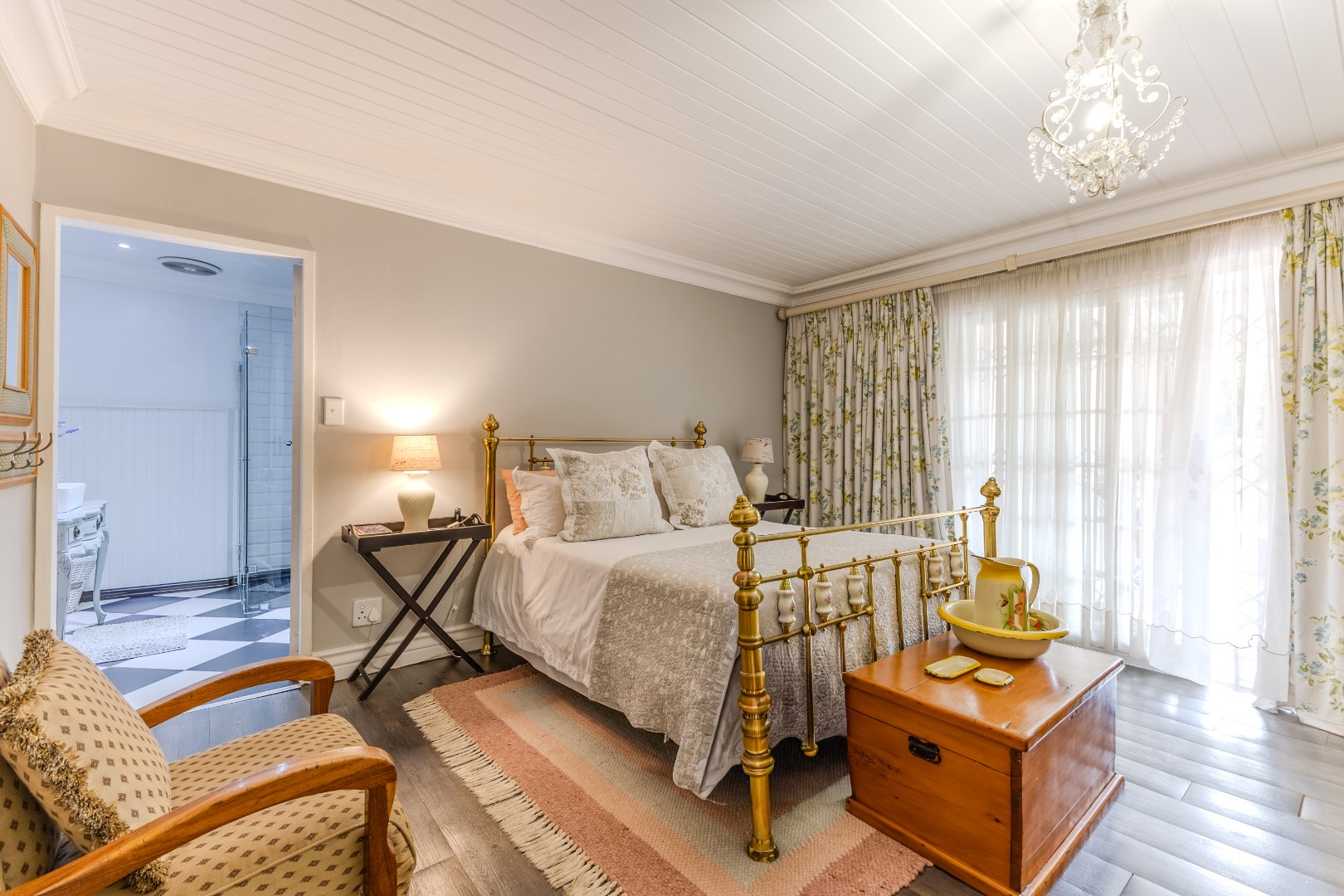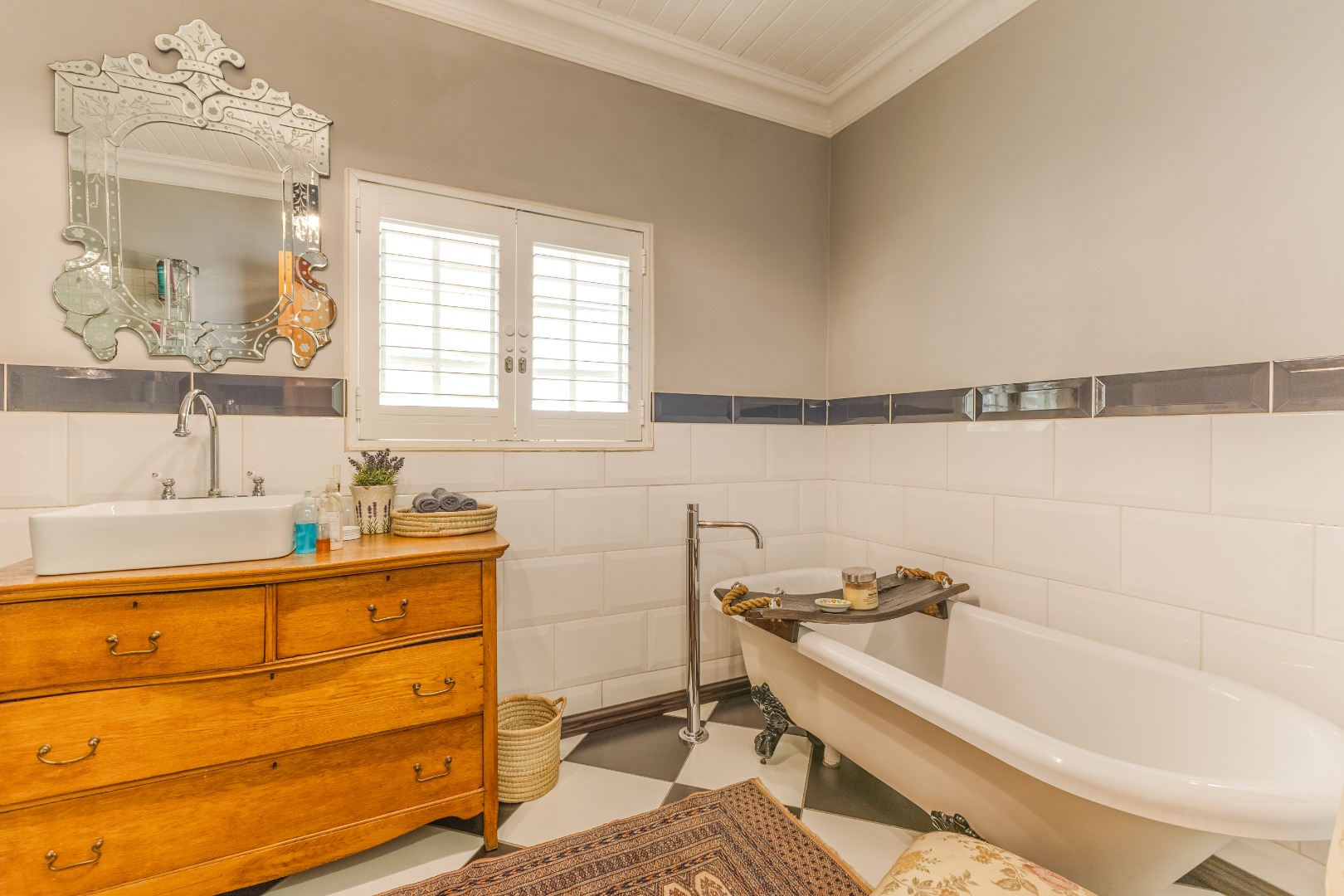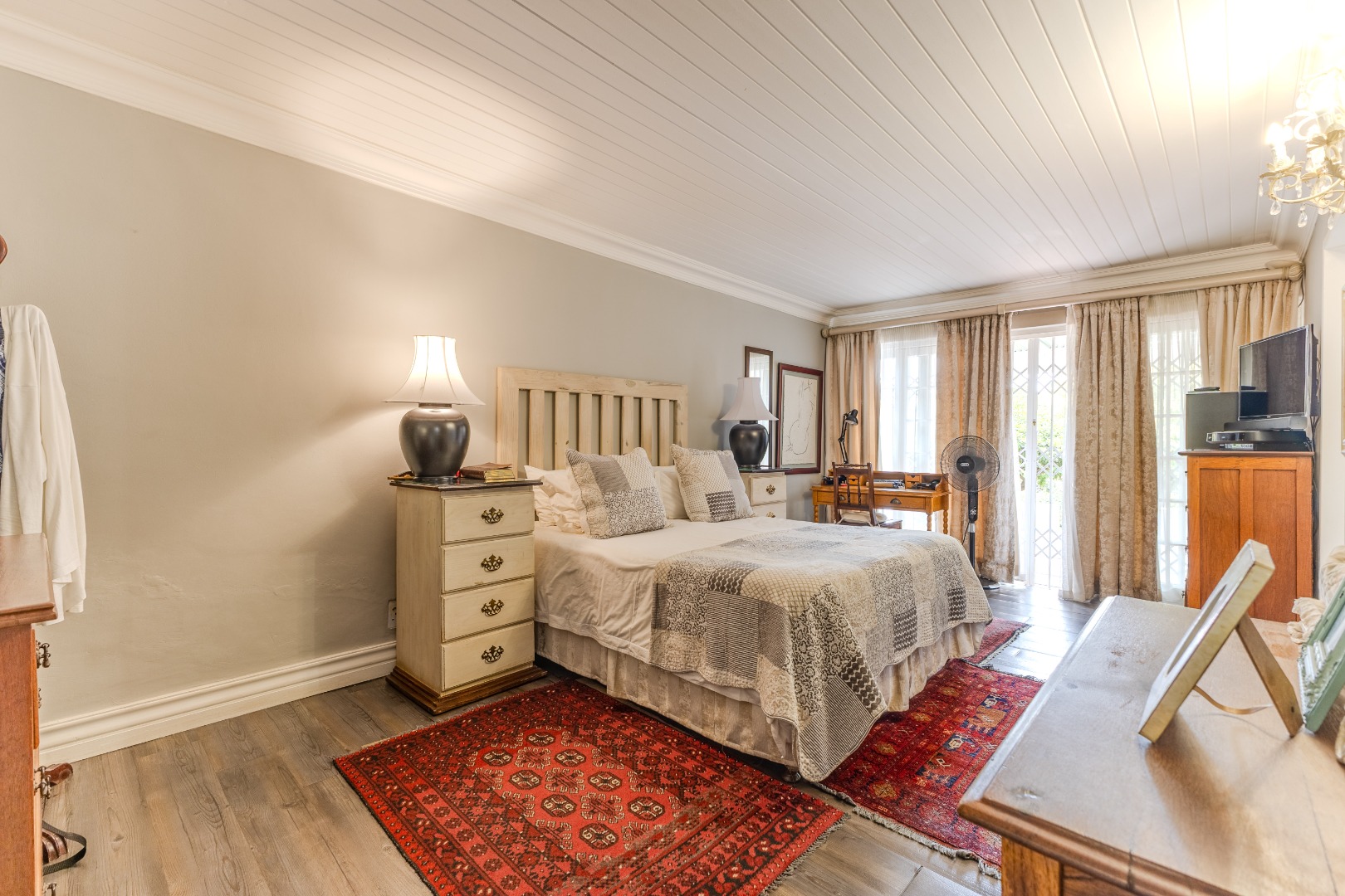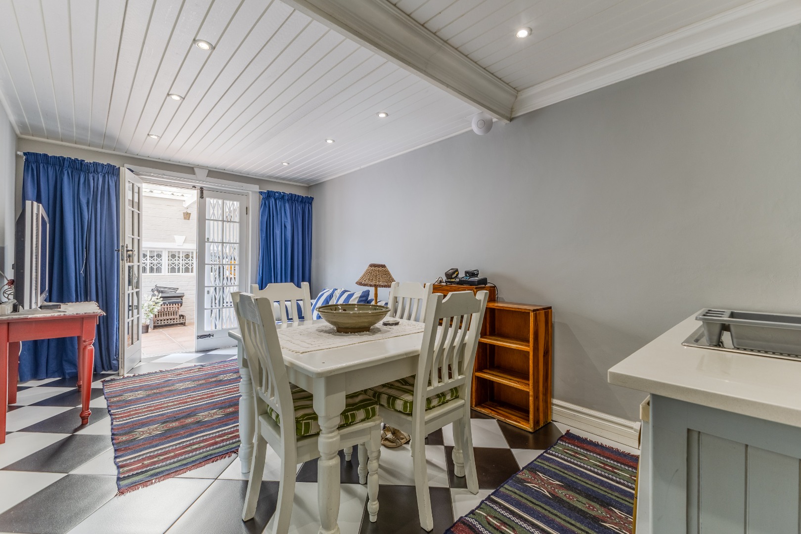 Nestled in a tranquil cul-de-sac within the sought-after Menlo Park suburb of Pretoria, this charming residence offers a blend of classic elegance and modern comfort. The property immediately captivates with its European-inspired facade, featuring white stucco, distinctive light blue shutters, and an elegant red brick entrance portico.