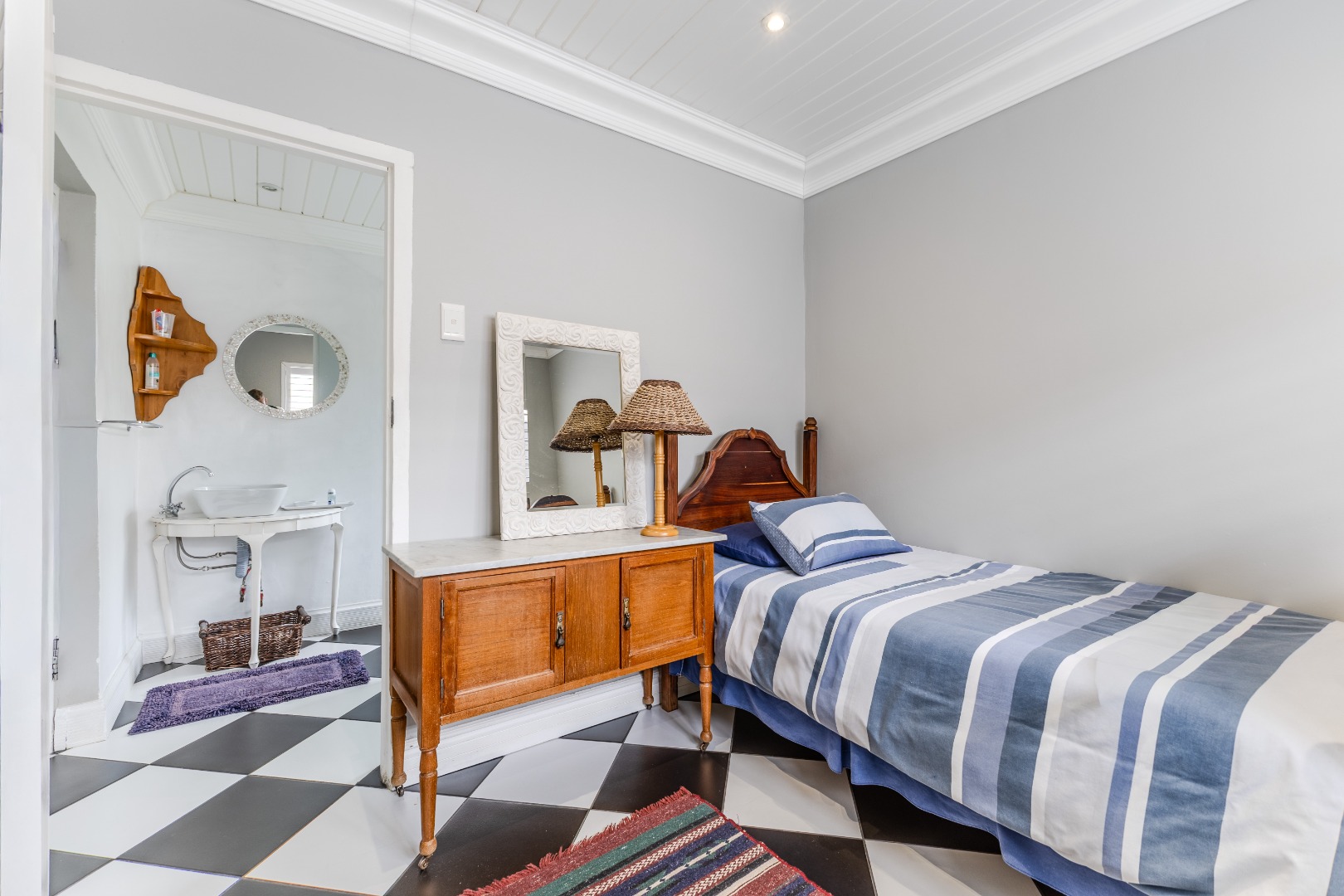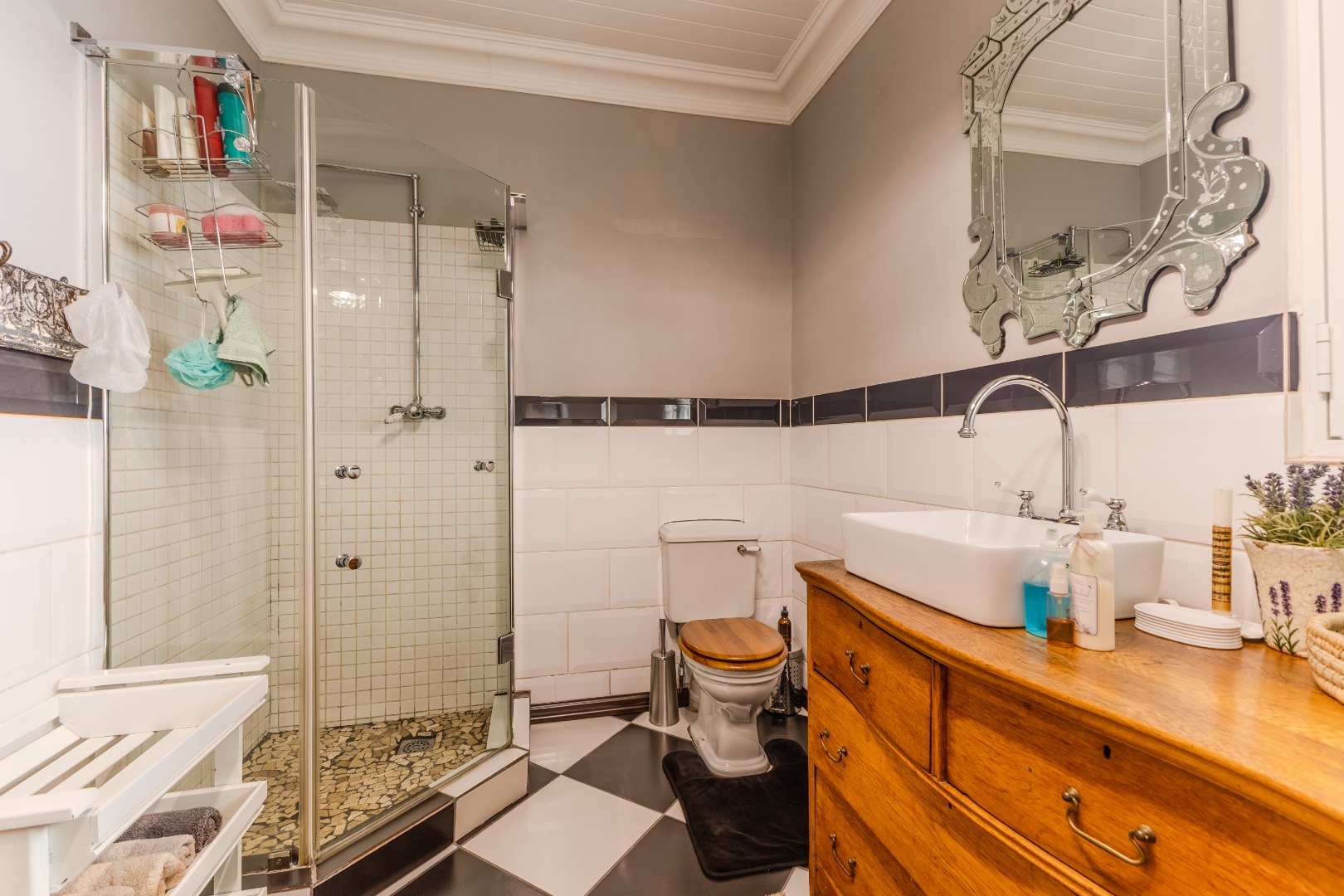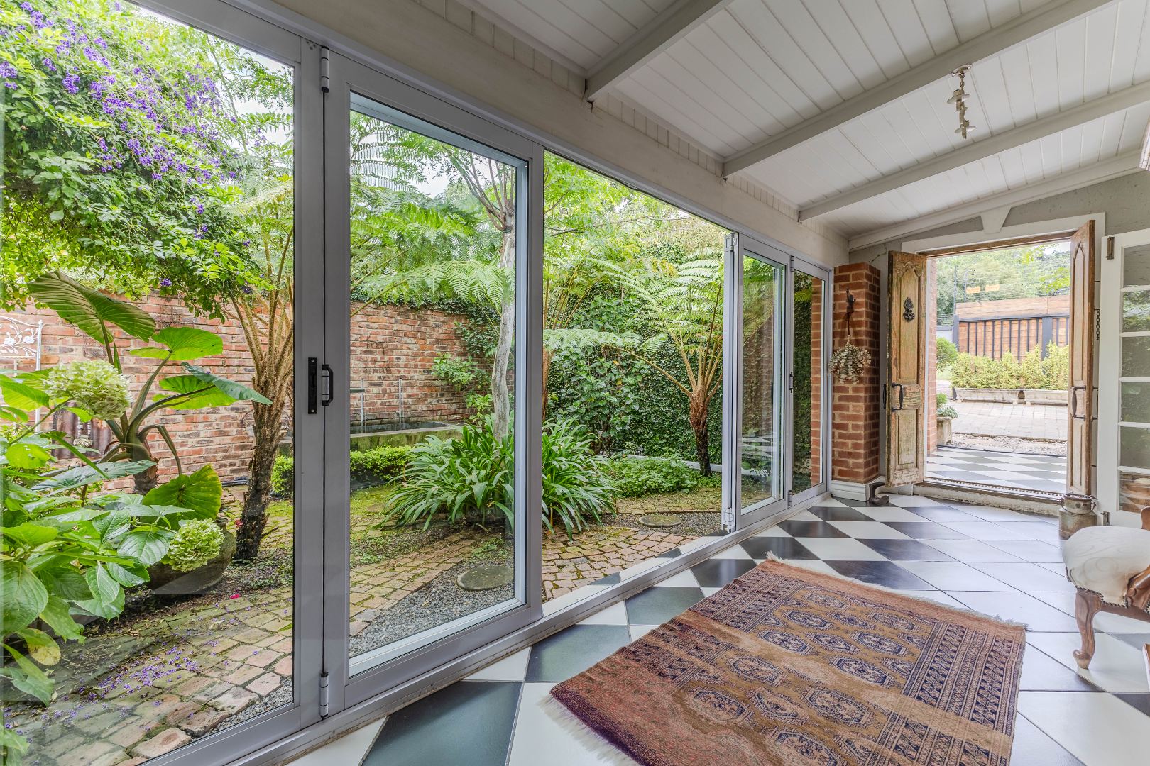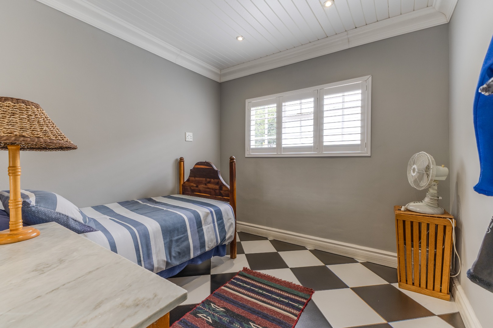 Nestled in a tranquil cul-de-sac within the sought-after Menlo Park suburb of Pretoria, this charming residence offers a blend of classic elegance and modern comfort. The property immediately captivates with its European-inspired facade, featuring white stucco, distinctive light blue shutters, and an elegant red brick entrance portico.