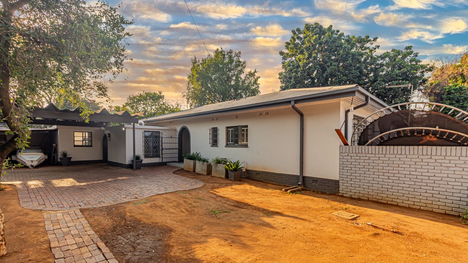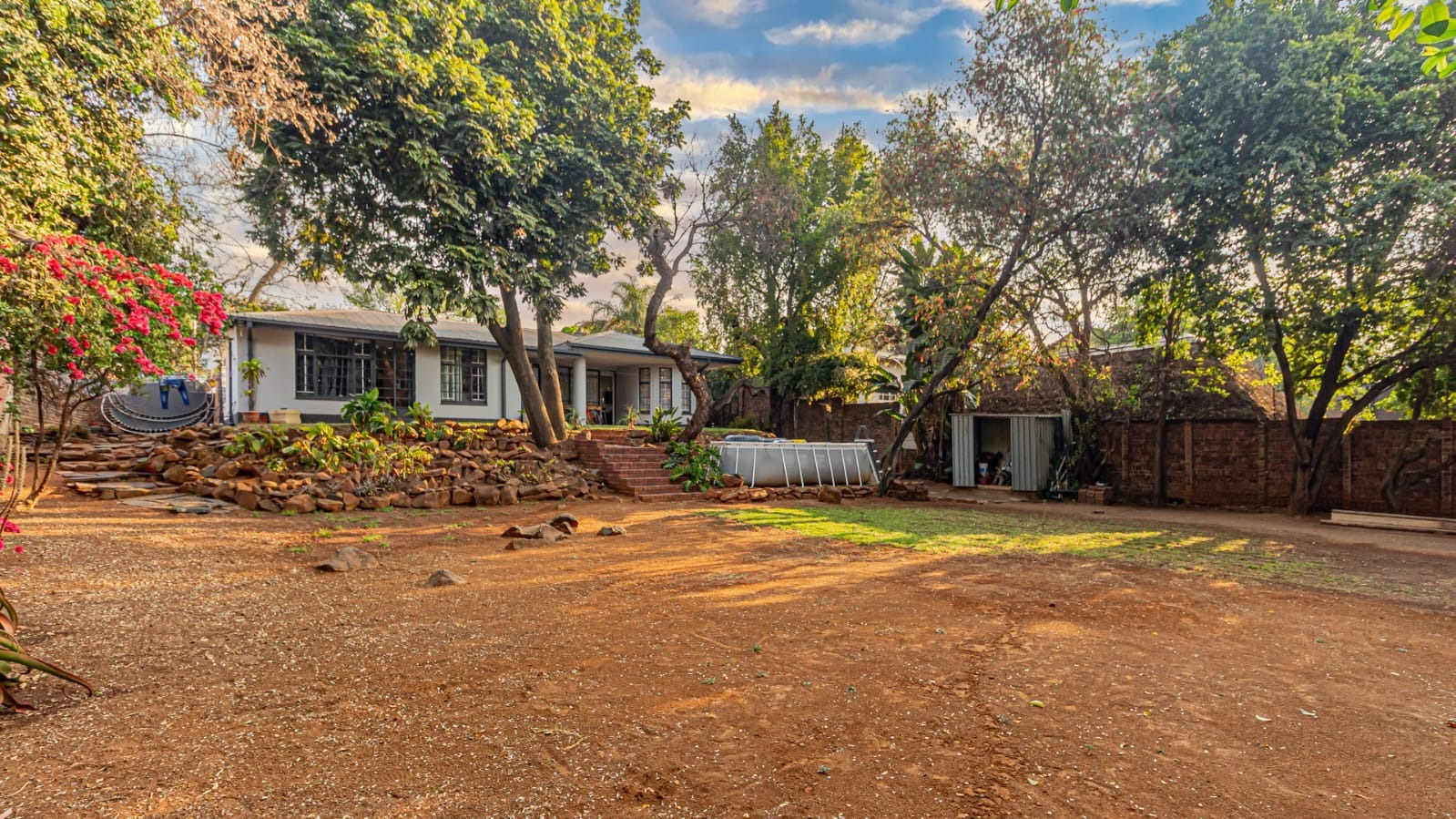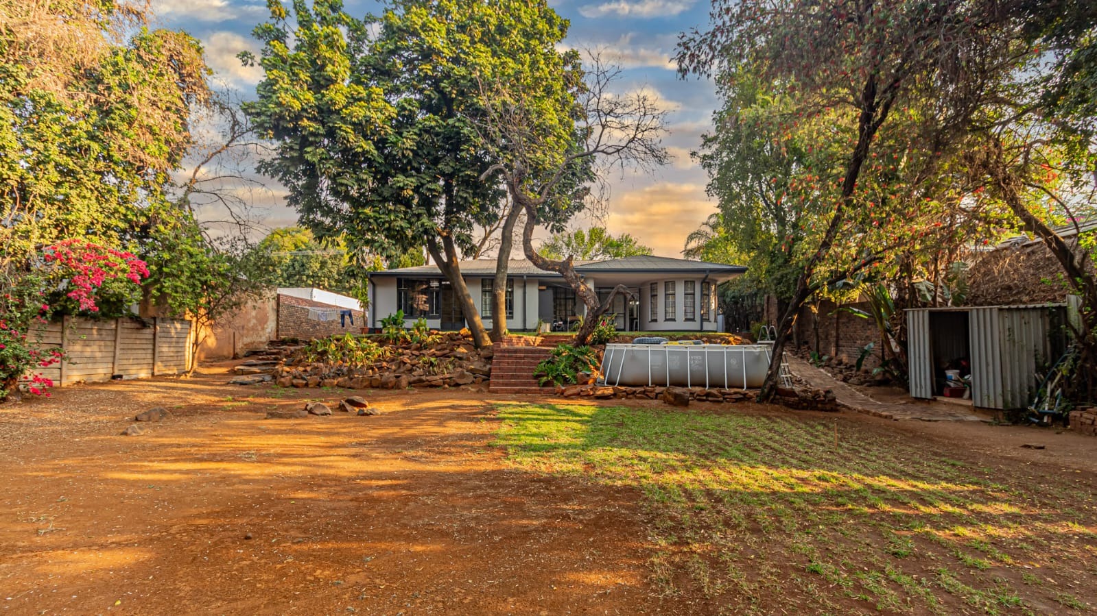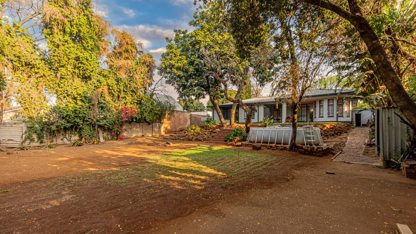A covered patio leads to a sprawling garden with mature trees. With over 1,100 sqm of land, the erf is a blank canvas with immense potential.