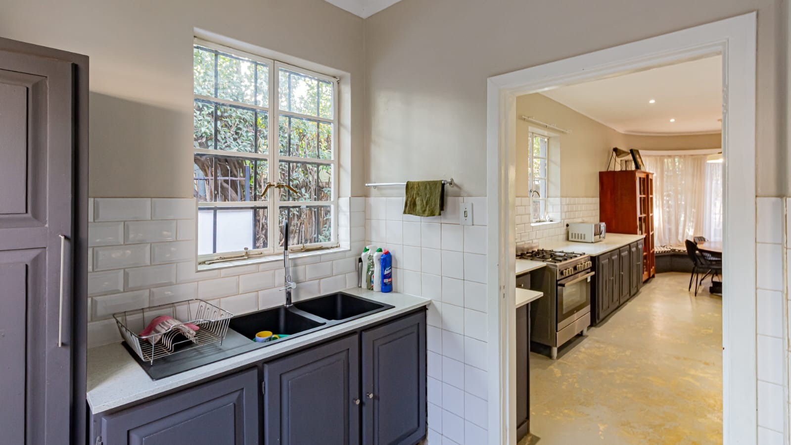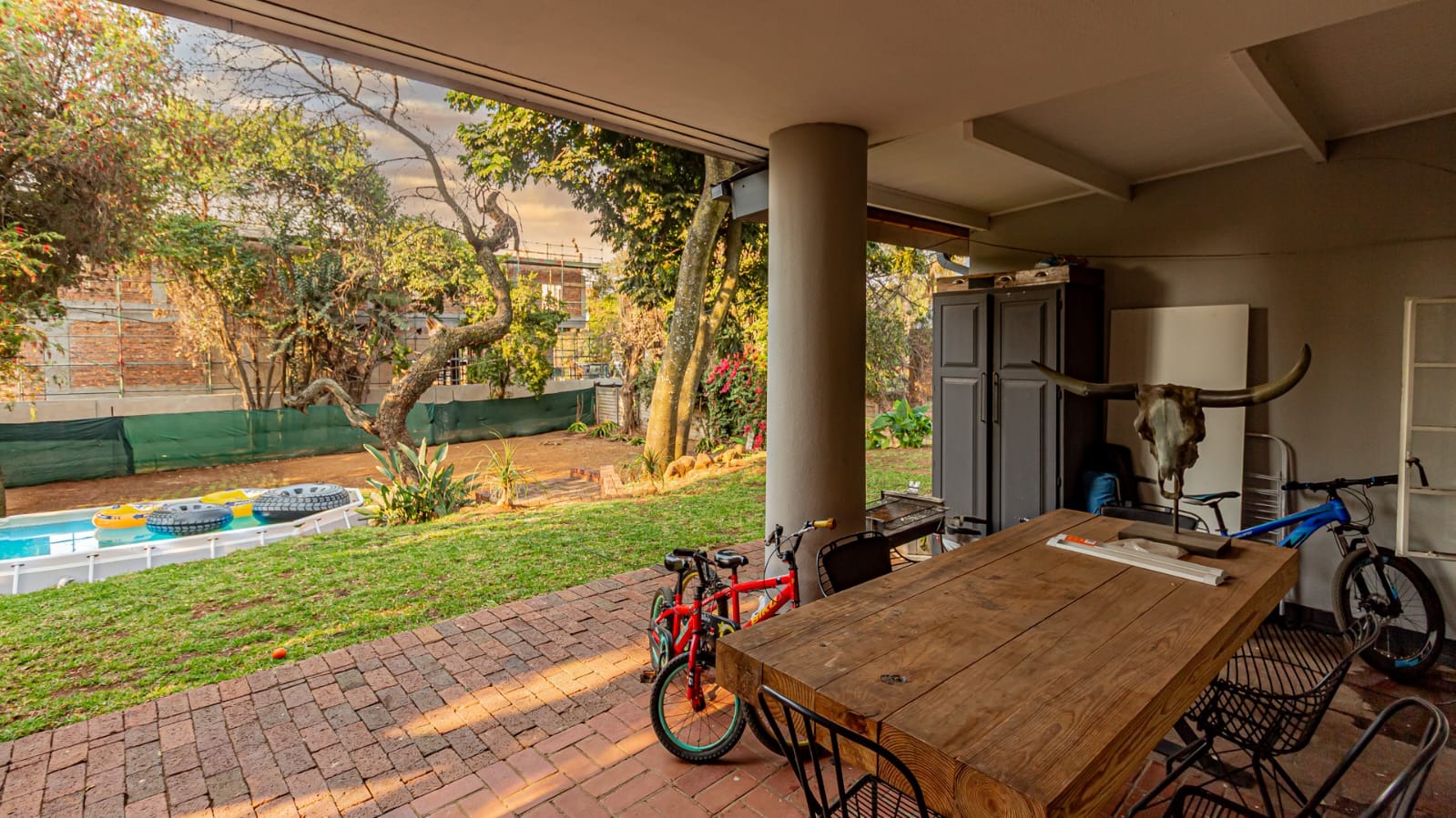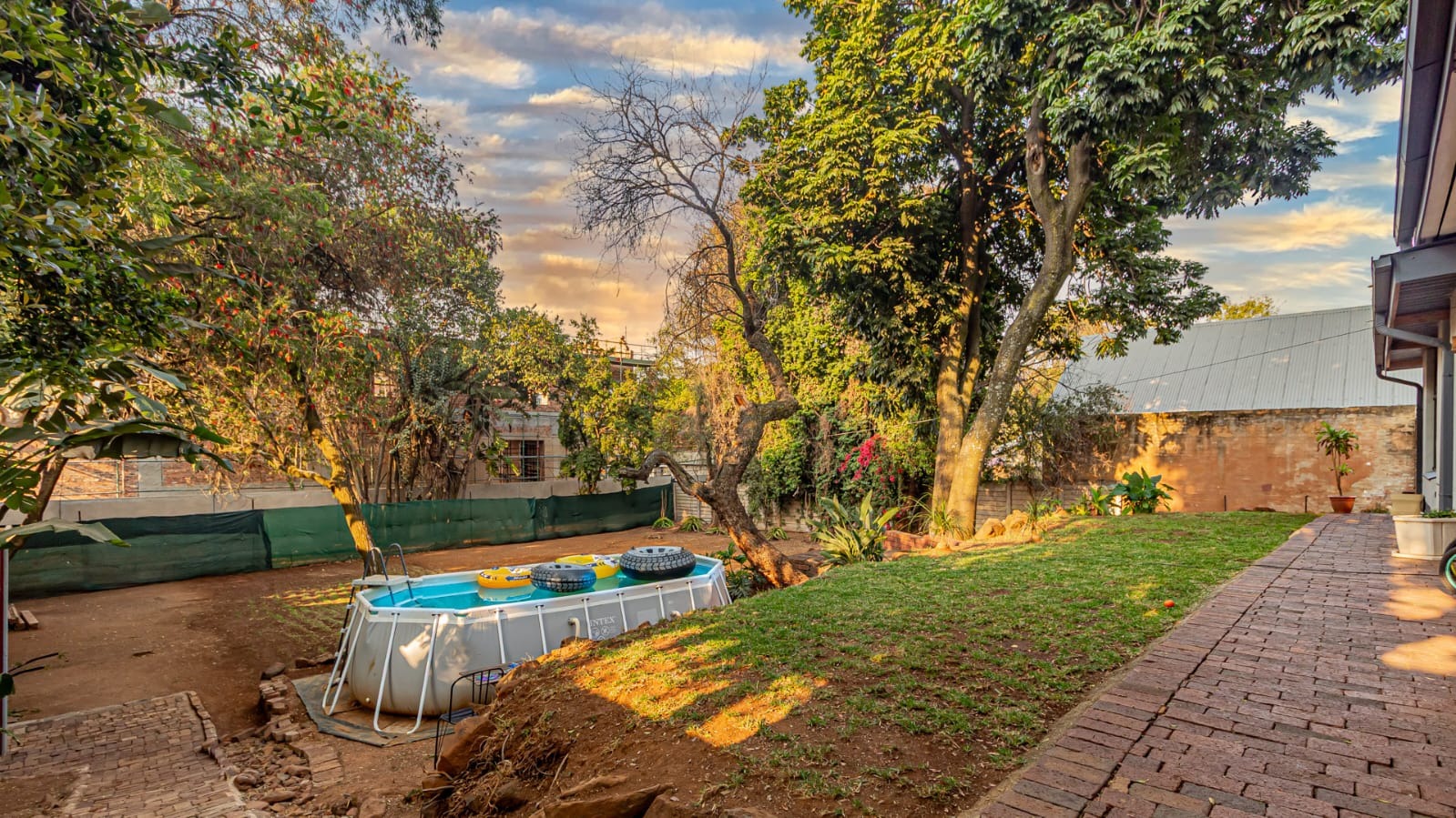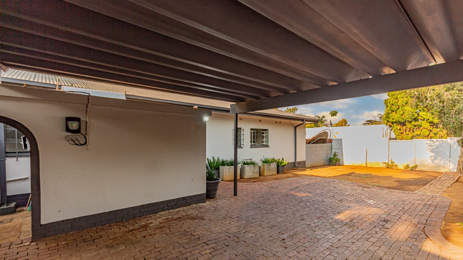 A covered patio leads to a sprawling garden with mature trees. With over 1,100 sqm of land, the erf is a blank canvas with immense potential.