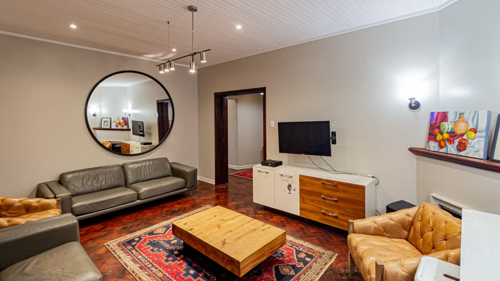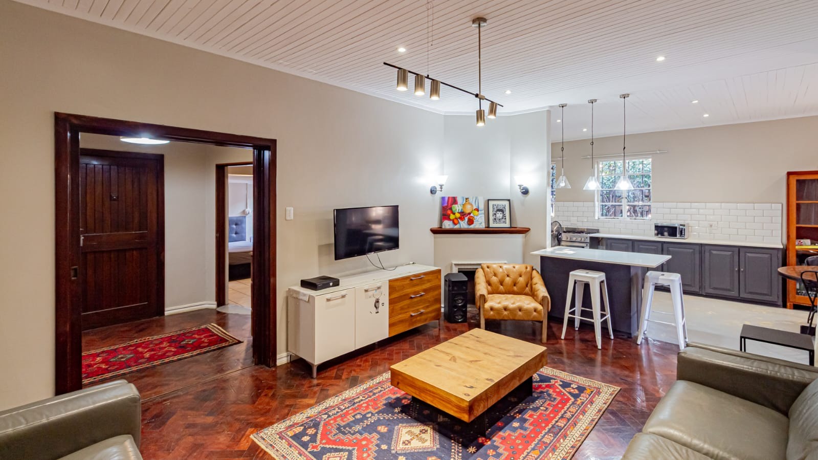 Enjoy an open-plan flow featuring contemporary lighting and a well-appointed kitchen designed for effortless entertaining.