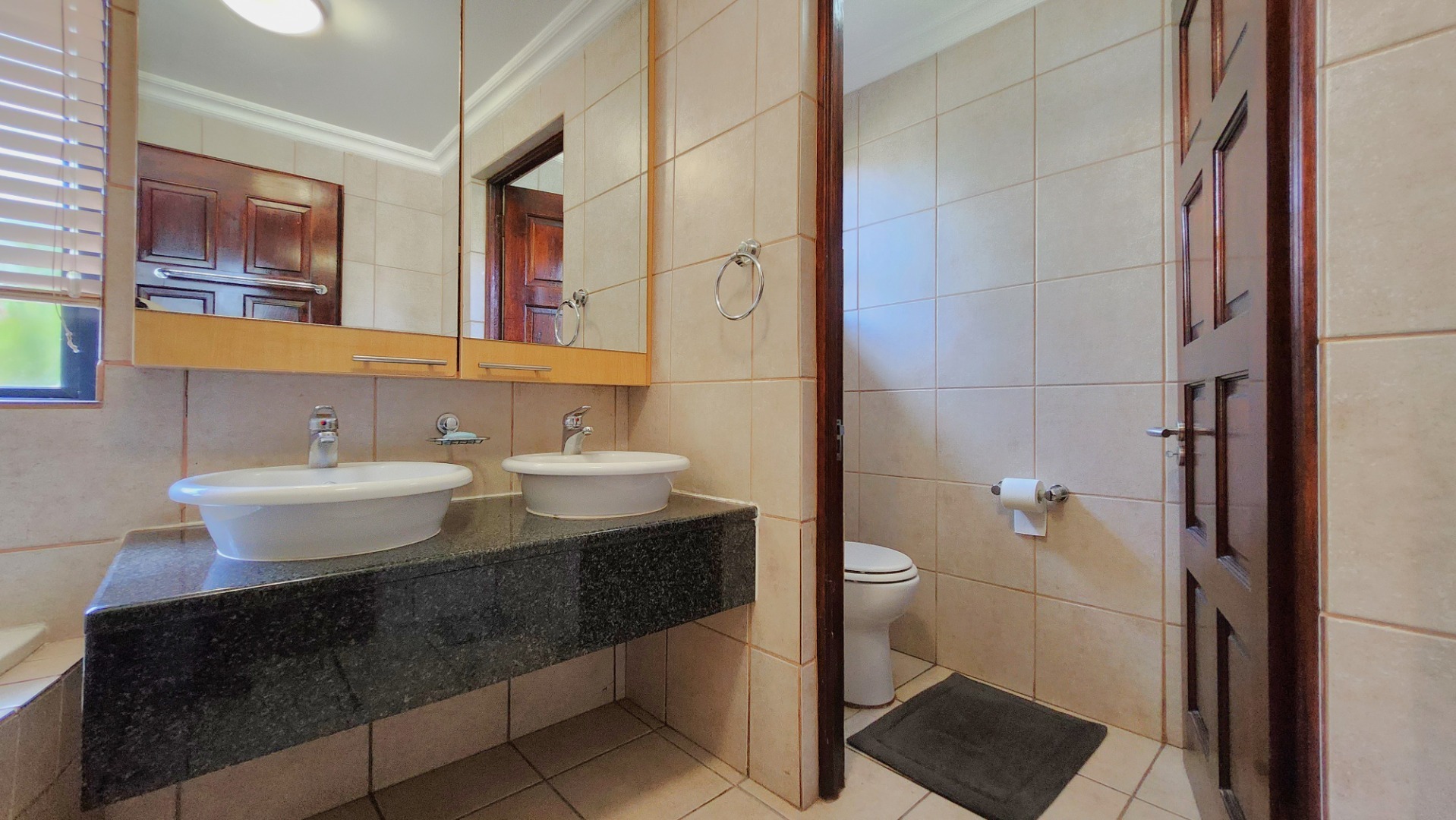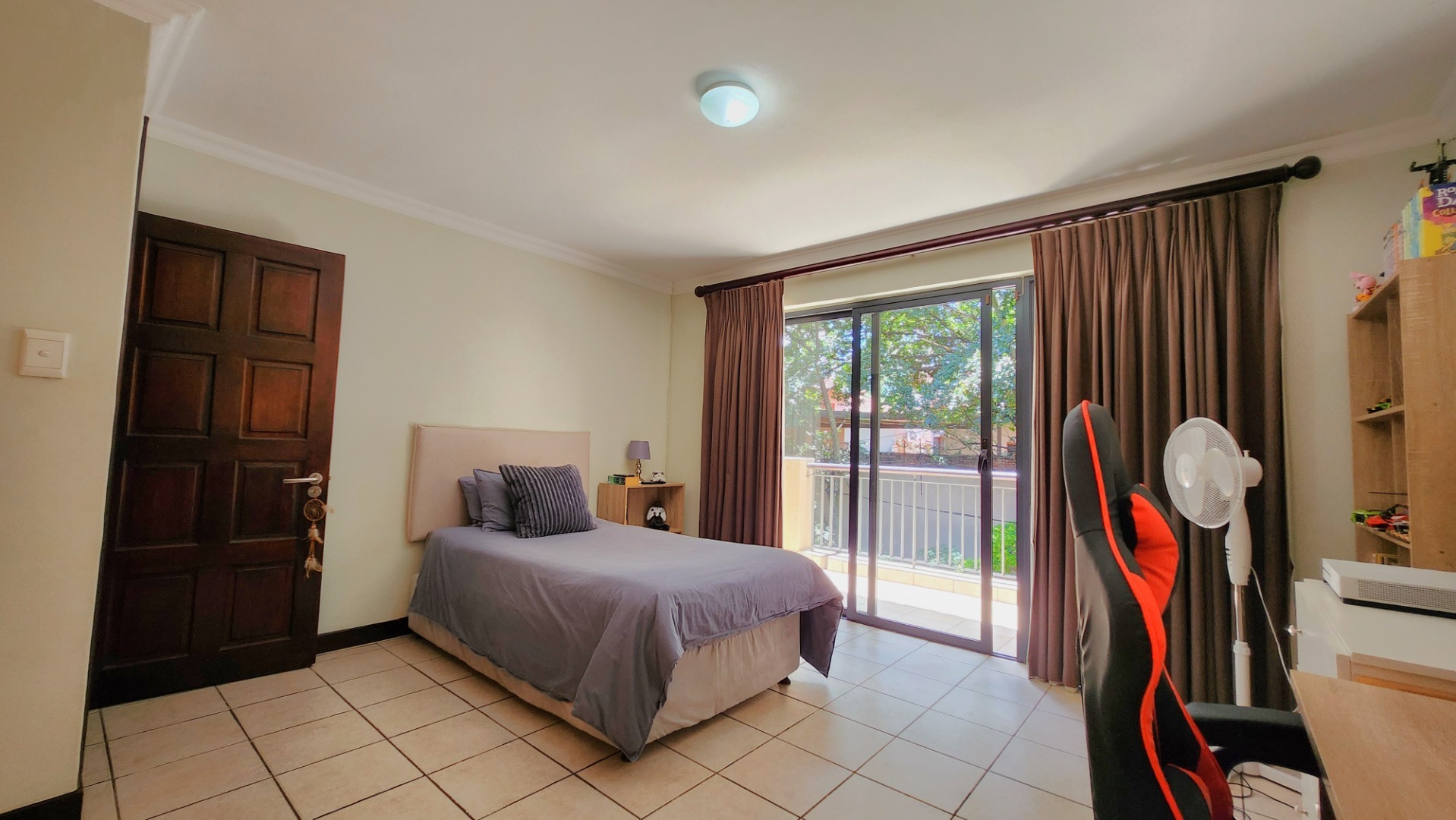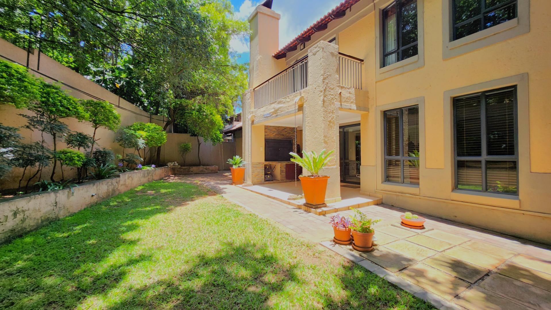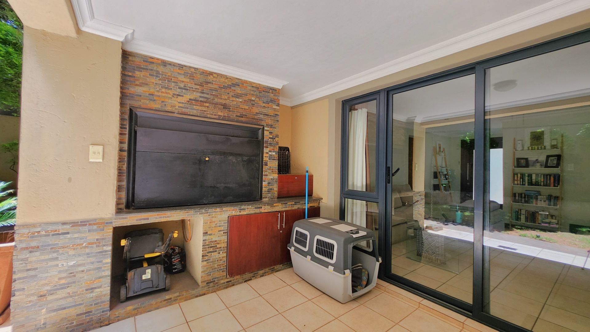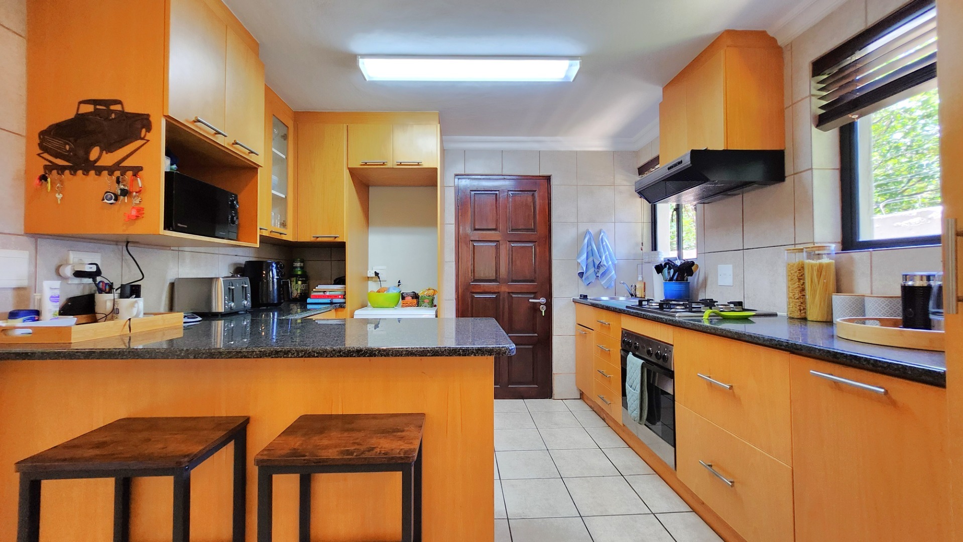 The home provides four comfortable bedrooms and three well-appointed bathrooms, catering to family living. Outdoor enjoyment is paramount, with a covered patio featuring a built-in braai, perfect for entertaining. A private balcony offers an additional retreat, while the well-maintained garden provides a serene backdrop. The property is pet-friendly, allowing for a complete family lifestyle.