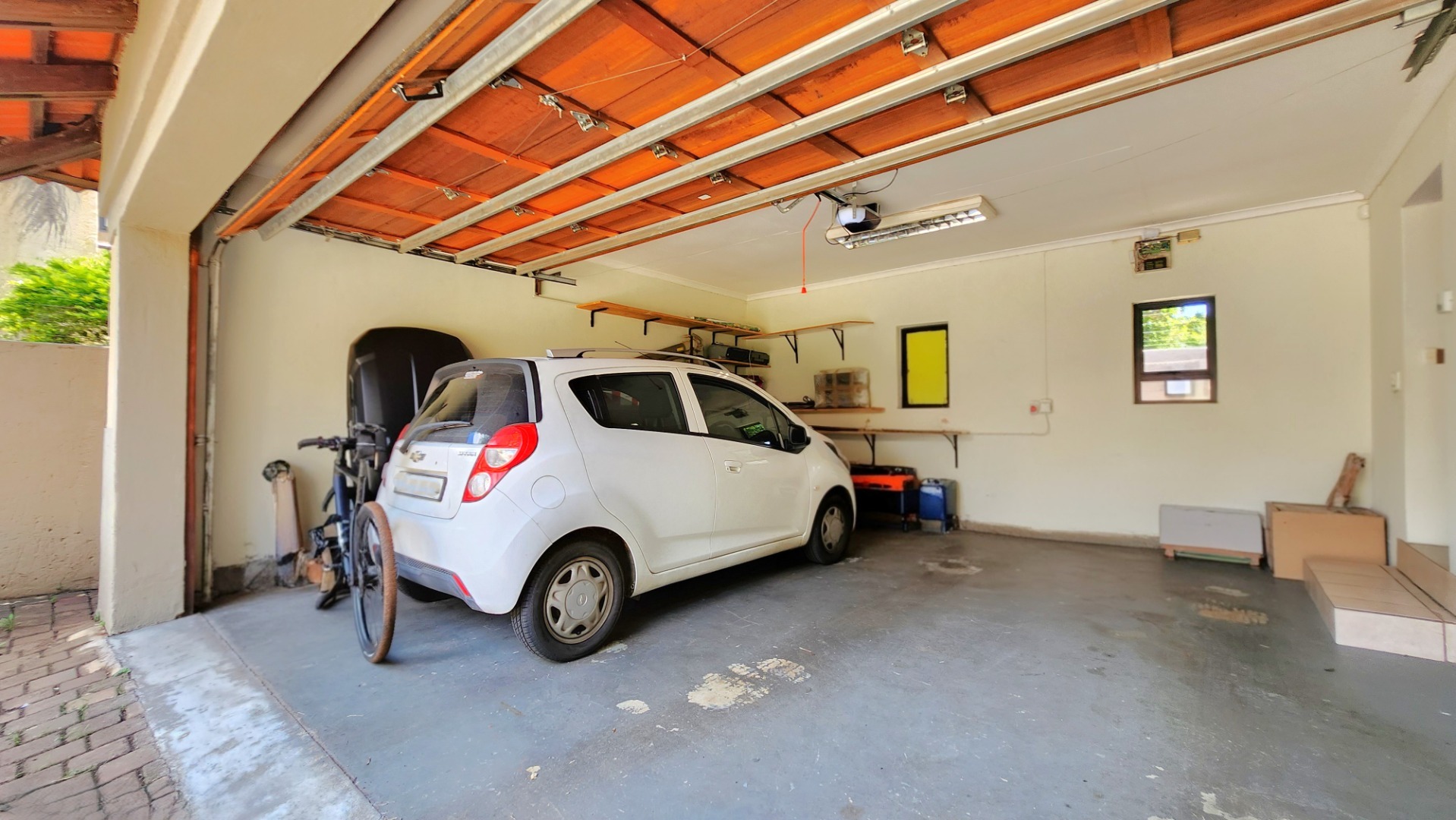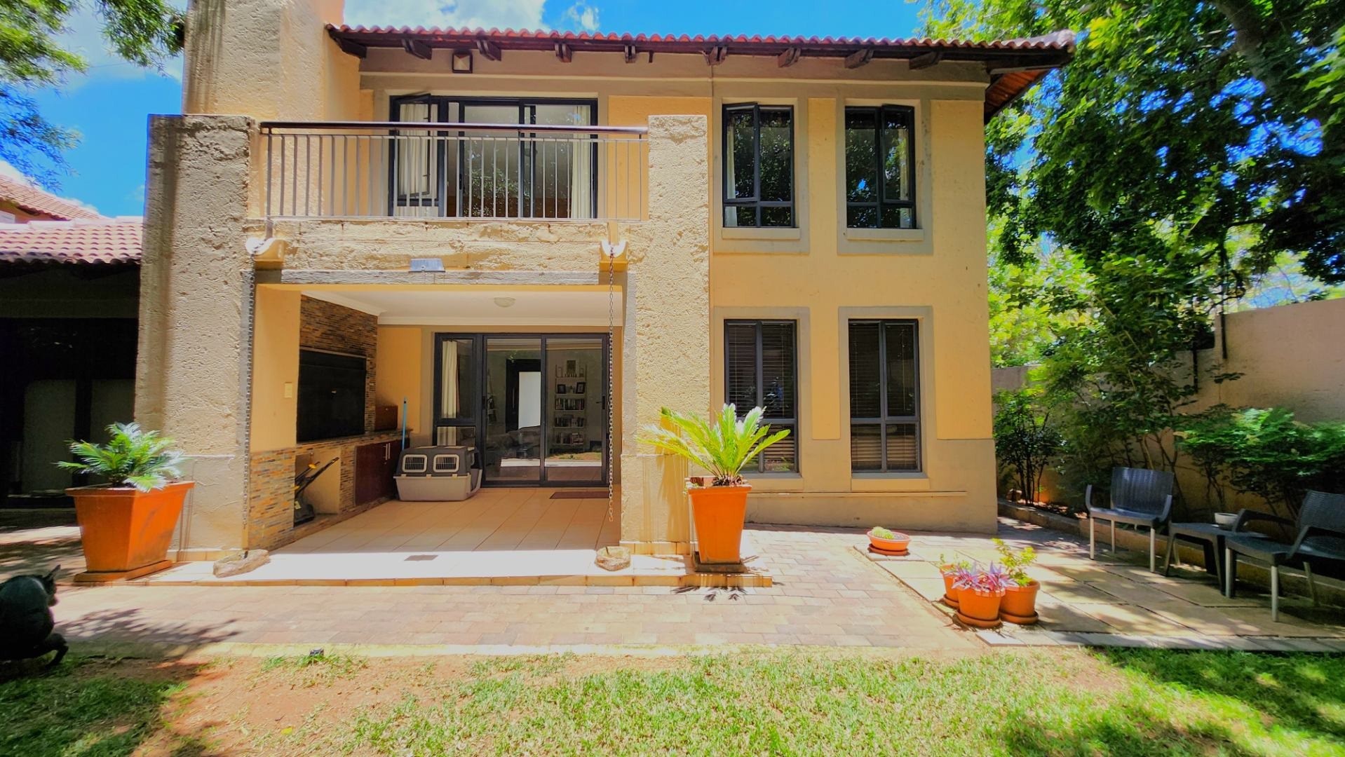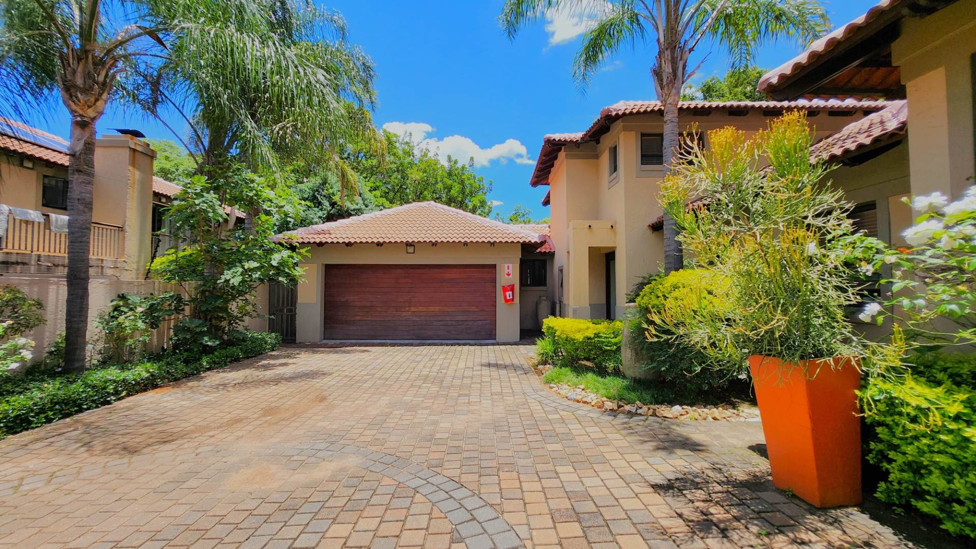 Discover this charming 4-bedroom, 3-bathroom residence nestled in the desirable suburban complex of Menlo Park, Pretoria. Boasting a distinctive Mediterranean/Tuscan architectural style, the property immediately impresses with its well-maintained exterior, classic tiled roofs, and lush, mature landscaping. A spacious paved driveway leads to a double garage featuring an appealing wooden door, enhancing the home's inviting appeal.