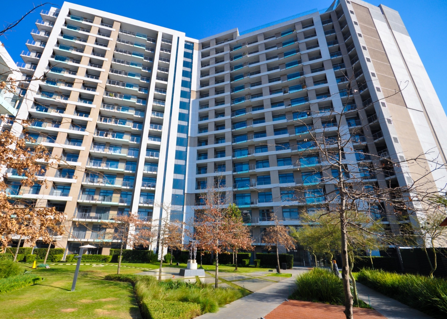 * Modern high-rise apartment with sleek architecture