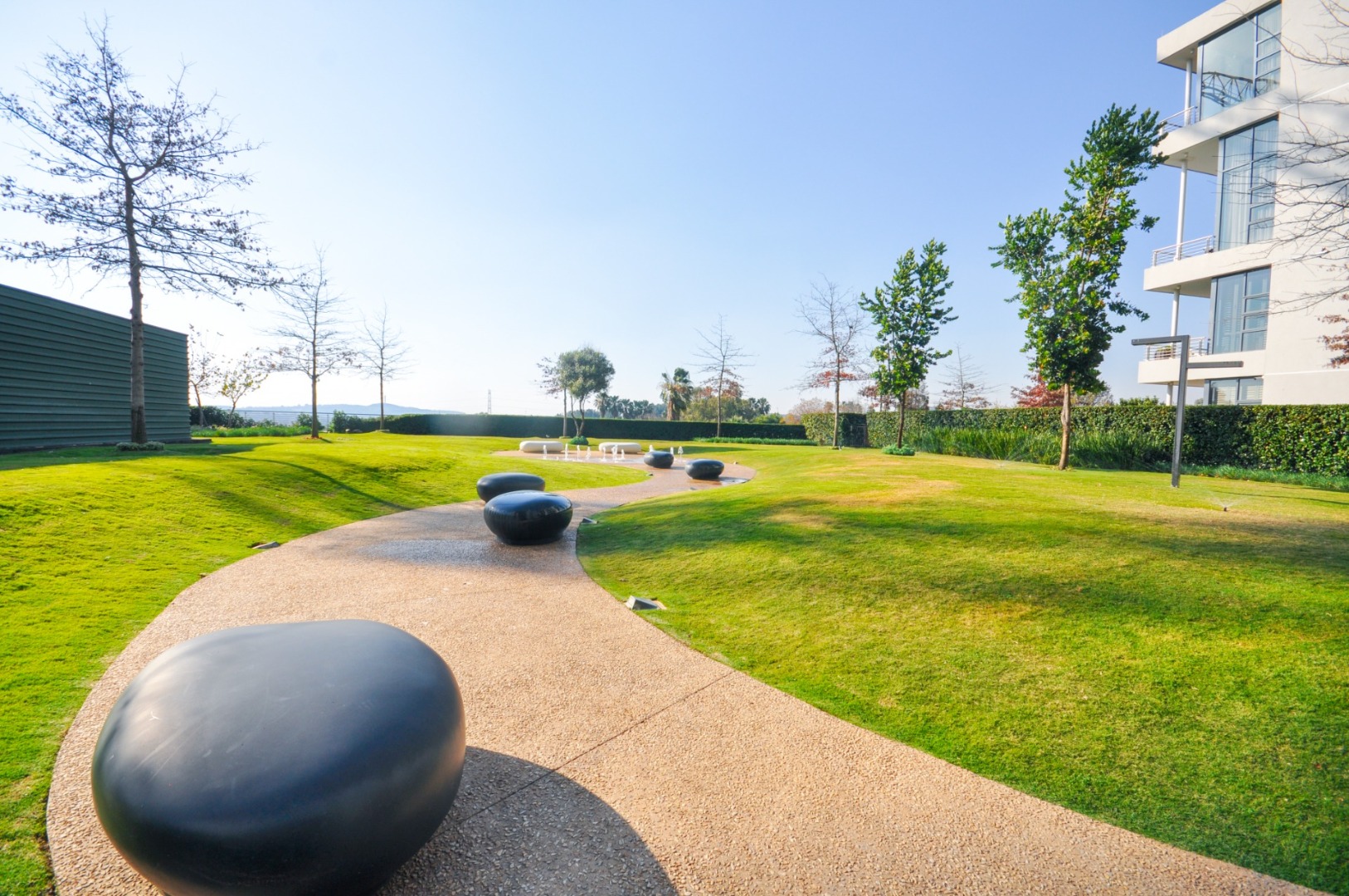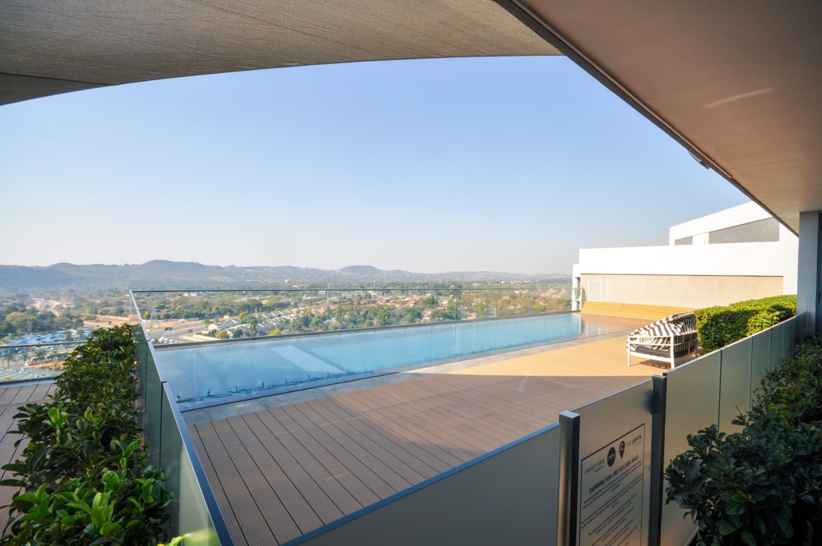 Discover sophisticated urban living in this modern 97 sqm apartment located in a sleek high-rise complex in Menlyn, Pretoria. The property boasts contemporary architecture with balconies and well-maintained landscaped gardens, offering an attractive kerb appeal in a vibrant metropolitan setting.