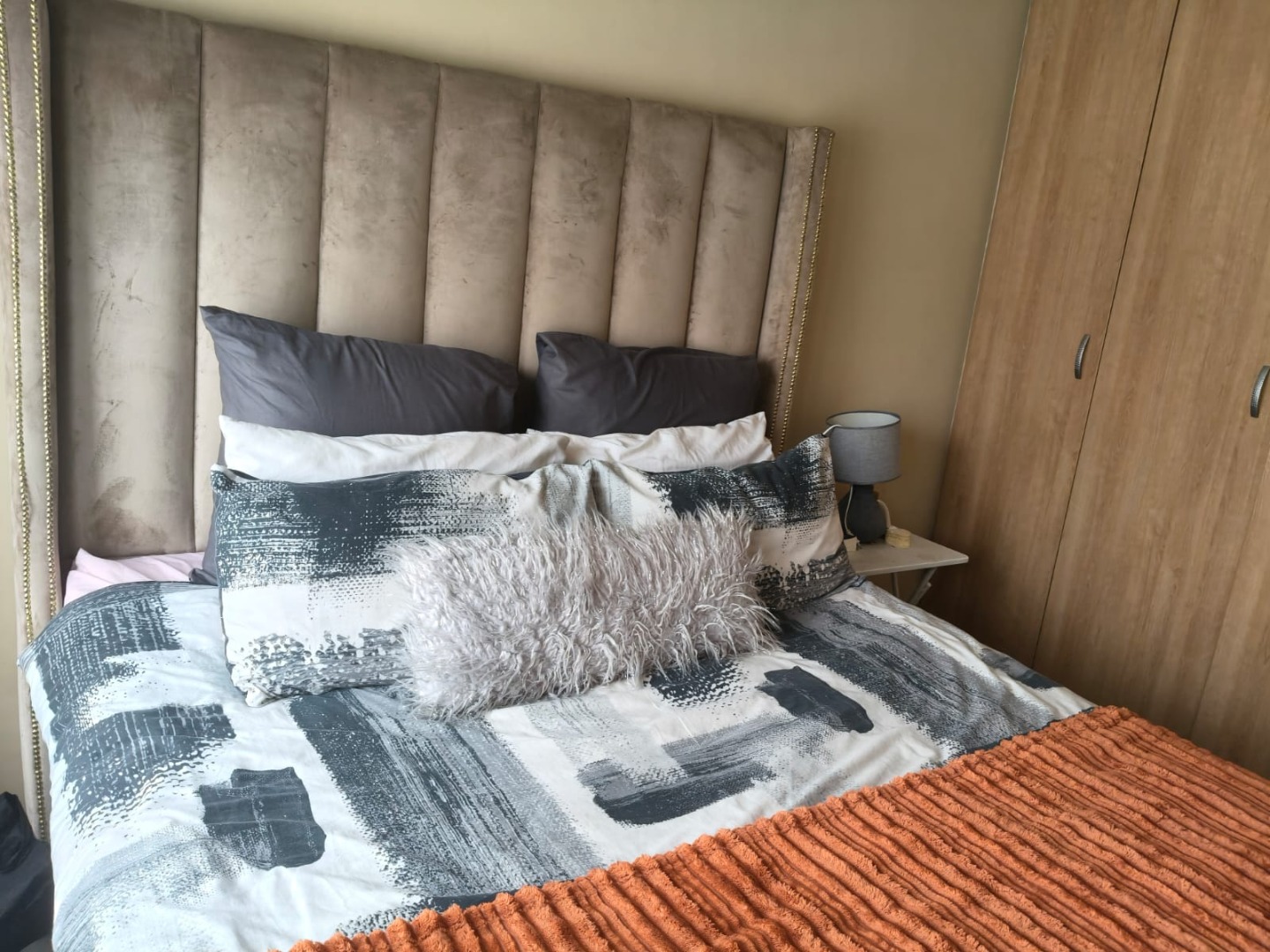 Discover comfortable living in this modern 79 sqm apartment, ideally situated within a secure complex in Montana Tuine, Pretoria. The interior boasts an inviting open-plan layout, seamlessly connecting the living area with a functional kitchen. Reflective tiled flooring flows throughout, enhancing the sense of space and light, complemented by ample natural illumination from large windows. The kitchen is equipped with practical wooden cabinetry, a dark countertop, and includes space for a washing machine, catering to everyday convenience. This apartment features two well-appointed bedrooms, each offering comfortable accommodation and practical built-in wardrobes for ample storage. The main bedroom includes a stylish upholstered headboard, adding a touch of elegance. The two bathrooms provide essential amenities; one is fitted with a shower stall, while the other offers a bathtub, both fully tiled for easy maintenance and durability. Step outside to a private balcony, offering pleasant views over communal green areas and providing a perfect spot for relaxation. Residents benefit from access to a refreshing communal swimming pool and a dedicated braai area, ideal for social gatherings. The complex also features a spacious communal green area with a children's playground, fostering a family-friendly environment. Security is paramount in this gated community, featuring a 24/7 manned security entrance with a guardhouse and controlled access, ensuring peace of mind for all residents. Located in the suburban area of Montana Tuine, Pretoria, this property offers a convenient lifestyle within a well-established neighbourhood. Key Features: * 2 Bedrooms, 2 Bathrooms * 79 sqm Floor Size * Open-plan living area * Modern tiled flooring * Private balcony * Communal swimming pool * Communal braai area * Children's playground * 24/7 Manned security * Built-in wardrobes