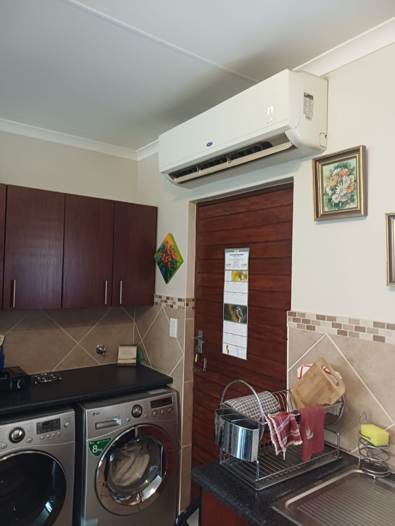Discover comfortable and secure living in this charming 2-bedroom, 2-bathroom home located within a well-maintained retirement village in Montana Tuine, Pretoria. This property offers a welcoming kerb appeal with its neat brick exterior, tiled roof, and meticulously kept garden featuring decorative plants and paved pathways, creating an inviting first impression. The interior boasts an open-plan layout, seamlessly connecting the living and dining areas, all adorned with practical tiled flooring. The functional kitchen, equipped with modern appliances and ample cabinetry, ensures convenience. An air conditioning unit provides comfort throughout the year, enhancing the living experience. This home features two well-proportioned bedrooms, with the main bedroom benefiting from an en-suite bathroom, offering privacy and ease. The second bathroom serves guests and the additional bedroom, ensuring ample facilities for residents. Step outside to a delightful covered patio, perfect for relaxation or entertaining, overlooking a private garden space. Parking is well-catered for with two garages and two additional parking spaces, including a carport. The property is wheelchair-friendly, ensuring accessibility for all. Security is paramount, with features including a security gate, electric fencing, an access gate, and 24-hour security within the complex, complemented by burglar bars and an intercom system. Sustainability is addressed with a solar geyser and water tanks, while fibre connectivity ensures modern communication needs are met. Montana Tuine offers a peaceful suburban environment with convenient access to local amenities. Key Features: * 2 Bedrooms, 2 Bathrooms (1 en-suite) * Open-plan living area * Covered patio and private garden * 2 Garages and 2 parking spaces * Wheelchair friendly * Air conditioning * Fibre connectivity * Solar geyser and water tanks * Enhanced security features (24-hour security, electric fence, security gates)