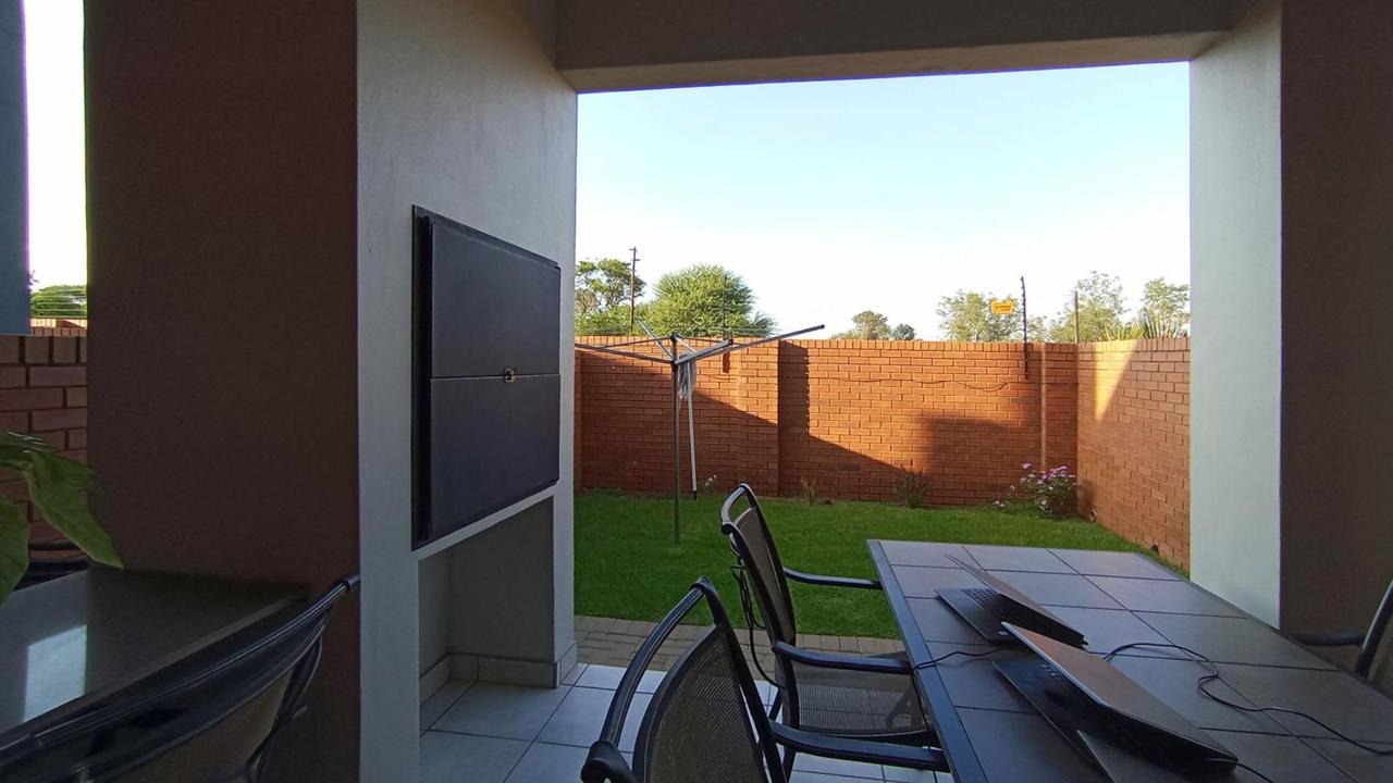 Discover this modern 2-bedroom townhouse, offering a comfortable and contemporary lifestyle in the sought-after Montana suburb of Pretoria. The property presents an attractive kerb appeal with its modern architectural design, featuring a blend of brick and painted accents, complemented by ample parking including a single garage and an additional parking space. The exterior also boasts paved walkways and a small private lawn, creating a welcoming first impression. Step inside to an inviting open-plan living area, seamlessly connecting the modern kitchen and lounge. The kitchen is well-appointed with sleek cabinetry, dark countertops, and a built-in hob, providing a functional space for culinary pursuits. Large sliding glass doors flood the living area with natural light and offer direct access to the outdoor spaces, enhancing the indoor-outdoor flow. This residence features two comfortable bedrooms and two bathrooms, ensuring privacy and convenience for residents. Additionally, a guest toilet is available for visitors. The layout is designed for practical living, with a dedicated lounge area that can also serve as a family TV room. Outdoor living is a highlight, with a private balcony offering expansive views of the surrounding residential area and sky. The ground floor features a covered patio equipped with a built-in braai, perfect for entertaining. This space overlooks a private, fenced garden area, providing a tranquil retreat. Security is enhanced with electric fencing and an access gate, offering peace of mind. Montana is a vibrant area known for its amenities and accessibility, making it an ideal location for convenient living. This complex offers a secure and well-maintained environment. Key Features: * 2 Bedrooms, 2 Bathrooms * 1 Garage, 1 Parking * 127 sqm Floor Size * Open-plan Kitchen and Lounge * Private Balcony * Covered Patio with Built-in Braai * Private Garden * Electric Fencing and Access Gate * Guest Toilet