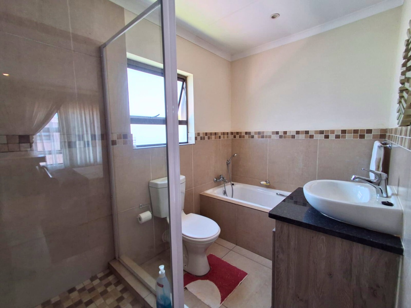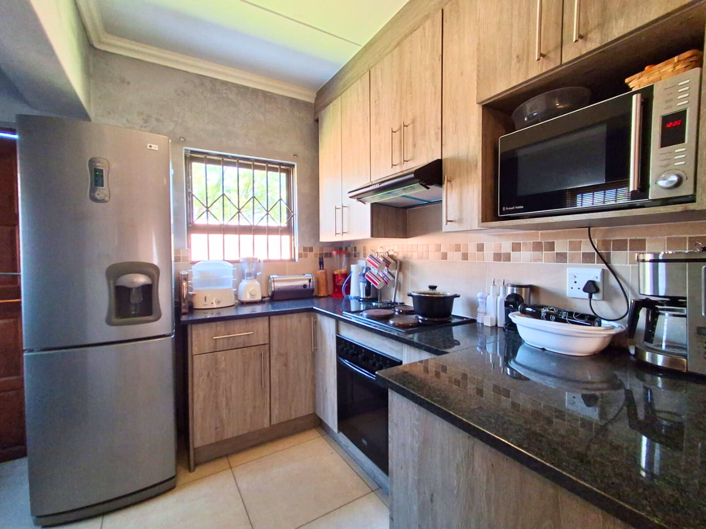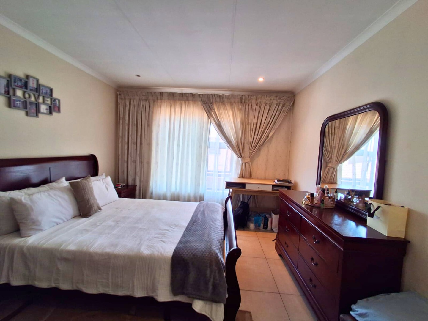 Come on in and discover this lovely 3-bedroom, 2.5-bathroom townhouse nestled in a secure estate in Montana, Pretoria. Right from the get-go, you'll appreciate the modern two-story design and the convenience of a double garage, making coming and going a breeze. The paved driveway and neat exterior give it a welcoming feel, and with electric fencing and a security gate, you can relax knowing your home is safe and sound. Step inside and you'll find a super comfy open-plan living area, perfect for chilling out or entertaining friends. The lounge, with its large blue sectional sofa and stylish textured accent wall, flows seamlessly into the dining space, featuring a chic glass-top table. The modern kitchen is a real highlight, boasting wooden-look cabinetry, dark granite countertops, and sleek stainless steel appliances – everything you need to whip up a delicious meal. Plus, there's a handy guest toilet downstairs. Upstairs, you'll find three cozy bedrooms, including a main bedroom with its own ensuite bathroom for a bit of extra privacy. The other bedrooms share a well-appointed full bathroom, ensuring everyone has their space. Tiled flooring throughout keeps things neat and easy to maintain, and the crown molding adds a nice touch of finish. Outside, you've got a private garden area, perfect for enjoying the South African sunshine, and yes, your furry friends are welcome here too! With 135 sqm of floor space and a 177 sqm erf, there's plenty of room to live comfortably. Montana is a popular suburb in Pretoria, known for its family-friendly atmosphere and convenient access to amenities. You'll find schools, shopping centres, and medical facilities all within easy reach, making it a great spot to call home. Key Features: * 3 Bedrooms, 2.5 Bathrooms * Double Garage * Open-Plan Living Area * Modern Kitchen with Granite Countertops * Secure Estate Living * Private Garden (Pets Allowed) * Paved Driveway * Electric Fencing & Security Gate * 135 sqm Floor Size
