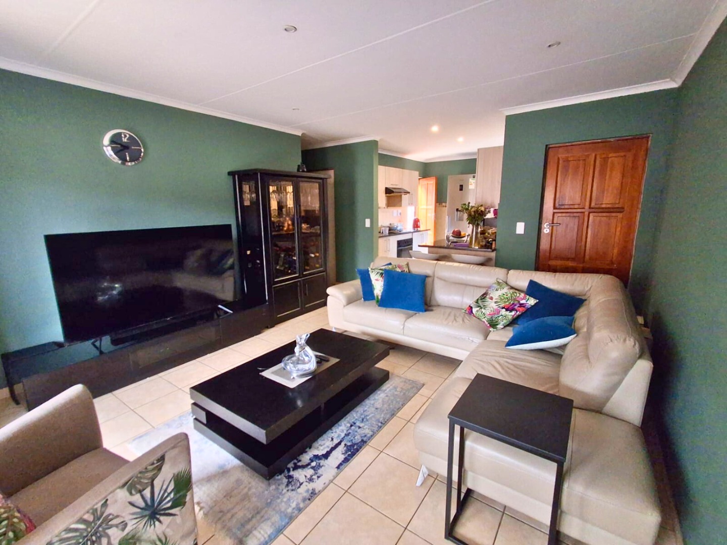The contemporary kitchen features ample cupboard space and quality finishes, seamlessly flowing into a bright and inviting open-plan lounge area — perfect for comfortable family living and effortless entertaining.