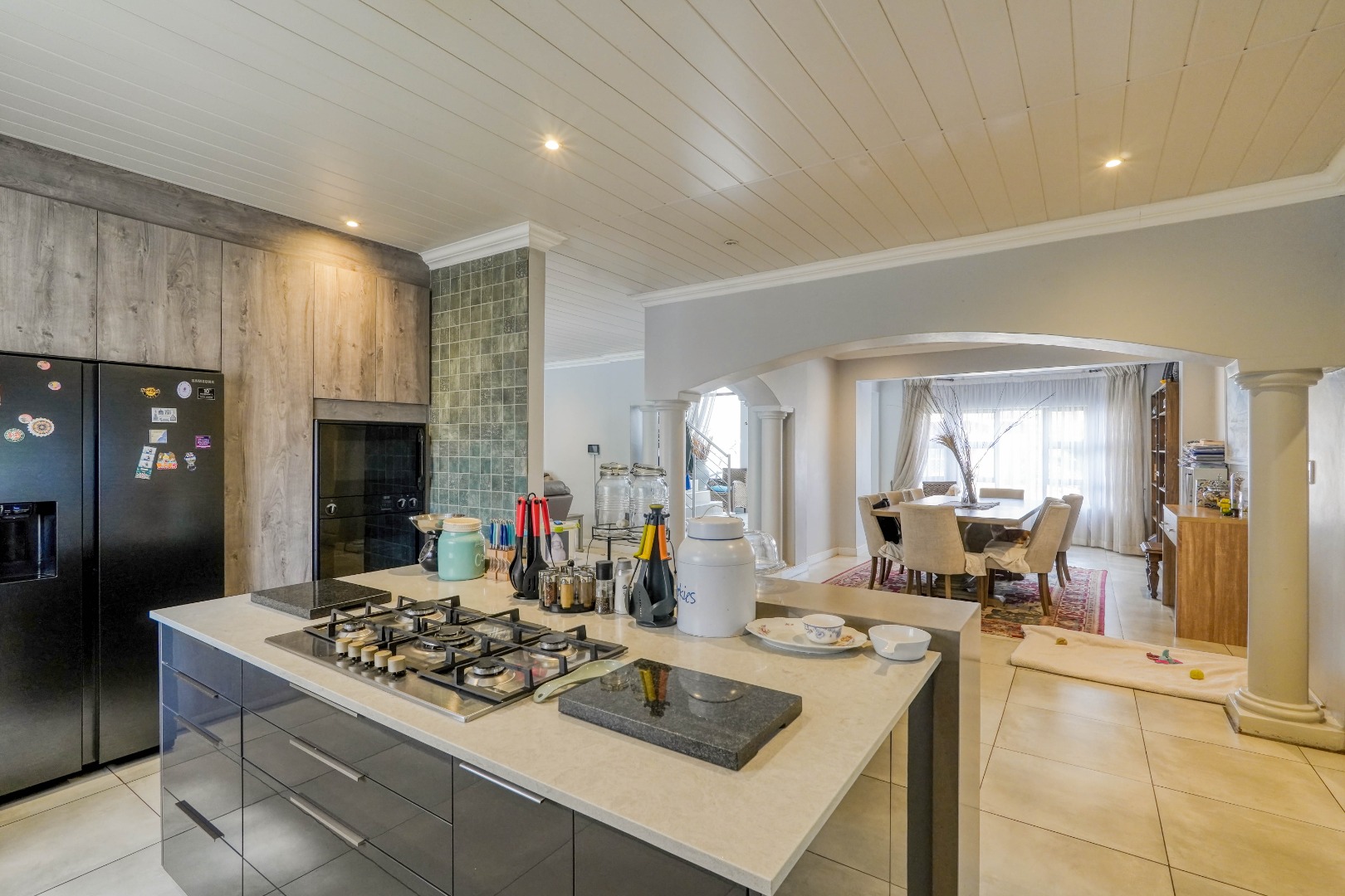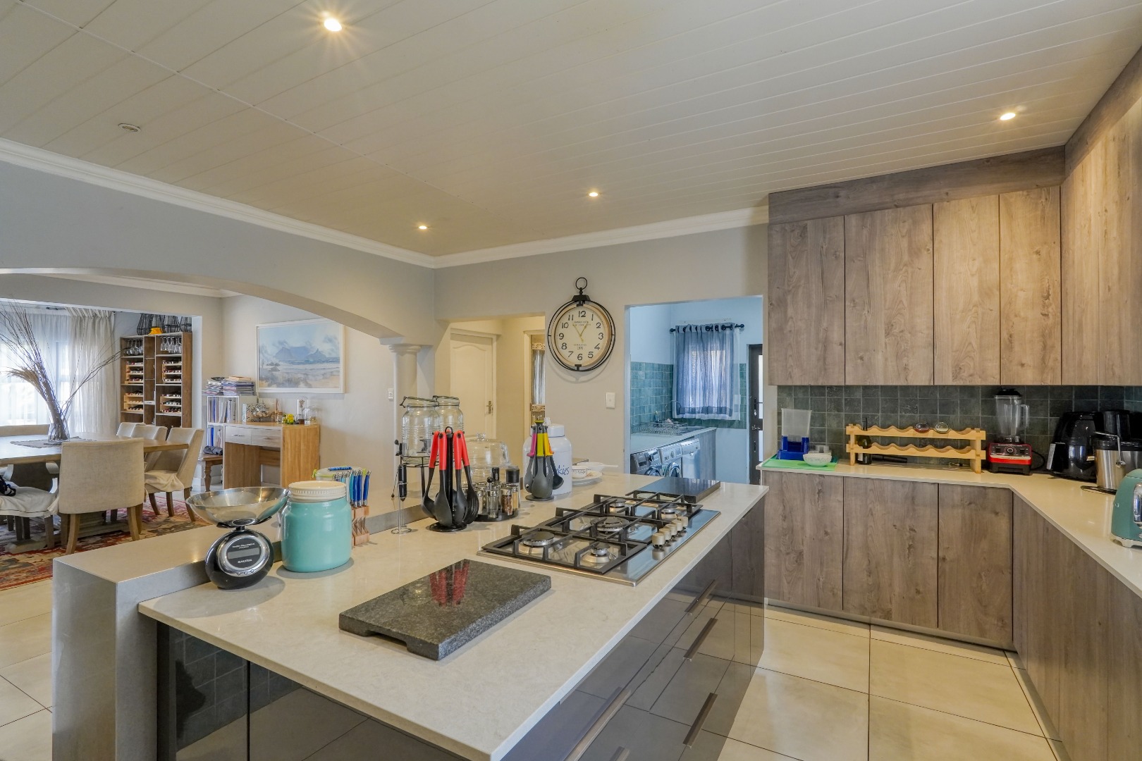 The kitchen is well positioned and finished with granite countertops, a gas hob, and eye level ovens. A separate scullery, pantry, and laundry room support the kitchen, keeping the main space functional and well organised.