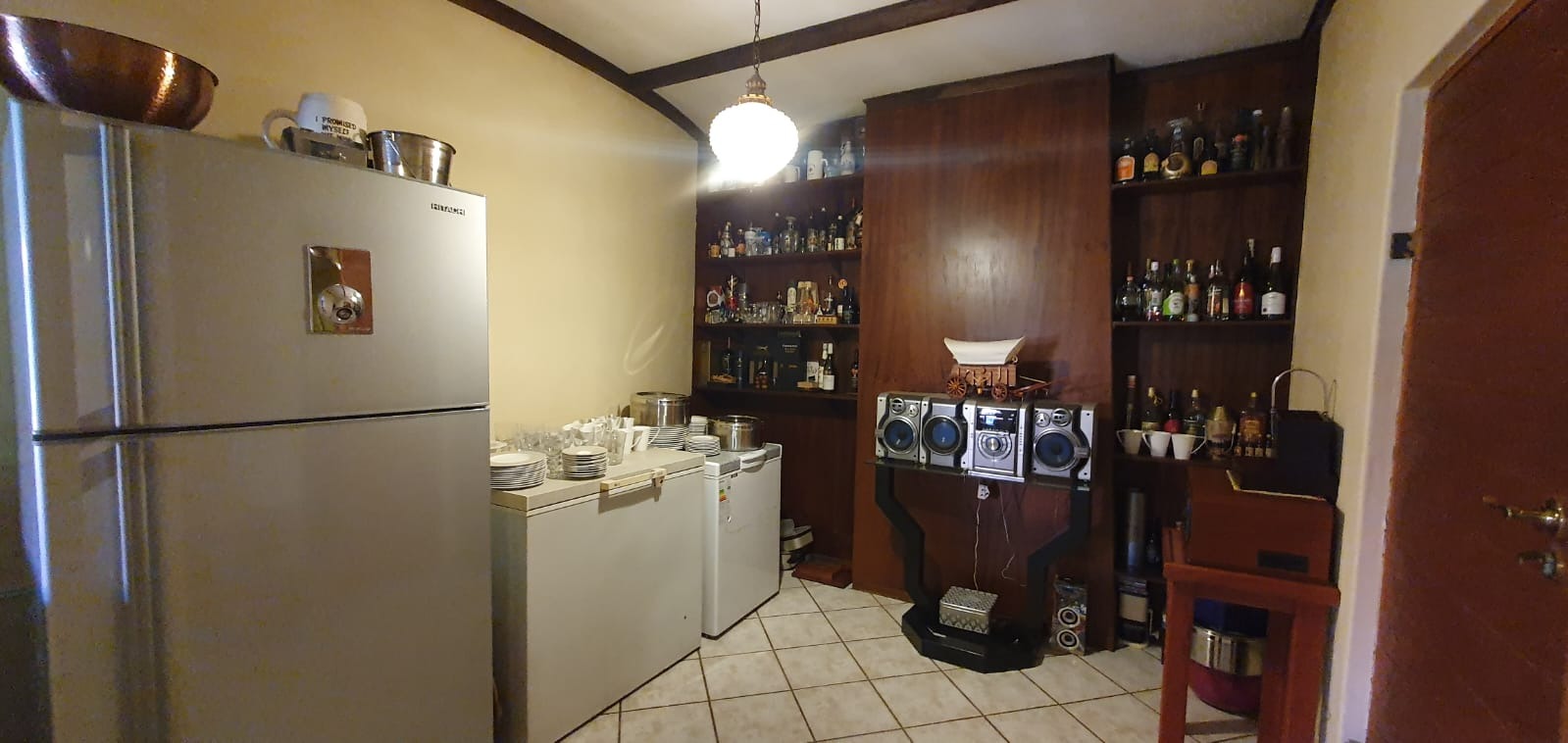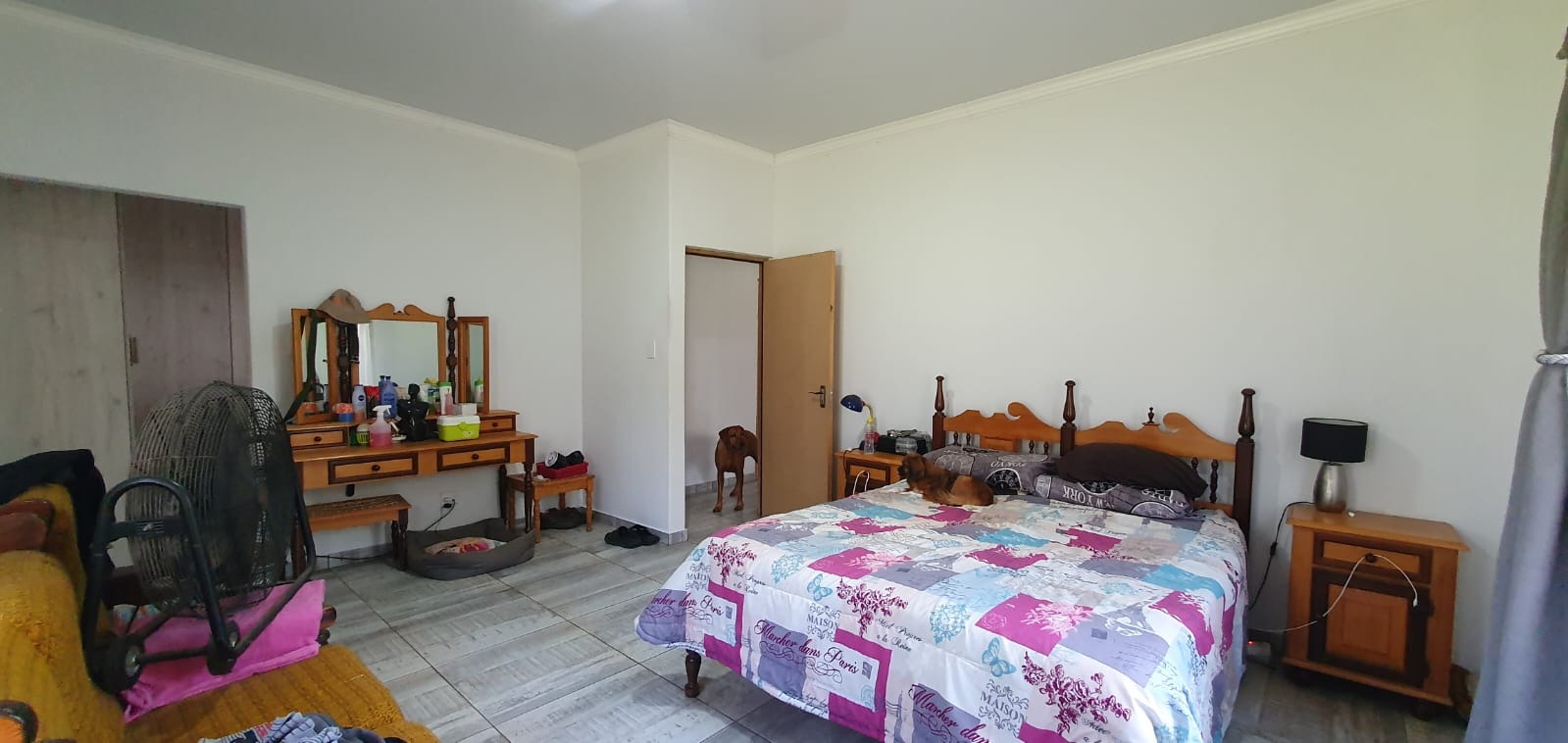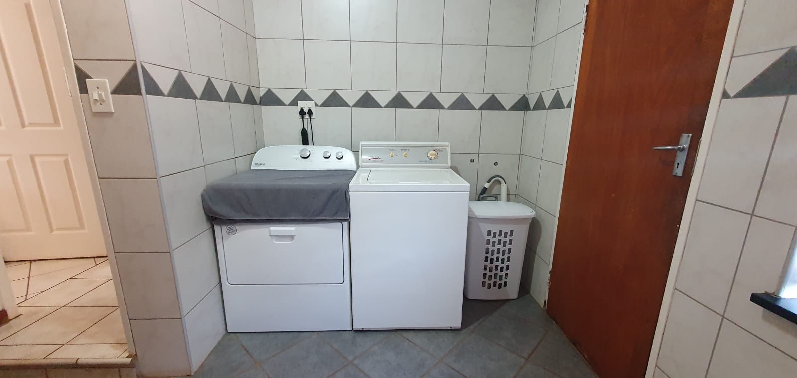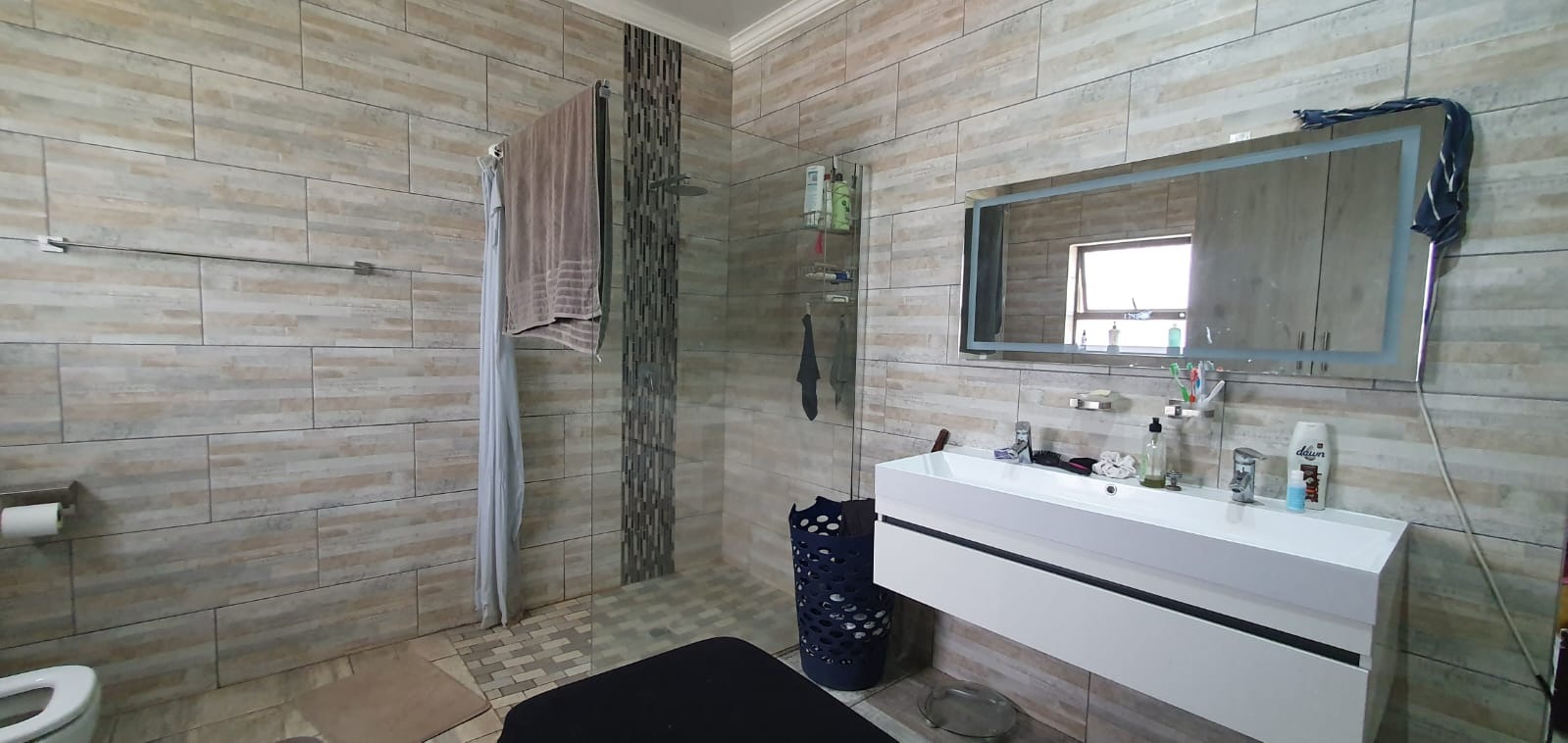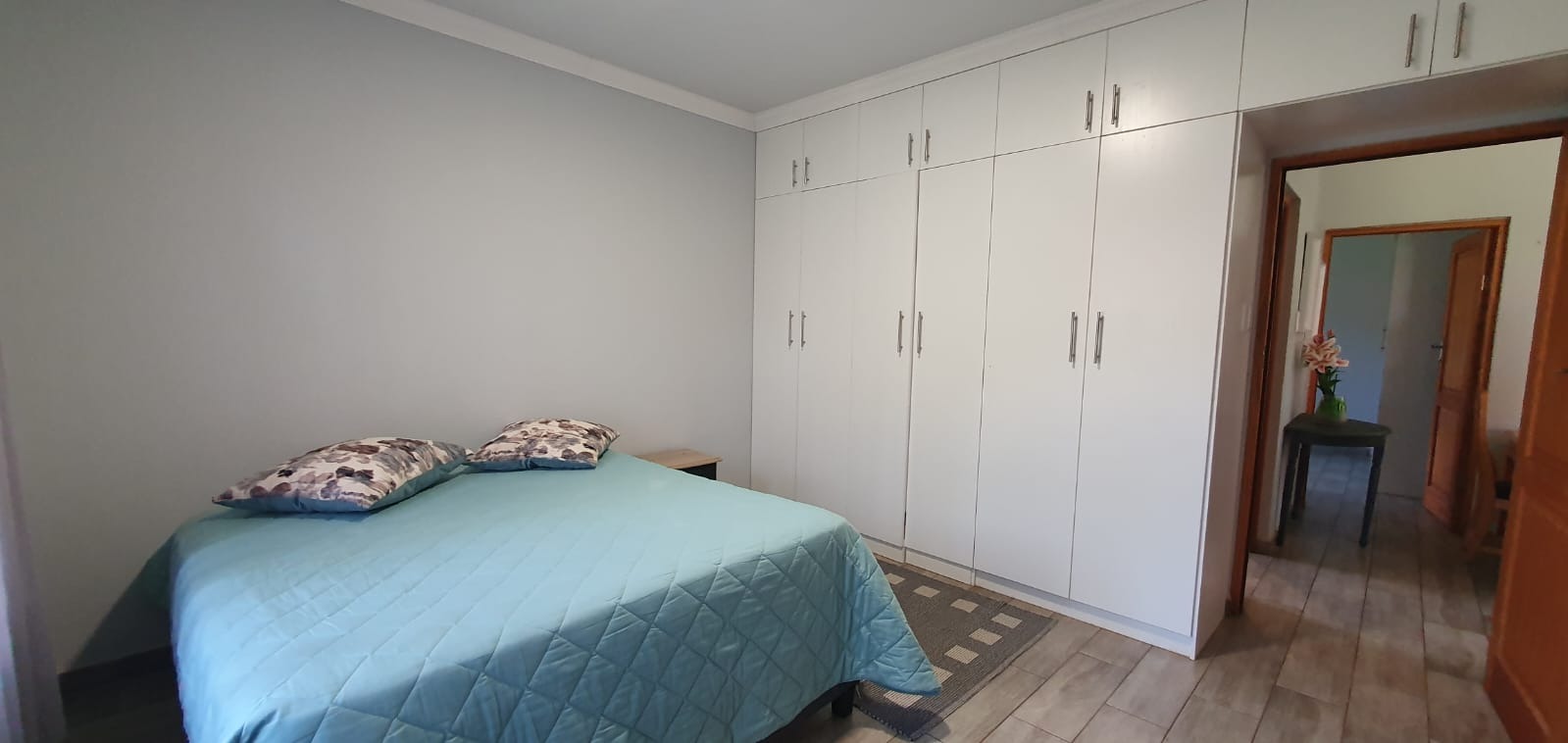 The open-plan kitchen is the heart of the home, complete with a large island, gas stove, scullery, and pantry, flowing through sliding doors to a patio with a built-in braai — ideal for relaxed entertaining.