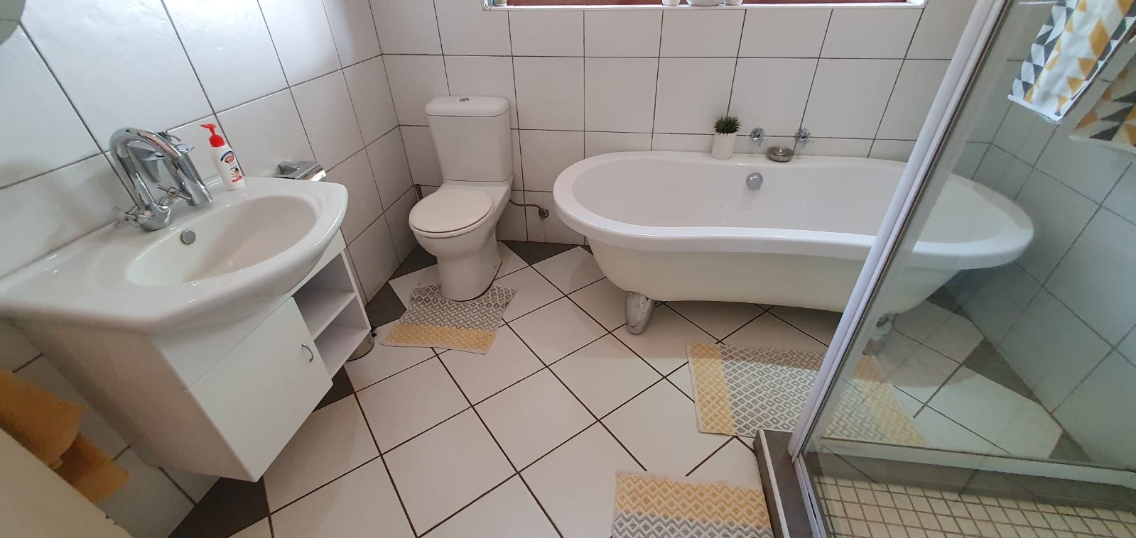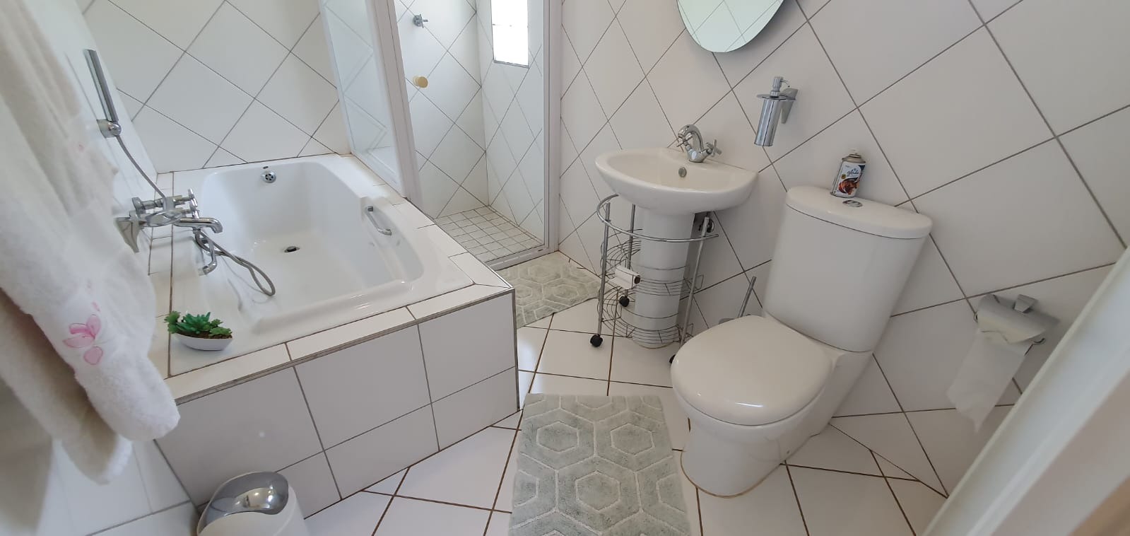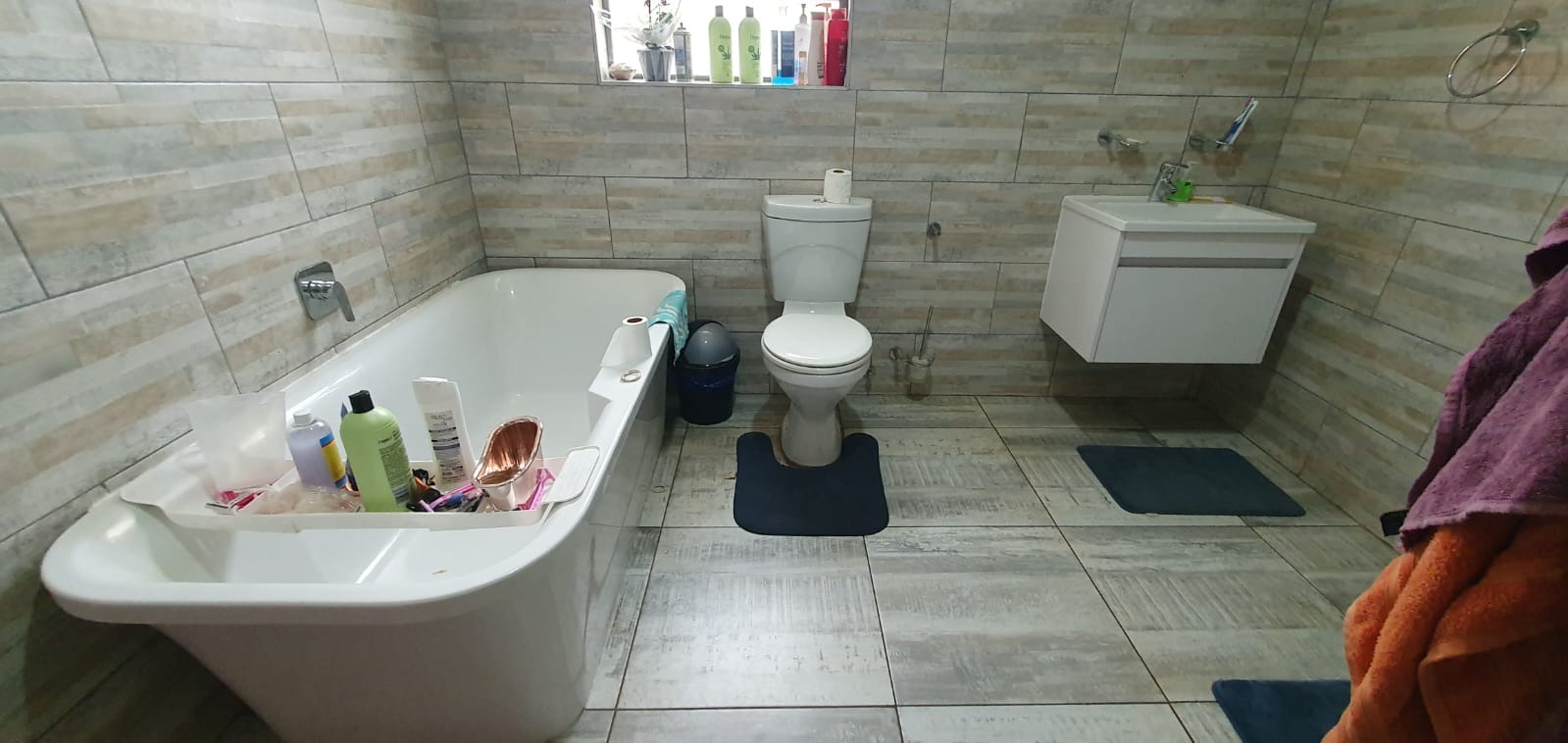 House Three blends modern style with everyday practicality, offering three bedrooms, including a main en-suite, plus a sleek modern bathroom with built-in cupboards and a second bathroom featuring a large bathtub and shower.
