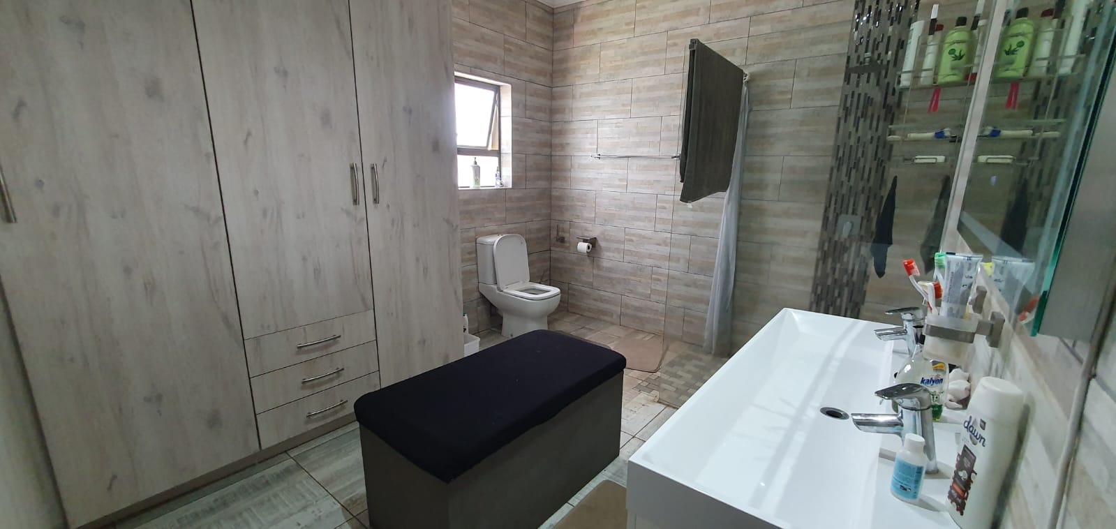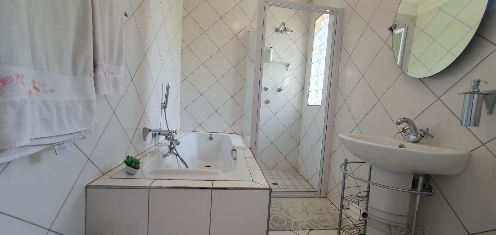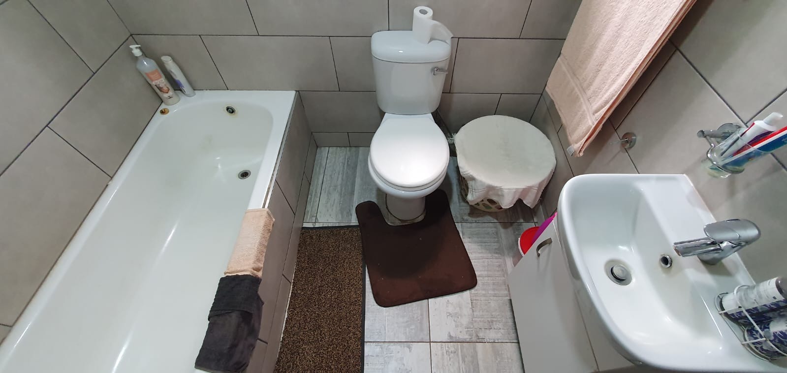 House Three blends modern style with everyday practicality, offering three bedrooms, including a main en-suite, plus a sleek modern bathroom with built-in cupboards and a second bathroom featuring a large bathtub and shower.