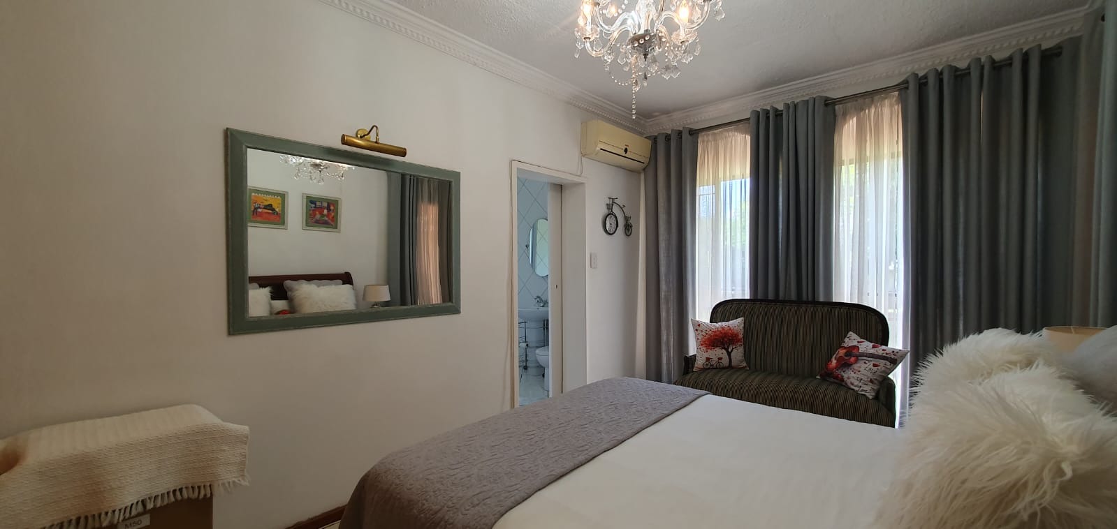 It offers an open living area, kitchen with scullery, and sliding doors leading to a small private Patio with built-in braai. The en-suite bedroom includes a compact walk-in closet, creating a functional and welcoming space ideal for guests, extended family, or rental use.