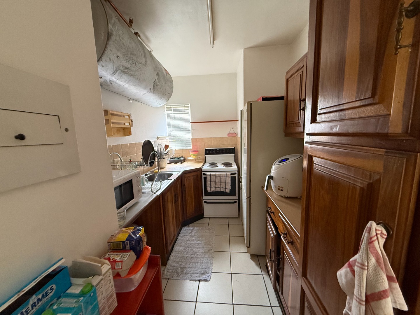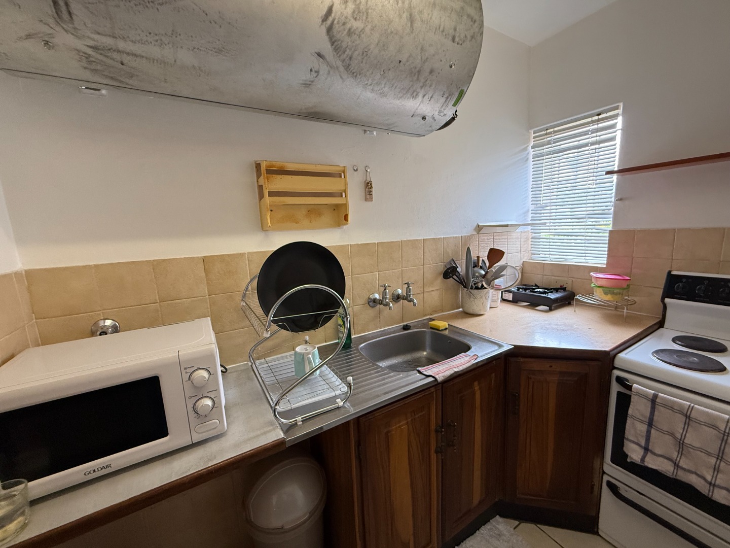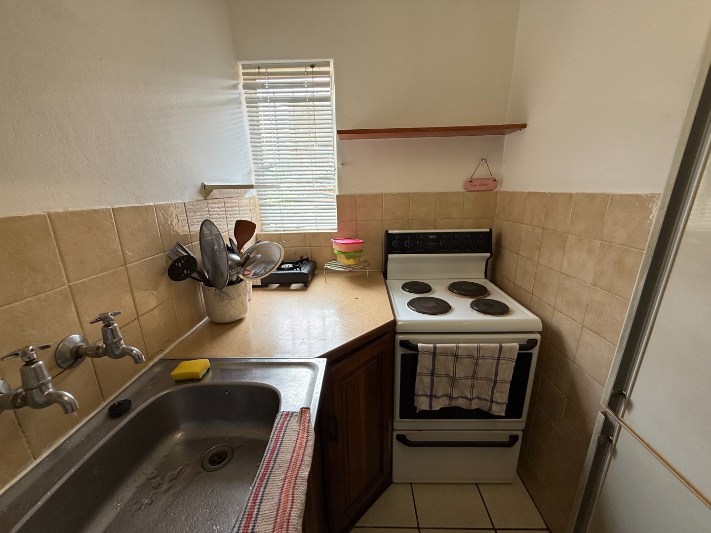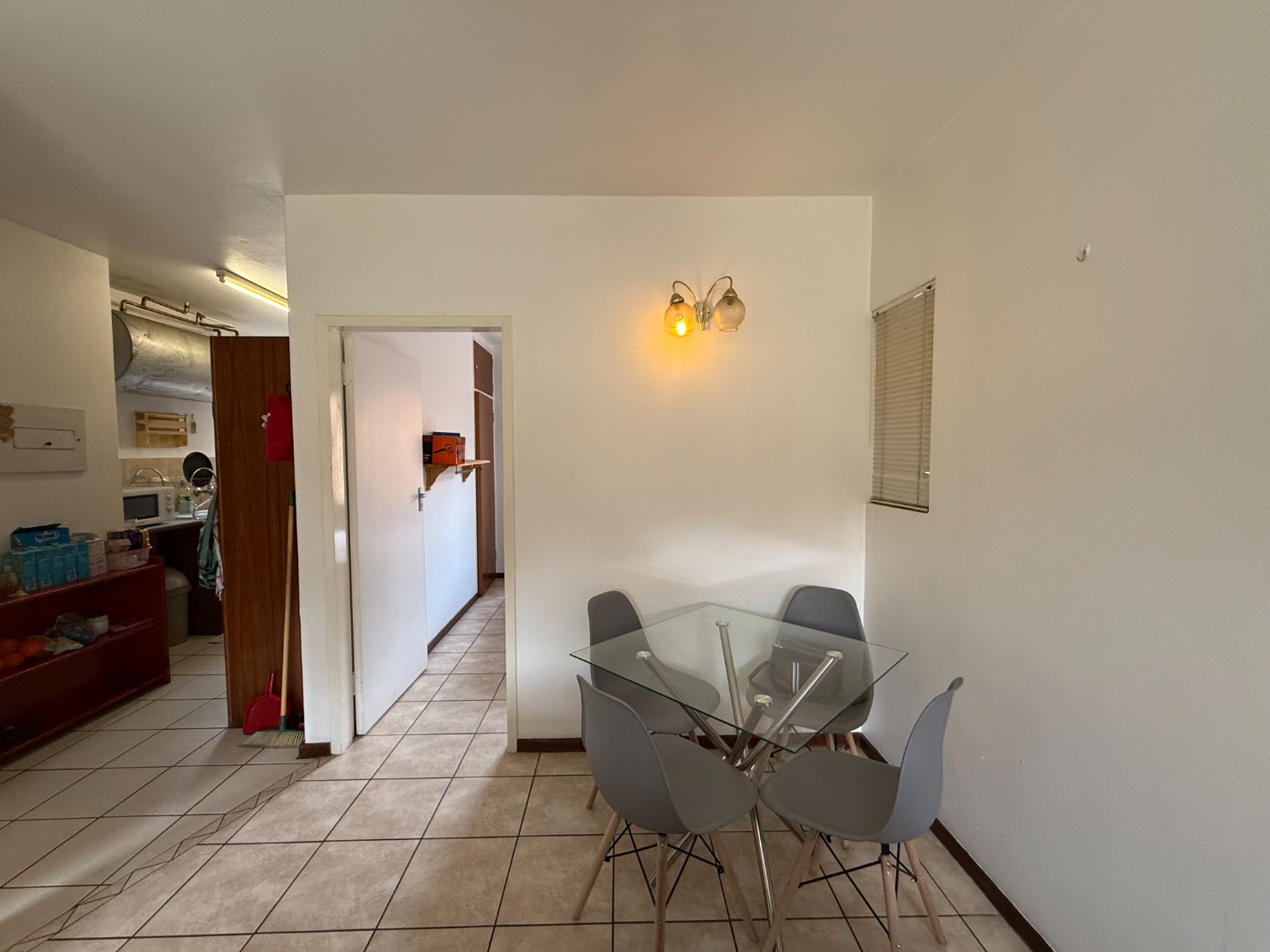 Step inside to a thoughtfully designed interior featuring tiled flooring throughout, ensuring easy maintenance. The lounge area, enhanced by an exposed brick accent wall, provides a welcoming space for relaxation and entertainment. Large glass doors, fitted with a security trellis gate, seamlessly connect the living area to a private, small garden, offering a tranquil outdoor retreat. The unit also includes a dedicated, small dining area and a functional kitchen, catering to all your culinary needs.