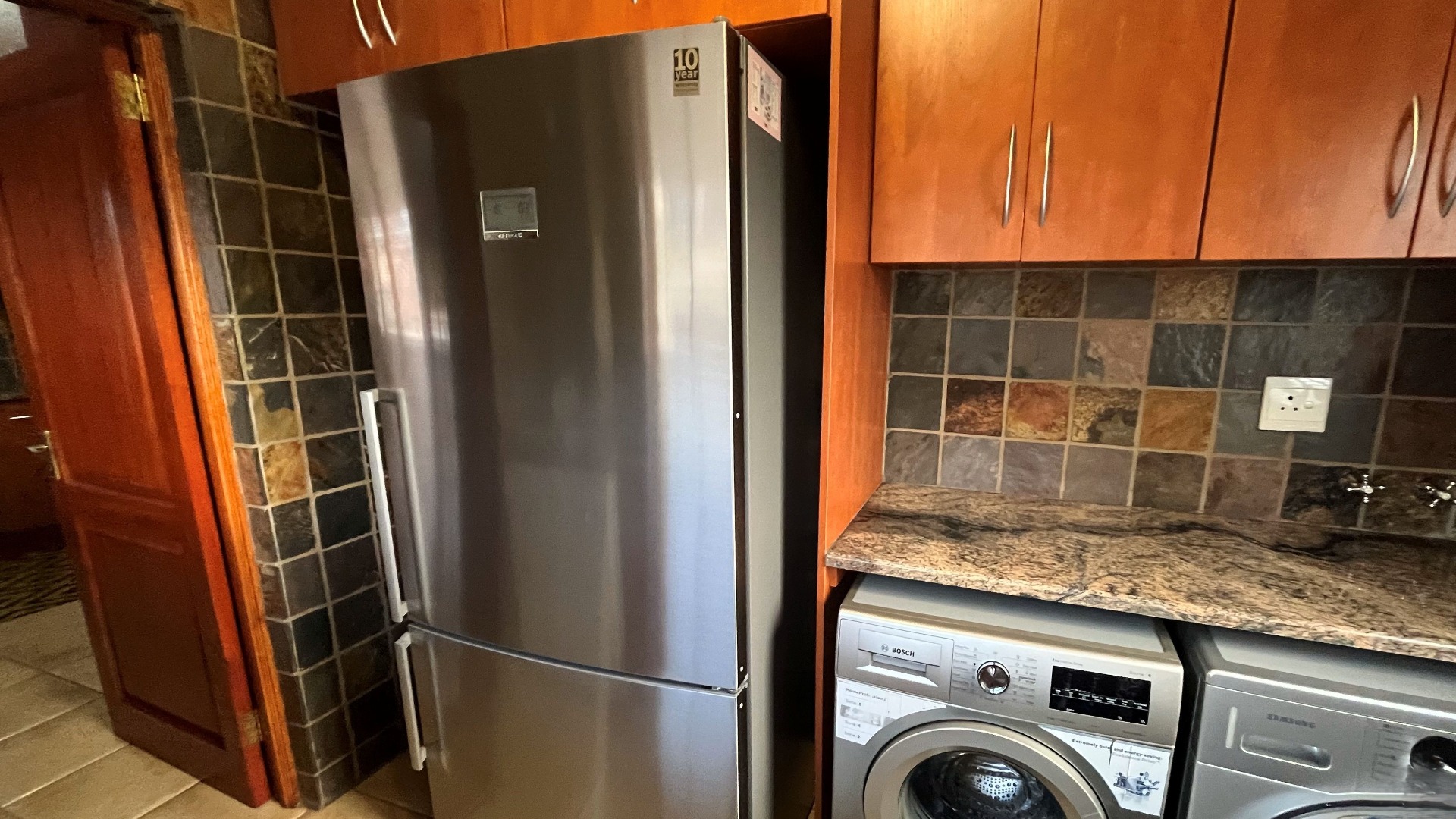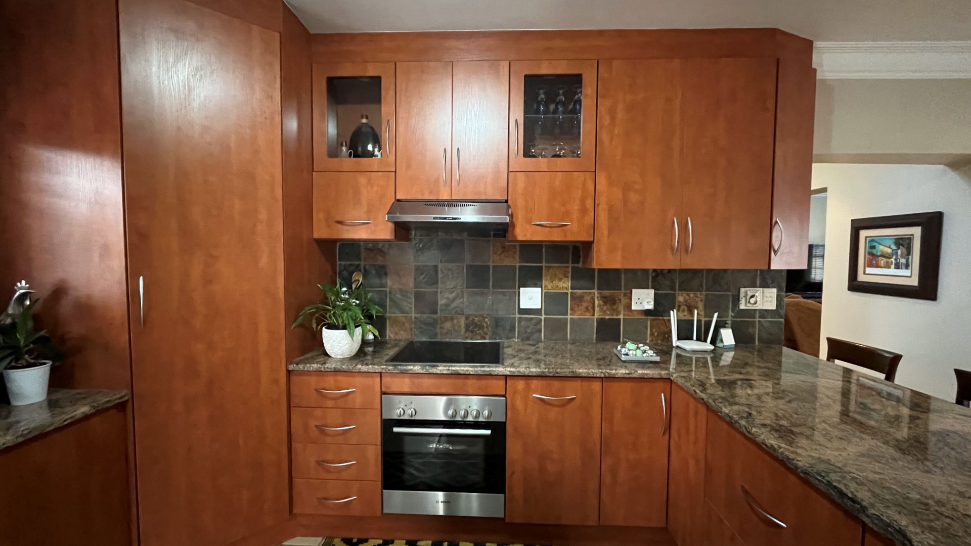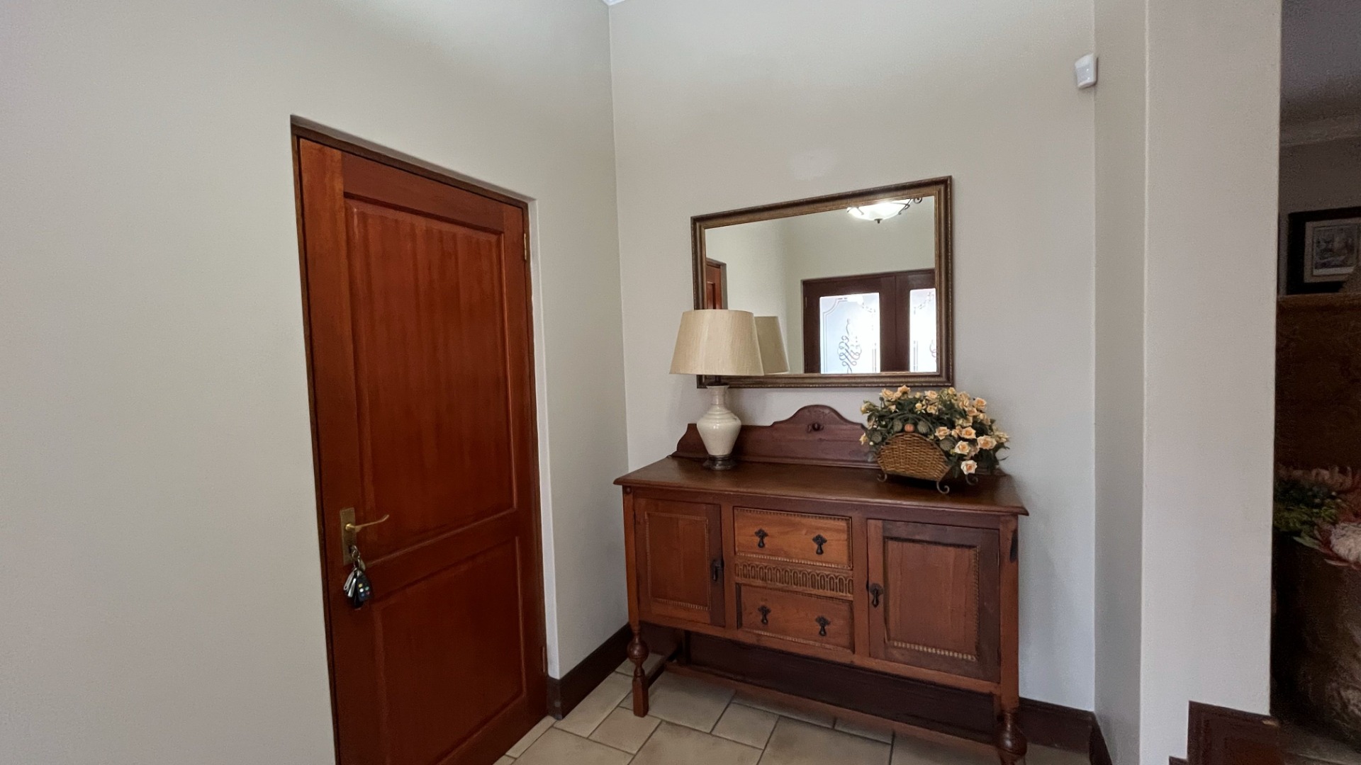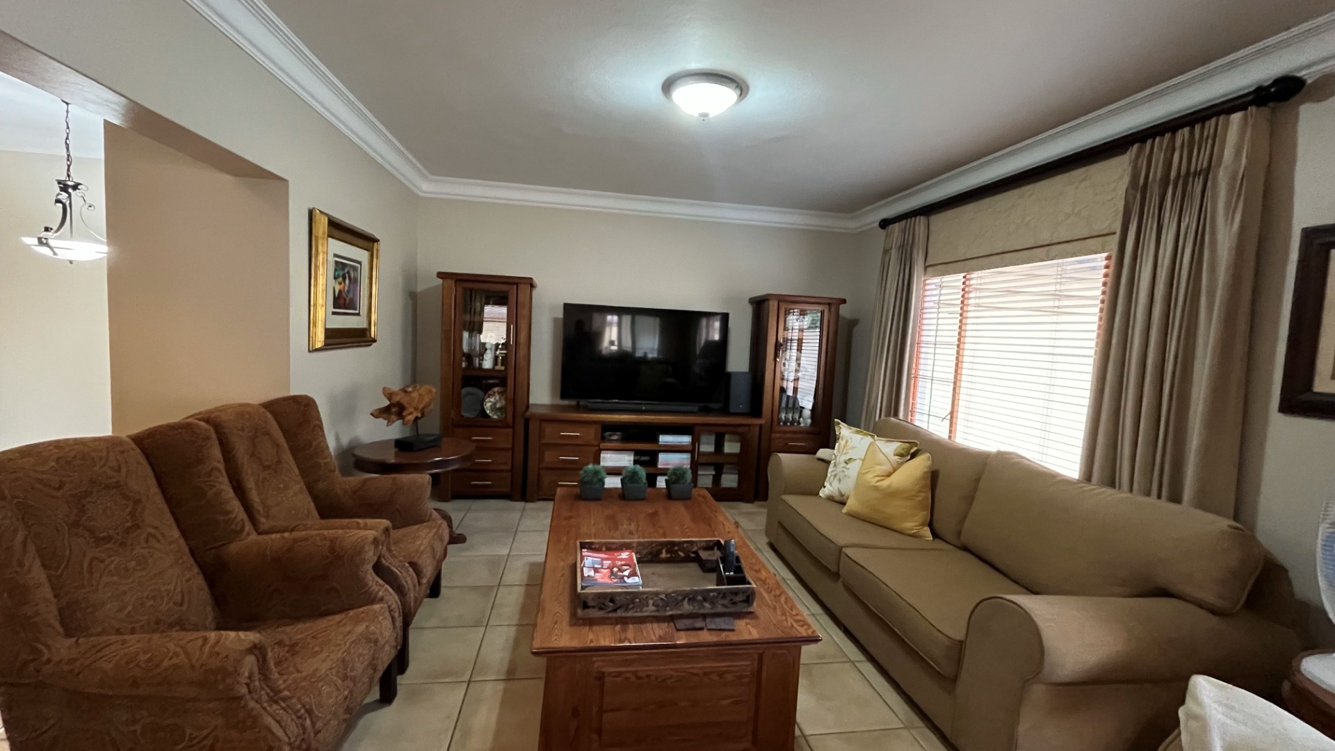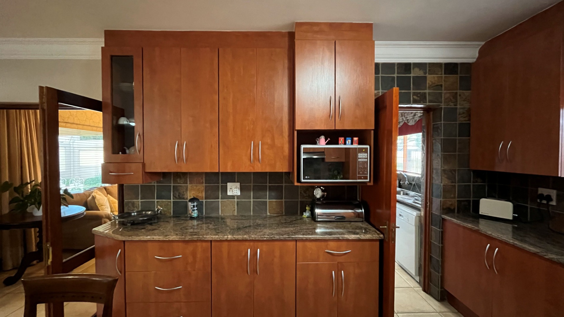 Step outside to the covered patio where you can relax and entertain. Enjoy a built-in braai and boma area, perfect for al fresco dining or with your morning coffee or a glass of wine at day's end. The manicured garden provides a serene setting that complements the home’s sophisticated style.