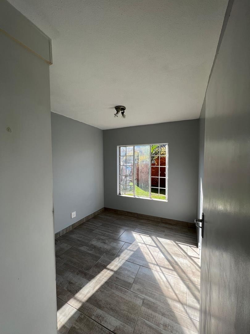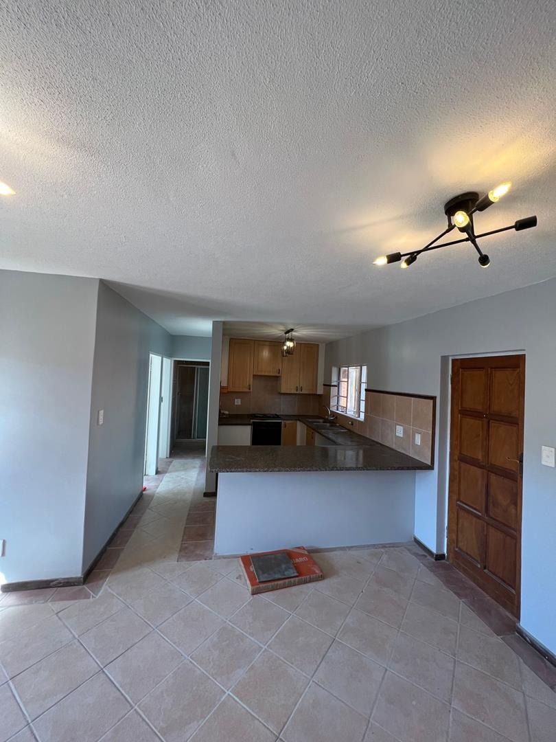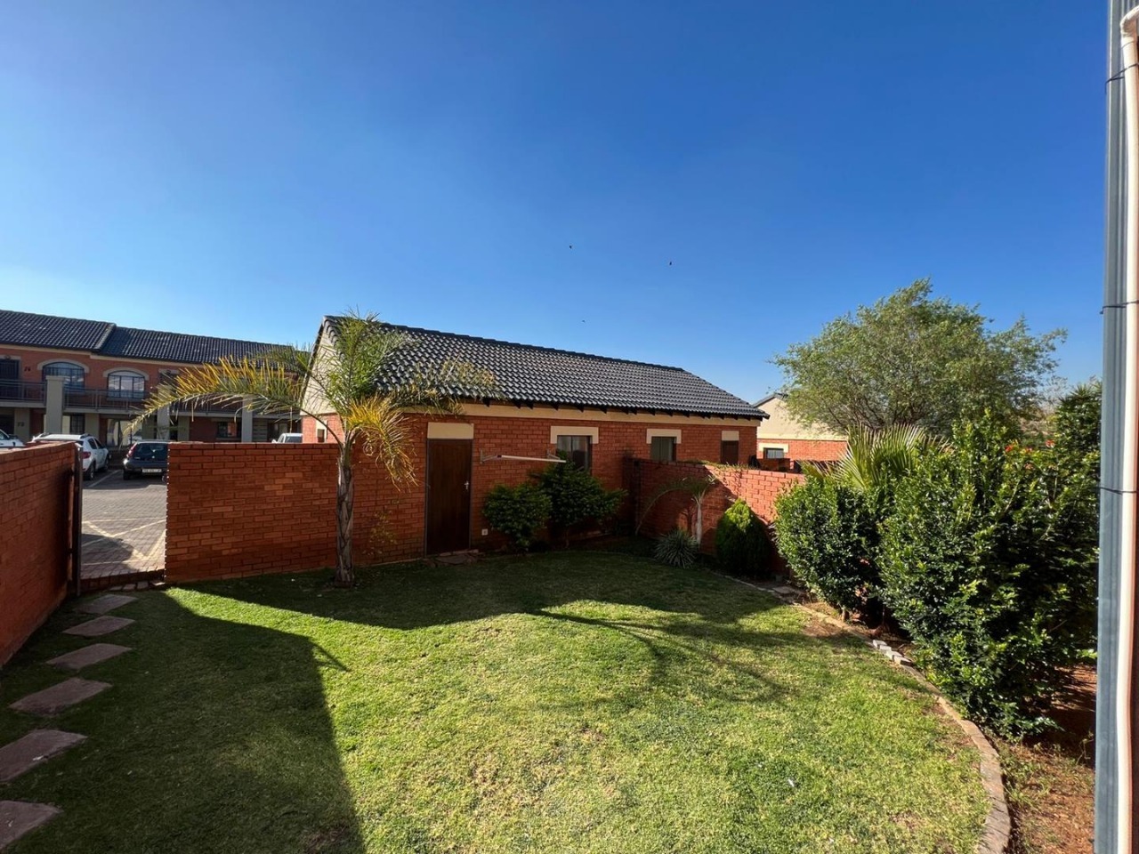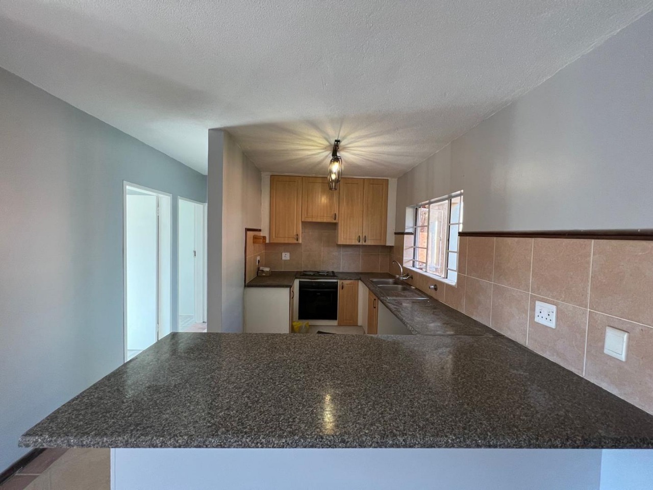 Come on in and discover this lovely 2-bedroom townhouse, featuring a welcoming open-plan living area and kitchen. The space feels bright and airy with freshly painted light grey walls and easy-to-maintain tiled flooring. The kitchen is super practical, boasting ample light wood cabinetry, dark speckled countertops, a built-in stove and oven, plus a double sink. A handy breakfast bar makes it perfect for casual meals or catching up. Upstairs, you'll find two comfy bedrooms, both with neutral grey walls and modern wood-look tiled flooring, along with a built-in wardrobe for all your storage needs. The full bathroom is tiled and includes a shower, bathtub, pedestal sink, and toilet, benefiting from natural light. It’s a functional space ready for your personal touch. Step outside to your own private, well-maintained grassy backyard and a tiled patio with security-gated access – great for relaxing or a bit of gardening. There's also an upper-level balcony, offering a nice spot to enjoy the fresh air. The classic red brick facade gives it charming kerb appeal. Safety is a priority with security bars on windows and the sliding door. You'll have two garages and two additional parking spaces, making life easy. This home is nestled within a fantastic security estate, offering a great lifestyle. This charming home is located in the secure Mooikloof Ridge estate in Pretoria, South Africa, a sought-after area known for its friendly community vibe, making it an ideal place to settle down. Key Features: * 2 Bedrooms, 1 Bathroom * Open-plan living and kitchen * Private grassy backyard & tiled patio * Upper-level balcony * 2 Garages, 2 Parking spaces * Security estate living * Tiled flooring throughout * Built-in wardrobe * Classic red brick facade
