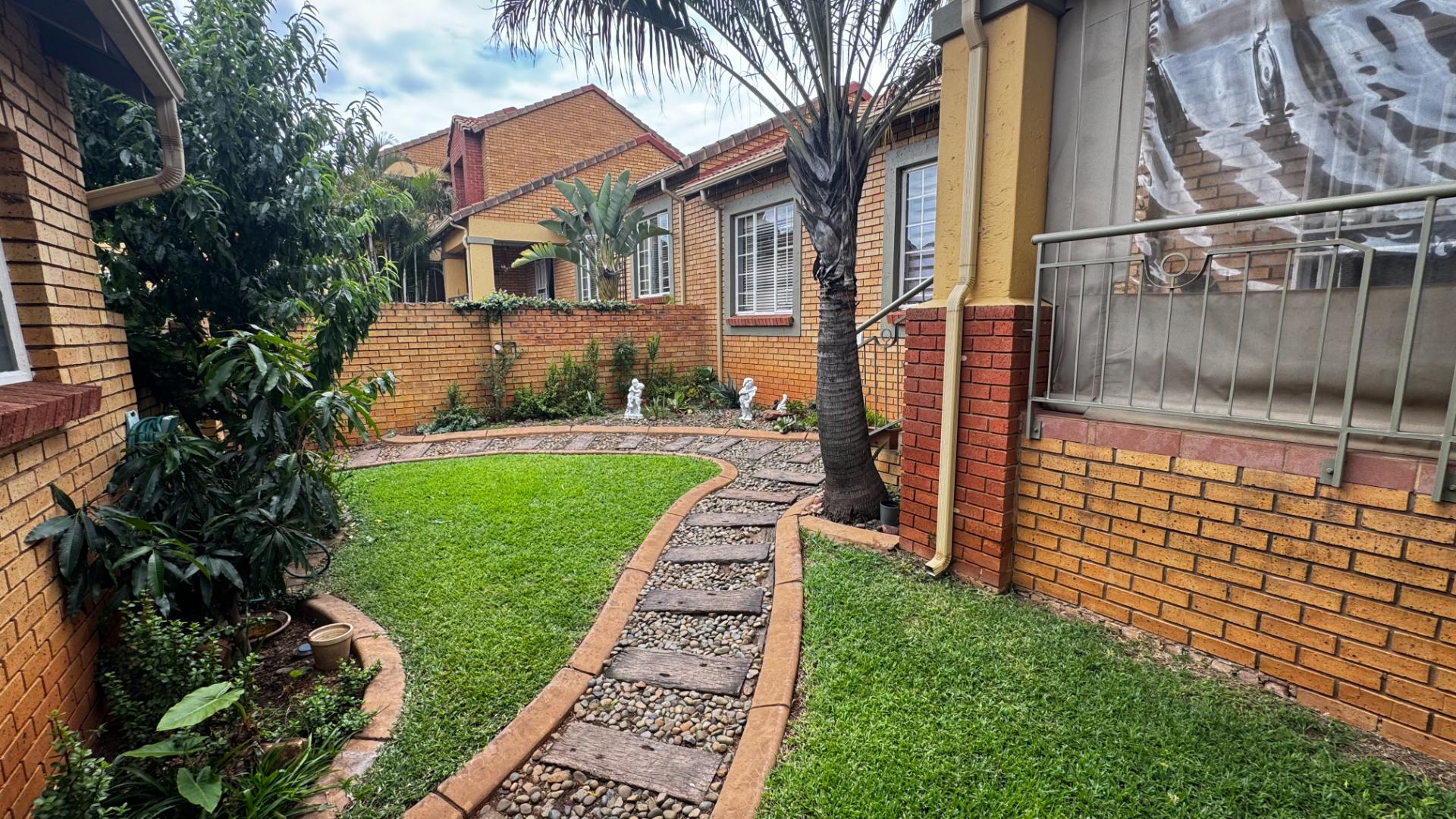 Outside, a private garden and refreshing pool provide an ideal setting for outdoor enjoyment. The property includes two garages and an additional parking space, catering to vehicle needs, and is pet-friendly. Residents benefit from exceptional security, including 24-hour surveillance, CCTV, electric fencing, access gate, security post, and intercom. The estate boasts a clubhouse, squash court, and tennis court, enhancing lifestyle. Fibre connectivity is also available.