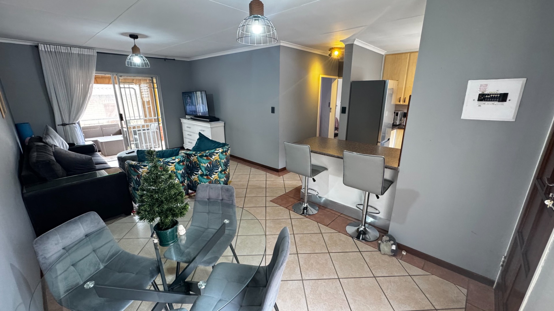 Discover this inviting 114 sqm residence, perfectly situated within the secure Mooikloof Ridge estate in Pretoria. An elegant entrance hall leads to a spacious open-plan layout, seamlessly integrating the lounge and dining areas. The well-appointed kitchen ensures functional living, with sliding doors opening to a private patio, ideal for relaxation and entertaining. This home offers two comfortable bedrooms and two bathrooms, one being en-suite.