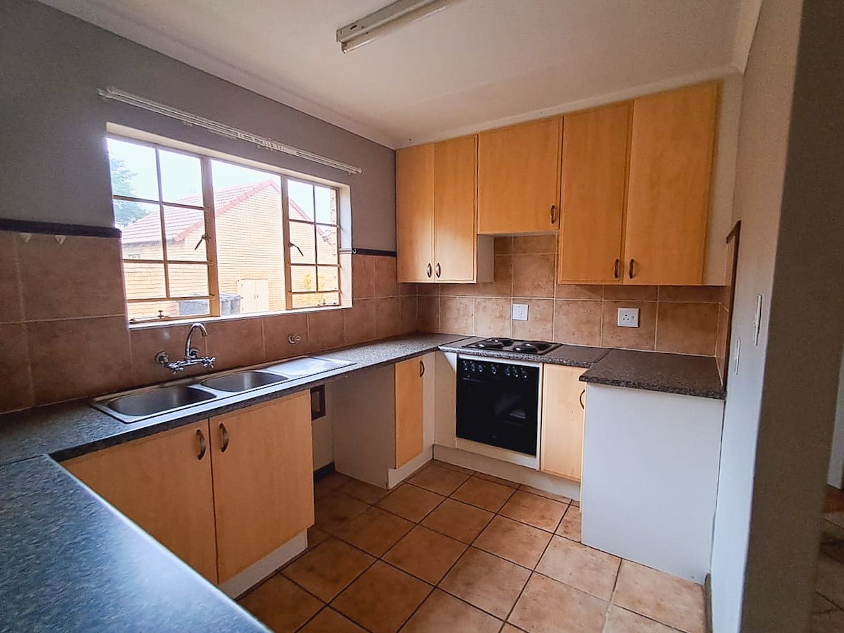 This inviting 2-bedroom, 2-bathroom residence offers comfortable living within the sought-after Mooikloof Ridge estate in Pretoria, South Africa. The home features an open-plan layout seamlessly connecting living areas, creating a spacious, airy atmosphere. Neutral walls and durable tiled flooring extend throughout, providing a versatile canvas for personal style and ensuring easy maintenance. Natural light floods the interiors, enhancing the welcoming ambiance. The functional kitchen is equipped with light wooden cabinetry, a double sink, a built-in hob and oven, and ample counter space, including a practical kitchen island/breakfast bar. Both bedrooms are well-proportioned, featuring built-in cupboards for efficient storage and large windows inviting natural light, complemented by security bars. The two fully tiled bathrooms offer a shower cubicle in one and a bathtub in the other, catering to diverse preferences. Outside, a private garden space awaits. The property includes a double garage and an additional parking bay, providing secure vehicle accommodation. Residents of this metropolitan security estate benefit from communal amenities like a swimming pool for aquatic activities and a clubhouse, fostering a vibrant community lifestyle. Pets are welcome. Located in a cul-de-sac within a secure complex, this home offers peace of mind with its access gate and overall estate security. This combination of practical features and desirable estate amenities makes it a compelling choice for those seeking a balanced and secure lifestyle in Pretoria. Key Features: * 2 Bedrooms, 2 Bathrooms * Open-plan living area * Functional kitchen with built-in hob and oven * Built-in cupboards in bedrooms * Tiled flooring throughout * Private garden * Double garage and additional parking * Access to communal pool and clubhouse * Pet-friendly * Secure estate with access gate