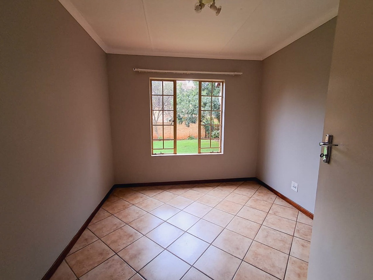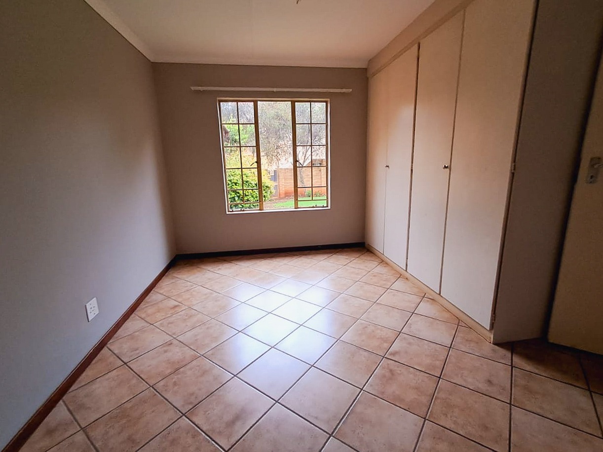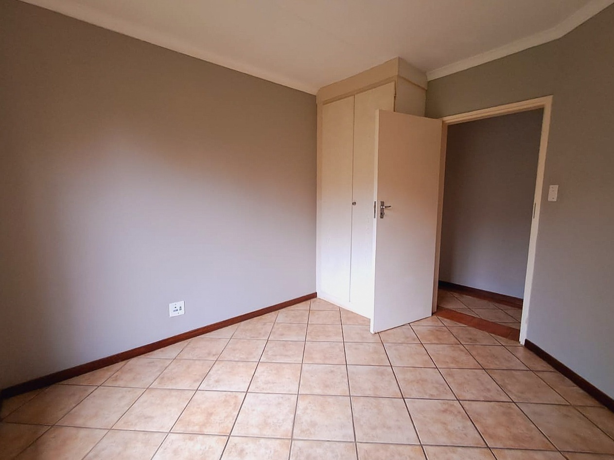 This inviting 2-bedroom, 2-bathroom residence offers comfortable living within the sought-after Mooikloof Ridge estate in Pretoria, South Africa. The home features an open-plan layout seamlessly connecting living areas, creating a spacious, airy atmosphere. Neutral walls and durable tiled flooring extend throughout, providing a versatile canvas for personal style and ensuring easy maintenance. Natural light floods the interiors, enhancing the welcoming ambiance. The functional kitchen is equipped with light wooden cabinetry, a double sink, a built-in hob and oven, and ample counter space, including a practical kitchen island/breakfast bar. Both bedrooms are well-proportioned, featuring built-in cupboards for efficient storage and large windows inviting natural light, complemented by security bars. The two fully tiled bathrooms offer a shower cubicle in one and a bathtub in the other, catering to diverse preferences. Outside, a private garden space awaits. The property includes a double garage and an additional parking bay, providing secure vehicle accommodation. Residents of this metropolitan security estate benefit from communal amenities like a swimming pool for aquatic activities and a clubhouse, fostering a vibrant community lifestyle. Pets are welcome. Located in a cul-de-sac within a secure complex, this home offers peace of mind with its access gate and overall estate security. This combination of practical features and desirable estate amenities makes it a compelling choice for those seeking a balanced and secure lifestyle in Pretoria. Key Features: * 2 Bedrooms, 2 Bathrooms * Open-plan living area * Functional kitchen with built-in hob and oven * Built-in cupboards in bedrooms * Tiled flooring throughout * Private garden * Double garage and additional parking * Access to communal pool and clubhouse * Pet-friendly * Secure estate with access gate