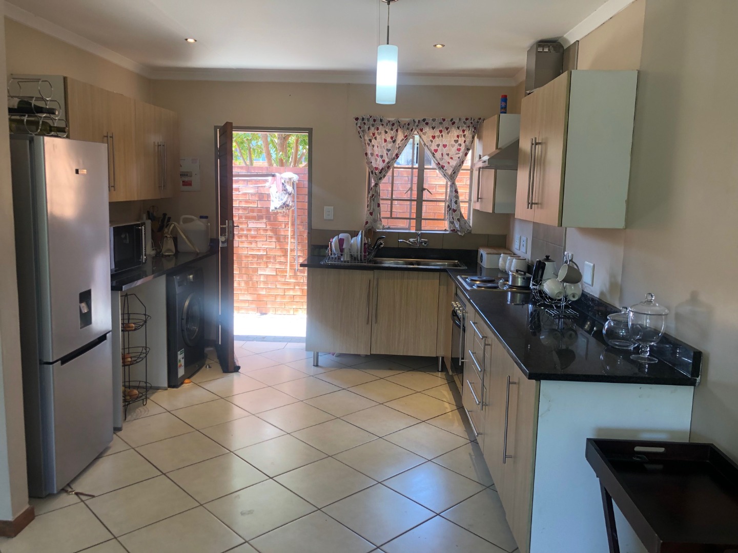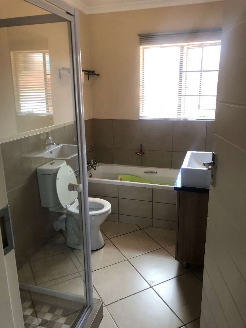 Mooikloof Ridge in Pretoria offers a fantastic lifestyle, blending suburban comfort with excellent estate amenities, known for secure, family-friendly living. This lovely 3-bedroom home welcomes you with an inviting open-plan layout, seamlessly connecting the lounge, dining room, and a family/TV room – perfect for everyday living and entertaining. The functional kitchen boasts light wood-look cabinetry, dark countertops, tiled flooring, and a handy pantry. You'll find three comfortable bedrooms, each with built-in wardrobes. The main bedroom includes an en-suite, and there's another full bathroom, plus a guest toilet. Both full bathrooms offer a separate shower and a bathtub. Step outside to a covered, tiled patio overlooking your private garden and refreshing pool – ideal for sunny Pretoria days. A double garage provides ample parking. Enjoy peace of mind with 24-hour security, a security post, and access control within this secure estate. Fibre internet is ready, and residents have access to a clubhouse. Key Features: * 3 Bedrooms, 2 Bathrooms (1 en-suite) * Open-plan lounge, dining, and family/TV room * Functional kitchen with pantry * Covered, tiled patio and private garden * Refreshing pool * Double garage * Secure estate living with 24-hour security * Fibre internet ready * Access to a clubhouse
