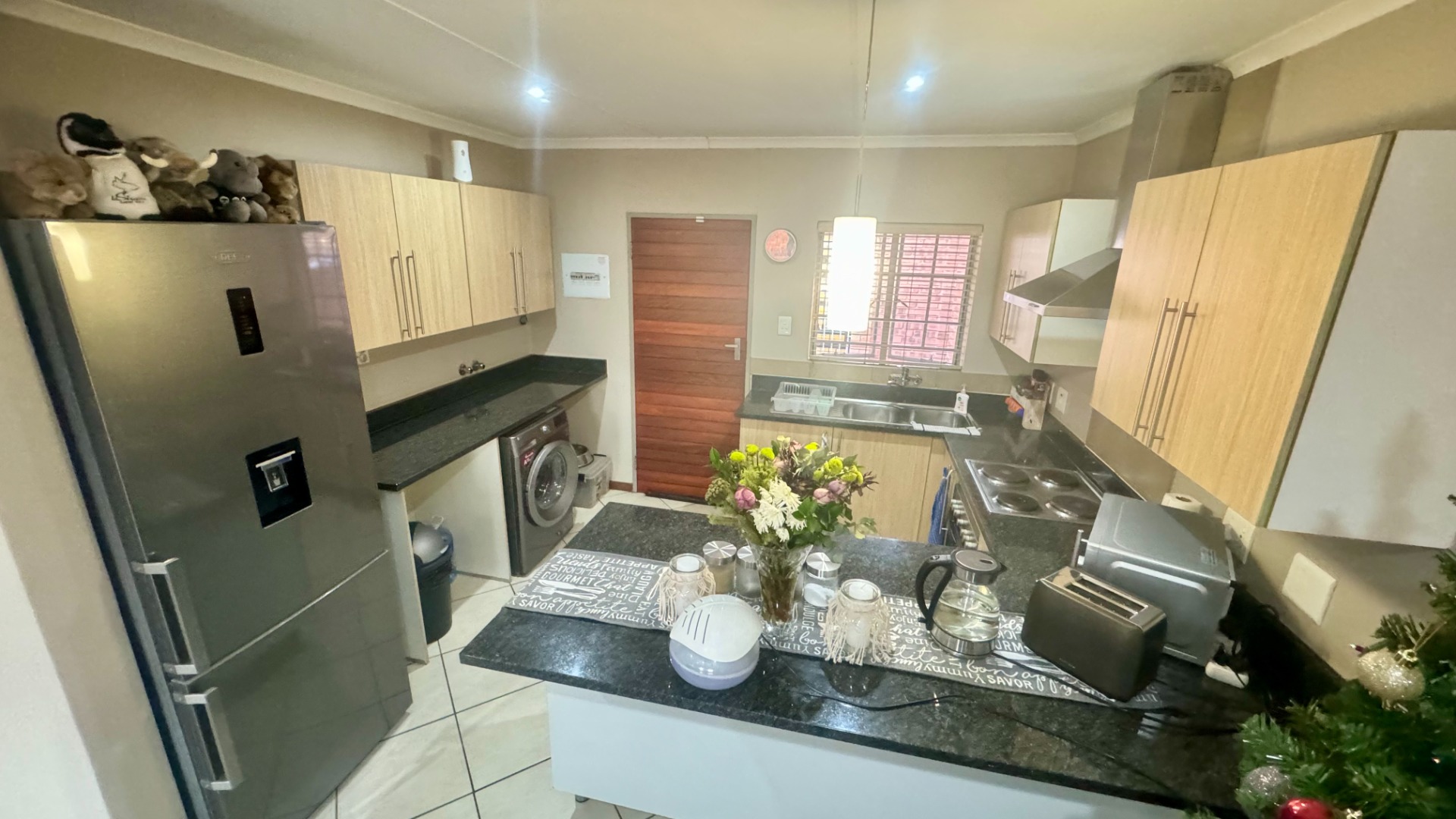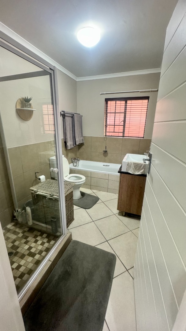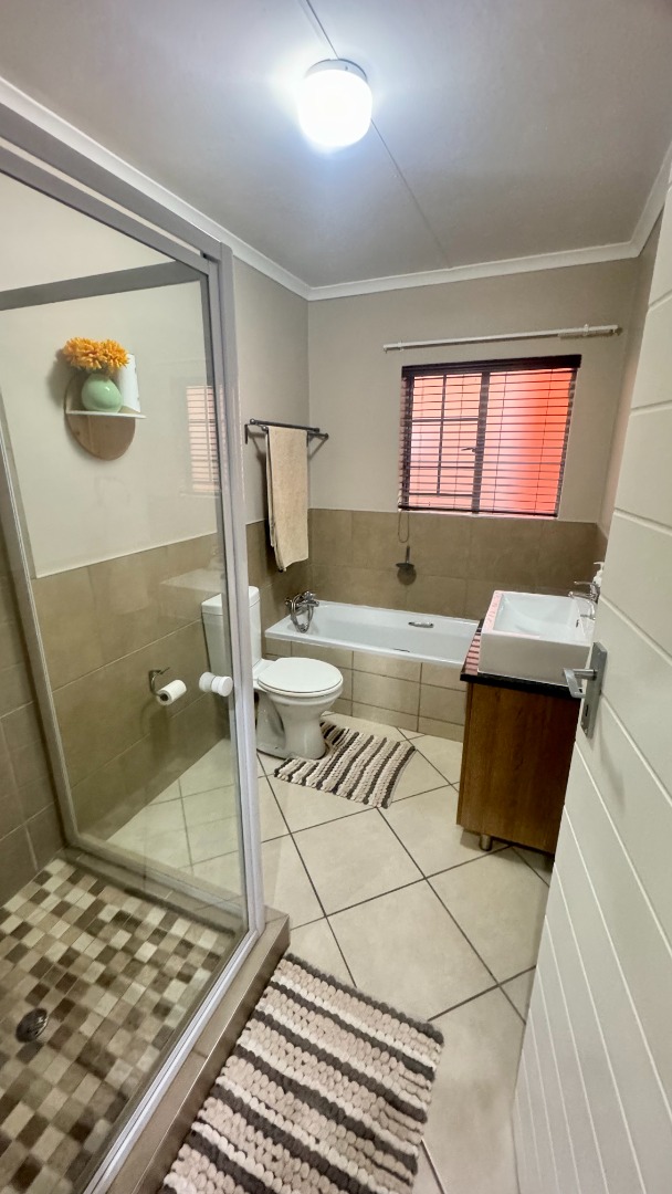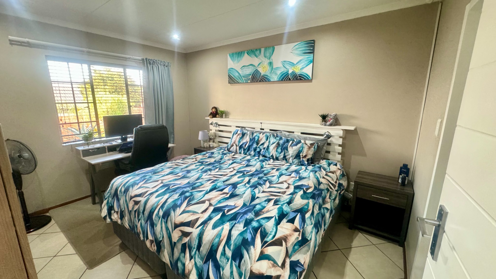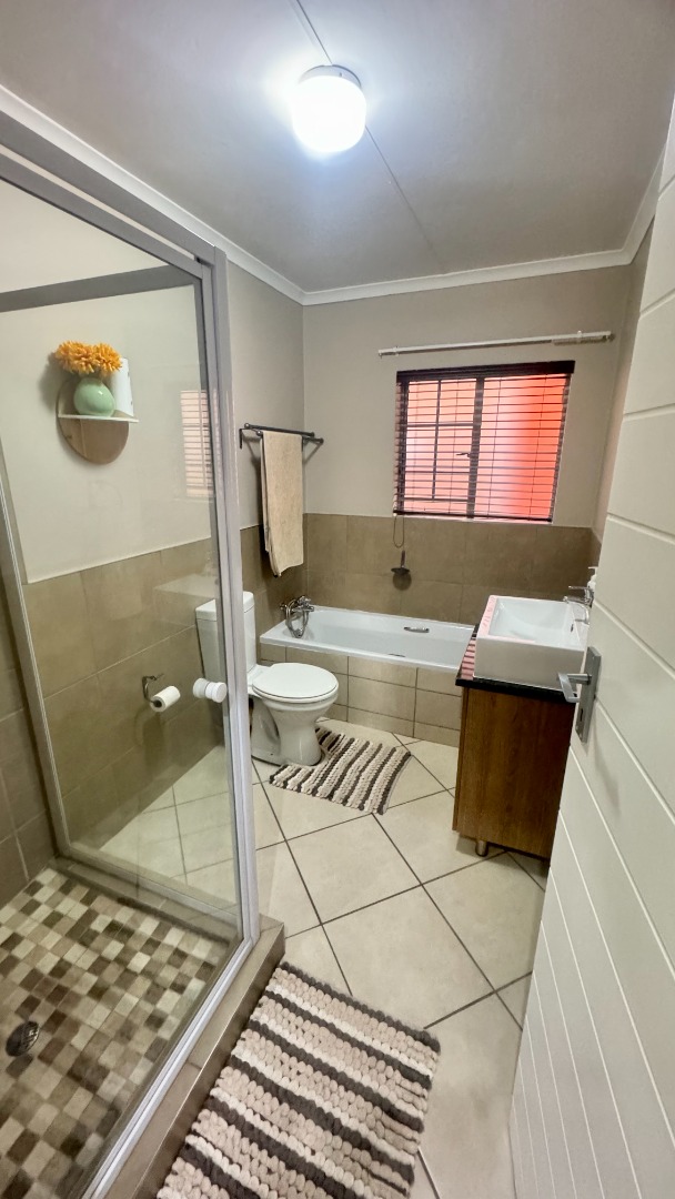 Discover an unparalleled lifestyle within the esteemed Mooikloof Ridge estate in Pretoria. This magnificent 3-bedroom, 2-bathroom residence, spanning 129 sqm on a generous 300 sqm erf, epitomises sophisticated living. The seamless open-plan design effortlessly connects the elegant lounge and dining areas, creating an inviting ambiance perfect for both grand entertaining and intimate family moments. A well-appointed kitchen and sliding doors leading to a private patio and lush garden offer a serene outdoor retreat. Each of the three spacious bedrooms provides a tranquil haven. The master suite boasts a luxurious en-suite bathroom, offering a spa-like experience. A second impeccably finished bathroom serves the additional bedrooms, ensuring convenience and elegance. Beyond the interiors, the property extends its allure with a private garden and a refreshing pool, ideal for leisurely afternoons. The estate itself offers an array of exclusive amenities, including a sophisticated clubhouse and a squash court, catering to an active and social lifestyle. Two dedicated garages and an additional parking space ensure paramount convenience. Residing within a secure complex and estate, this home offers peace of mind with 24-hour security, CCTV surveillance, electric fencing, and a manned security post. An access gate, intercom system, and security gate further enhance protective measures. Modern connectivity is assured with fibre internet access. Nestled in the prestigious Mooikloof Ridge, Pretoria, this address offers an exceptional blend of suburban tranquility and convenient access to urban amenities. It presents a rare opportunity to acquire a distinguished residence in one of South Africa's most sought-after locales. Key Features: * 3 Bedrooms, 2 Bathrooms (1 En-suite) * 1 Lounge, 1 Dining Room, 1 Kitchen * Private Pool, Patio, Garden * 2 Garages, 1 Parking * Estate Amenities: Clubhouse, Squash Court * Fibre Ready, Pet-Friendly * 24-Hour Security, CCTV, Electric Fencing * Open Plan Living, Paving, Driveway, Entrance Hall, Sliding Doors
