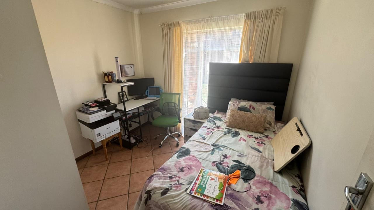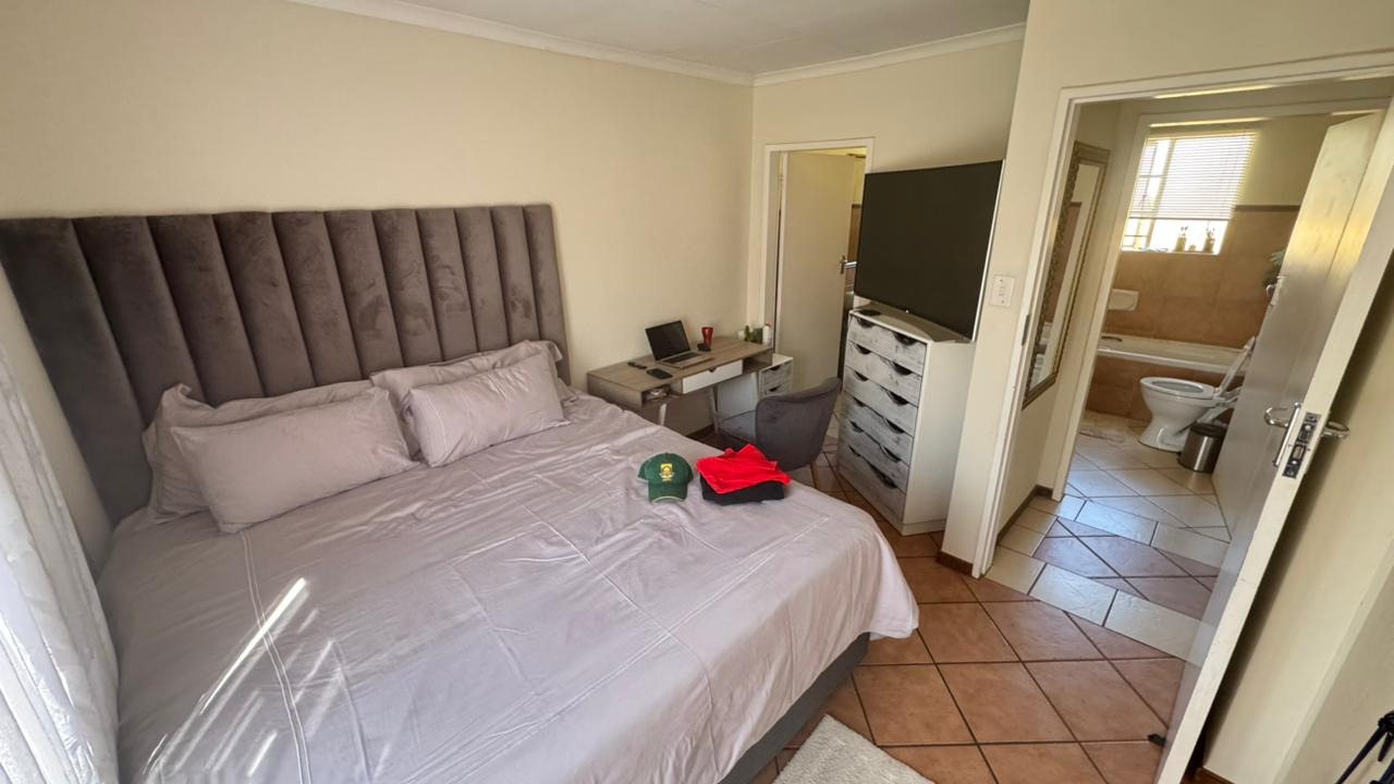 Hey there! Take a look at this charming 3-bedroom, 2-bathroom home in Pretoria's secure Mooikloof Ridge estate. It’s a fantastic spot for easy living and making great memories. Inside, you'll find a comfy lounge and a separate dining area, perfect for relaxing or entertaining. The practical kitchen comes with light wood cabinets, a double sink, stove, oven, and extractor fan – all set for your culinary adventures. The three cozy bedrooms include one with an ensuite for that extra bit of privacy. This 128 sqm home offers a comfortable and functional layout for everyday life. Outside, enjoy your own garden, take a dip in the communal pool, or host a braai at the communal area. With two garages and two parking spots, parking is sorted, and your furry friends are welcome too! This security estate provides a safe and friendly environment. Key Features: * 3 Bedrooms, 2 Bathrooms (1 ensuite) * 128 sqm Floor Size * Lounge, Dining Room, Functional Kitchen * Garden, Communal Pool & Braai Area * 2 Garages, 2 Parking Spots * Pet-Friendly, Secure Estate Living
