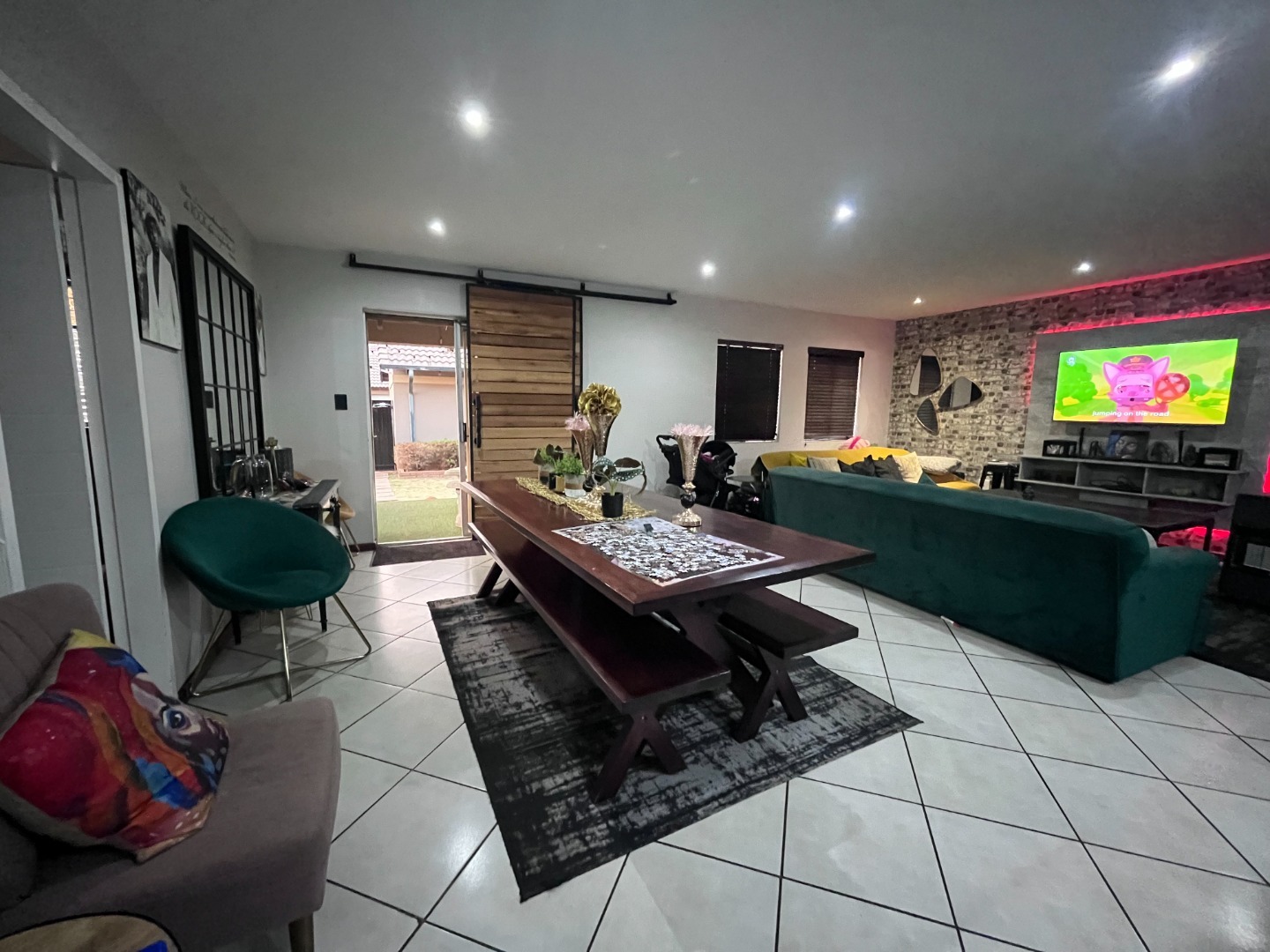 Discover an exceptional opportunity within the prestigious Mooikloof Ridge security estate in Pretoria. This expansive property, nestled in a tranquil cul-de-sac, offers a generous erf size of 30334 sqm, providing ample space and privacy. The estate combines metropolitan convenience with a serene nature reserve lifestyle, offering residents a unique blend of urban access and natural beauty, complemented by mountain surroundings. The residence itself spans a comfortable 178 sqm, featuring a well-designed interior layout. It comprises four spacious bedrooms and three bathrooms, ensuring ample accommodation for families. The home includes a dedicated lounge and a separate dining room, providing distinct areas for relaxation and entertaining. A functional kitchen serves the household's culinary needs, creating a practical and inviting living environment. Step outside to a private oasis, complete with a refreshing swimming pool and a welcoming patio, perfect for outdoor entertaining and leisure. The property boasts a well-maintained garden, offering a peaceful retreat. Parking is well-catered for with two garages and an additional parking bay. Residents of this esteemed estate benefit from access to a clubhouse and aquatic activities, enhancing the lifestyle offerings. Pets are also allowed, making it an ideal family home. Security is paramount within Mooikloof Ridge, featuring an access gate and a security post, ensuring peace of mind for all residents. This secure environment allows for a relaxed lifestyle within the vibrant city of Pretoria, South Africa. The estate's setting provides a harmonious balance between secure community living and the convenience of city amenities. Key Features: * Four bedrooms, three bathrooms * Spacious 178 sqm floor size * Expansive 30334 sqm erf size * Private swimming pool and patio * Two garages plus additional parking * Secure estate living with access gate and security post * Access to clubhouse and aquatic activities * Pet-friendly environment * Located in a tranquil cul-de-sac
