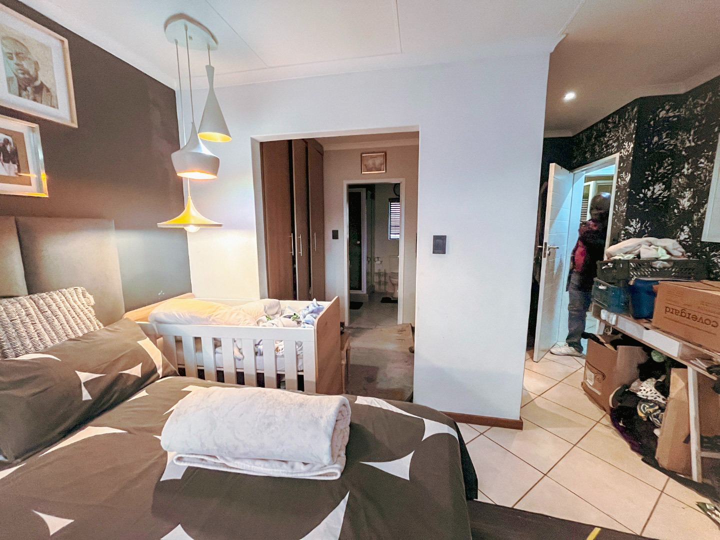 Discover modern estate living in this appealing 4-bedroom, 3-bathroom residence located within the secure Mooikloof Ridge estate in Pretoria. This metropolitan property, situated in a cul-de-sac, offers a generous 210 sqm under roof on an expansive 30000 sqm erf, providing both space and privacy. The interior boasts a spacious, open-plan living and dining area, perfect for contemporary lifestyles. The design features a distinctive accent wall, recessed lighting, and stylish tiled flooring throughout. A modern wooden barn door seamlessly connects the main living space to an outdoor area, enhancing the indoor-outdoor flow. The well-appointed kitchen caters to all culinary needs. Accommodation includes four comfortable bedrooms, with one featuring an en-suite bathroom for added convenience. Built-in wardrobes provide ample storage, and modern pendant lighting adds a touch of sophistication. The bathrooms are designed for functionality, offering a mix of separate glass-enclosed showers and bathtubs, complemented by natural light from windows. Outdoor amenities include a private patio, a refreshing pool, and a well-maintained garden, ideal for relaxation and entertaining. The property also benefits from two garages and an additional parking space, ensuring ample vehicle accommodation. Pets are permitted, making this a welcoming home for the entire family. Residents of this security estate enjoy peace of mind with features like a perimeter fence, security post, and access gate. The estate further enhances lifestyle with aquatic activities and a clubhouse, fostering a vibrant community atmosphere. This home combines comfort, style, and security in a sought-after Pretoria location. Key Features: * 4 Bedrooms, 3 Bathrooms (1 En-suite) * Spacious Open-Plan Living Area * Modern Kitchen * Private Patio and Pool * Established Garden * 2 Garages, 1 Parking * Pet-Friendly * Security Estate with Clubhouse & Aquatic Activities * Located in a Cul-de-Sac