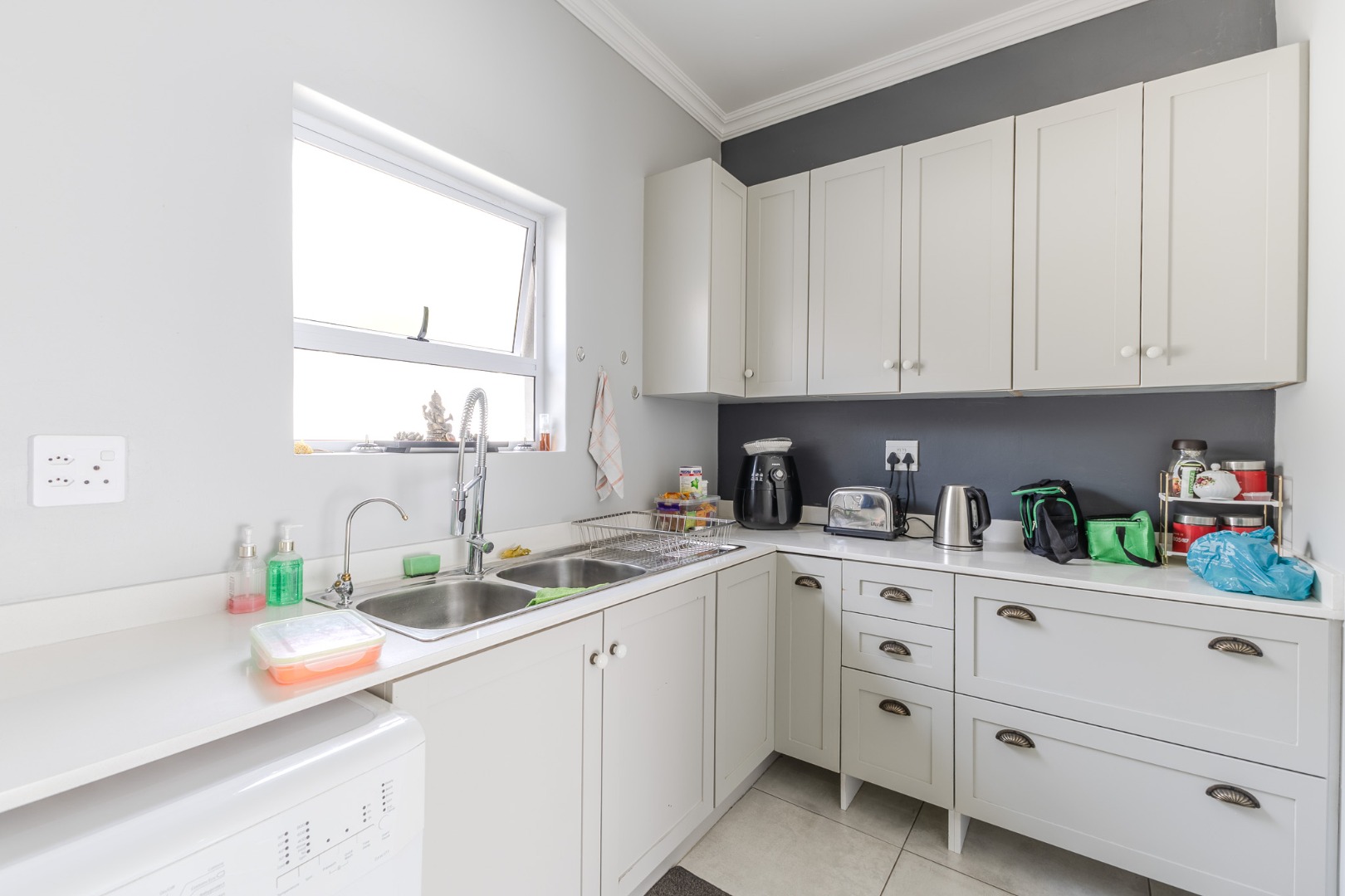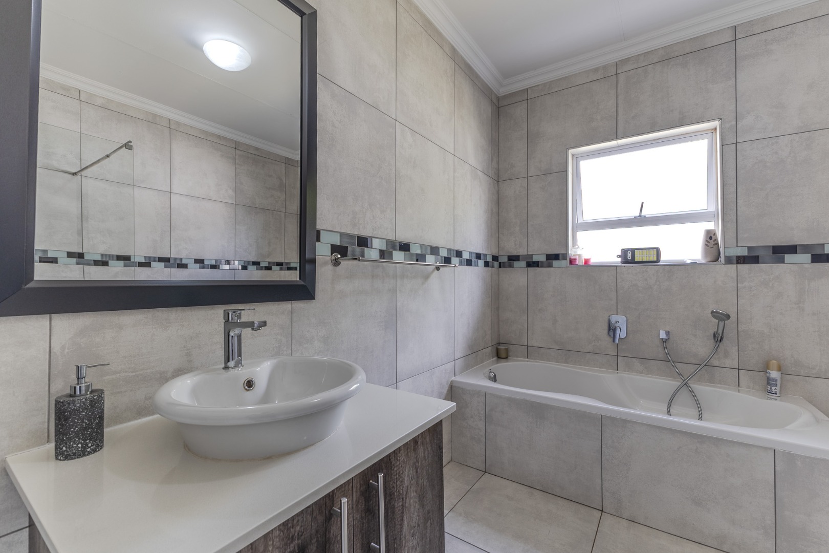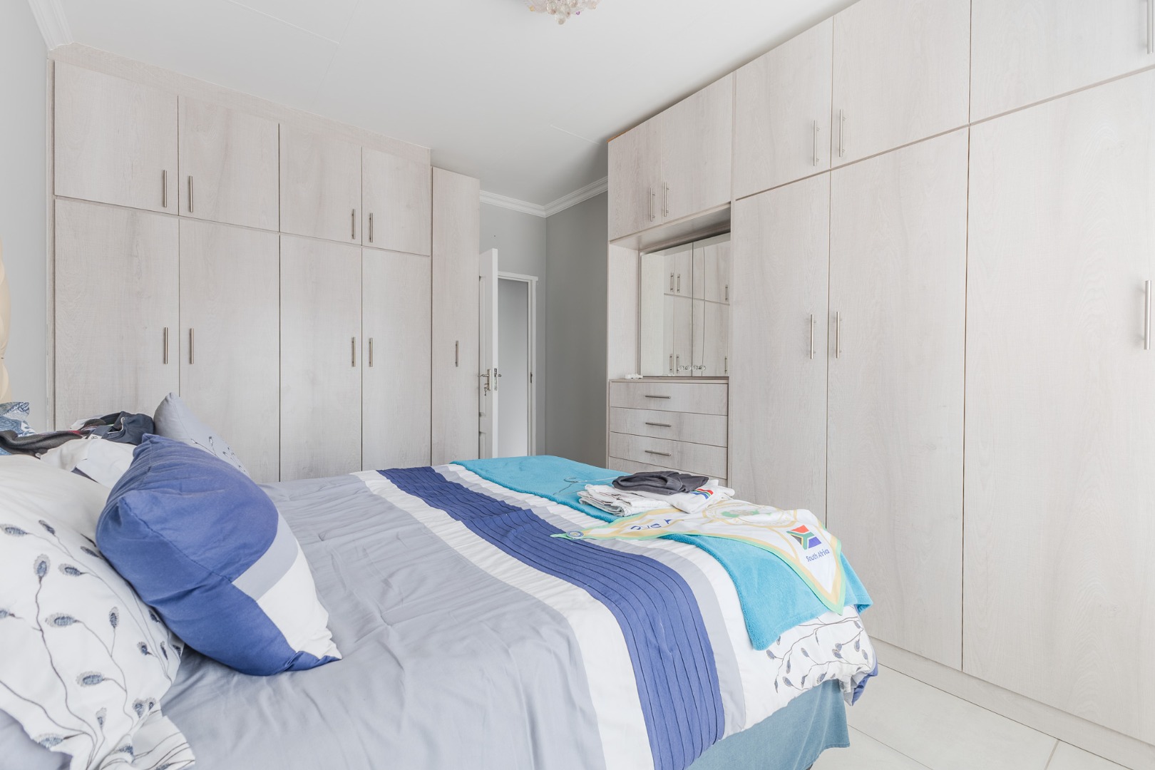 The five bedrooms provide ample private space for all family members, complemented by three well-maintained bathrooms. Outside, the property sits on an 805 square metre erf, offering potential for outdoor enjoyment. A double garage provides secure parking and additional storage.