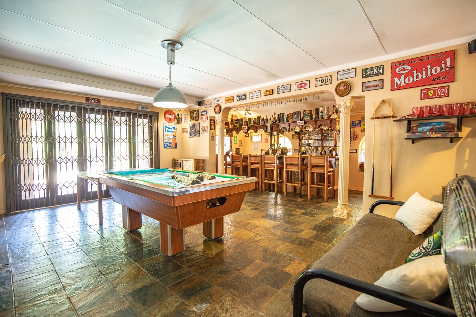 Big entertainment area with private indoor gym overlooking pool and boma area
