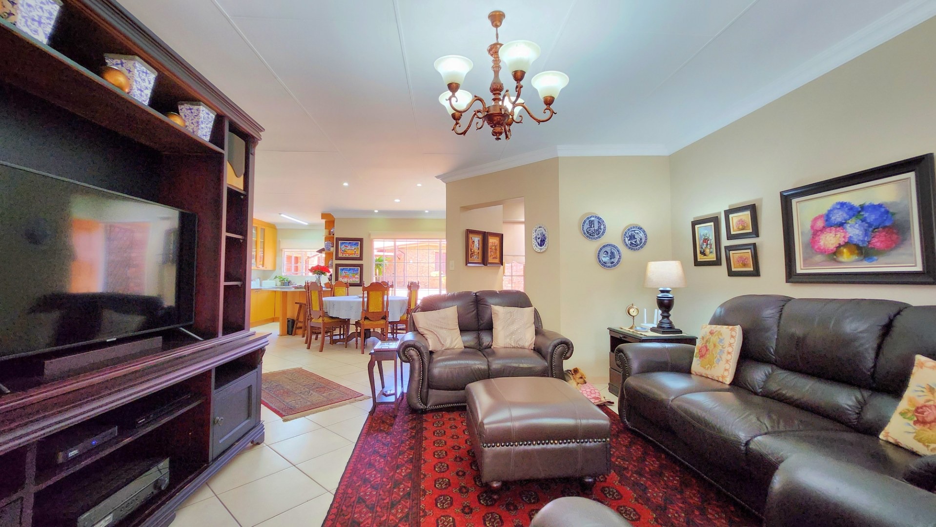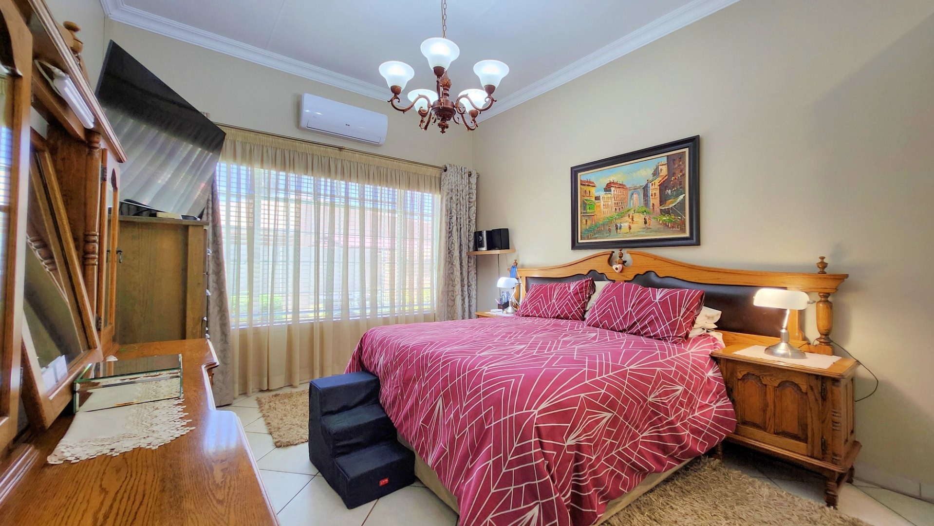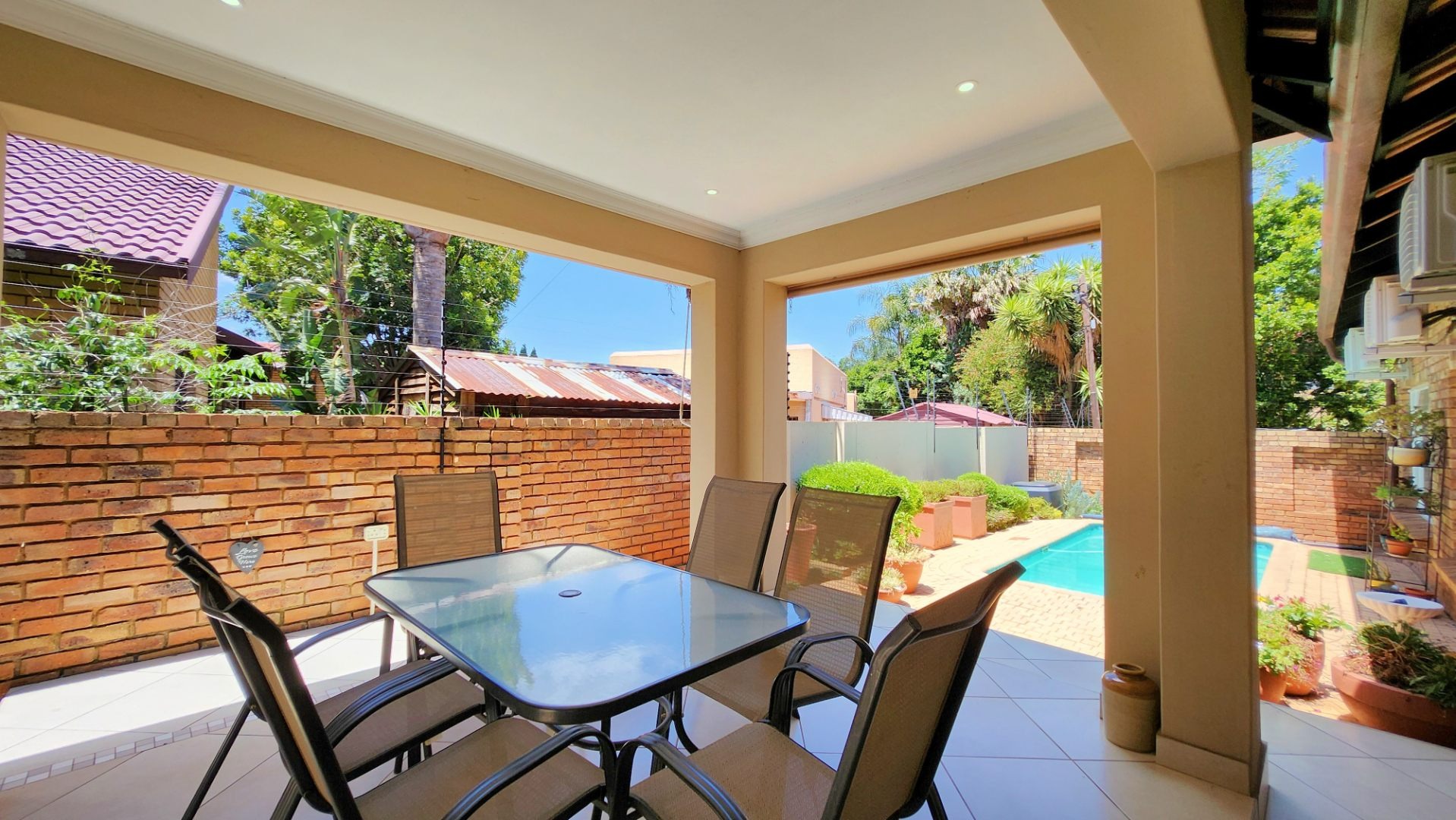 From the moment you step inside, you are welcomed by immaculate finishes, newly painted interiors, and stylish tiled flooring flowing throughout the home. The spacious air-conditioned lounge and dining area create a warm yet sophisticated atmosphere, seamlessly connecting to a covered patio overlooking your private swimming pool – a tranquil retreat perfect for entertaining or unwinding in complete privacy.